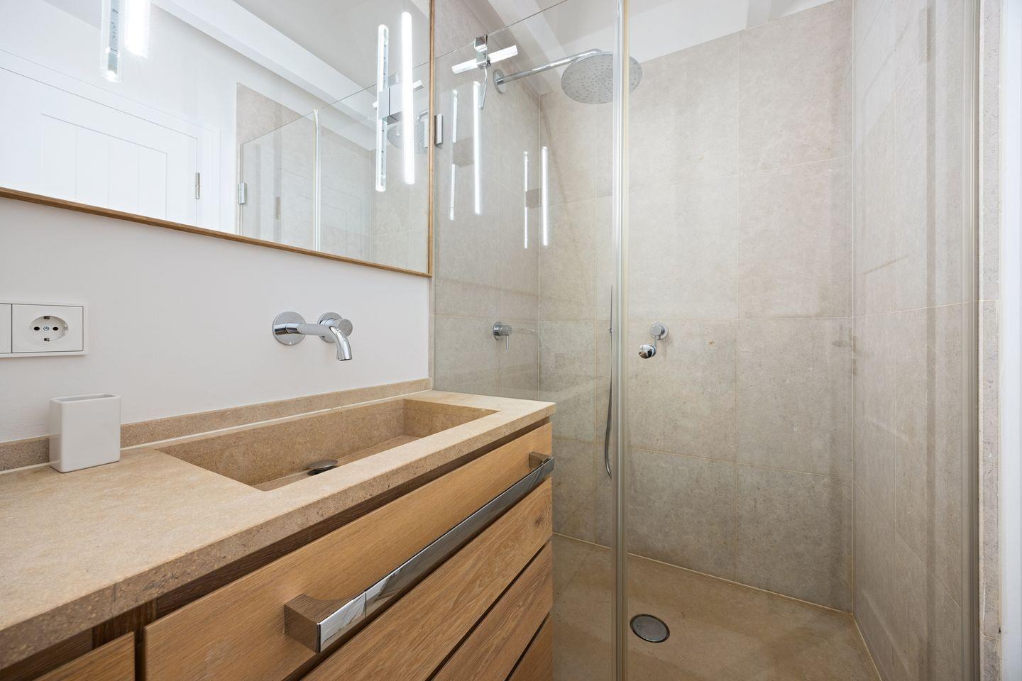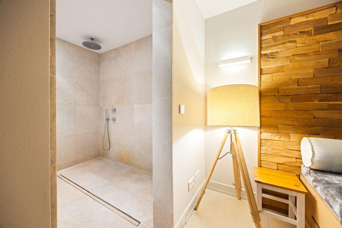 Ein Highlight des Hauses ist die exklusive Wellness-Oase im Untergeschoss. Hier erwarten Sie eine moderne Sauna, ein Ruhebereich sowie eine Regendusche, die für pure Entspannung sorgen. Zwei stilvolle Badezimmer, beide mit Regendusche ausgestattet, sowie ein zusätzliches Gäste-WC komplettieren den Komfort.