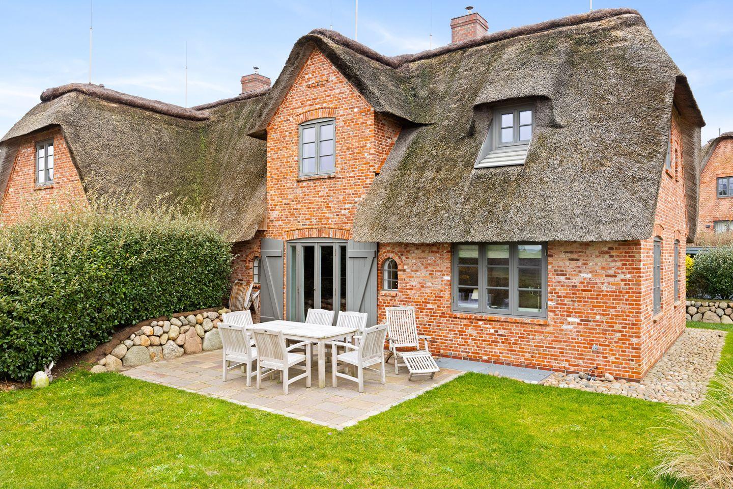 Dieses stilvolle Reetdach-Doppelhaus erstreckt sich über 3 Ebenen und bietet auf ca. 148 m² Platz für bis zu 6 Personen. Gelegen in idyllischer Lage in Rantum auf Sylt, genießen Sie eine erstklassige Ausstattung, modernen Komfort und einen beeindruckenden Blick über das Wattenmeer. Hunde sind herzlich willkommen, sodass auch Ihre Vierbeiner den Urlaub in vollen Zügen genießen können.