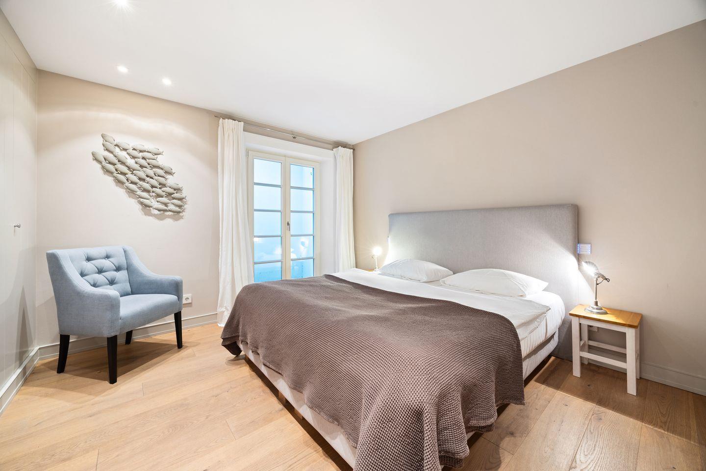 Drei geschmackvoll eingerichtete Schlafzimmer sorgen für erholsame Nächte. Die hochwertigen Betten und die geschmackvolle Einrichtung garantieren höchsten Schlafkomfort. Die Raumaufteilung ist ideal für Familien oder kleine Gruppen.