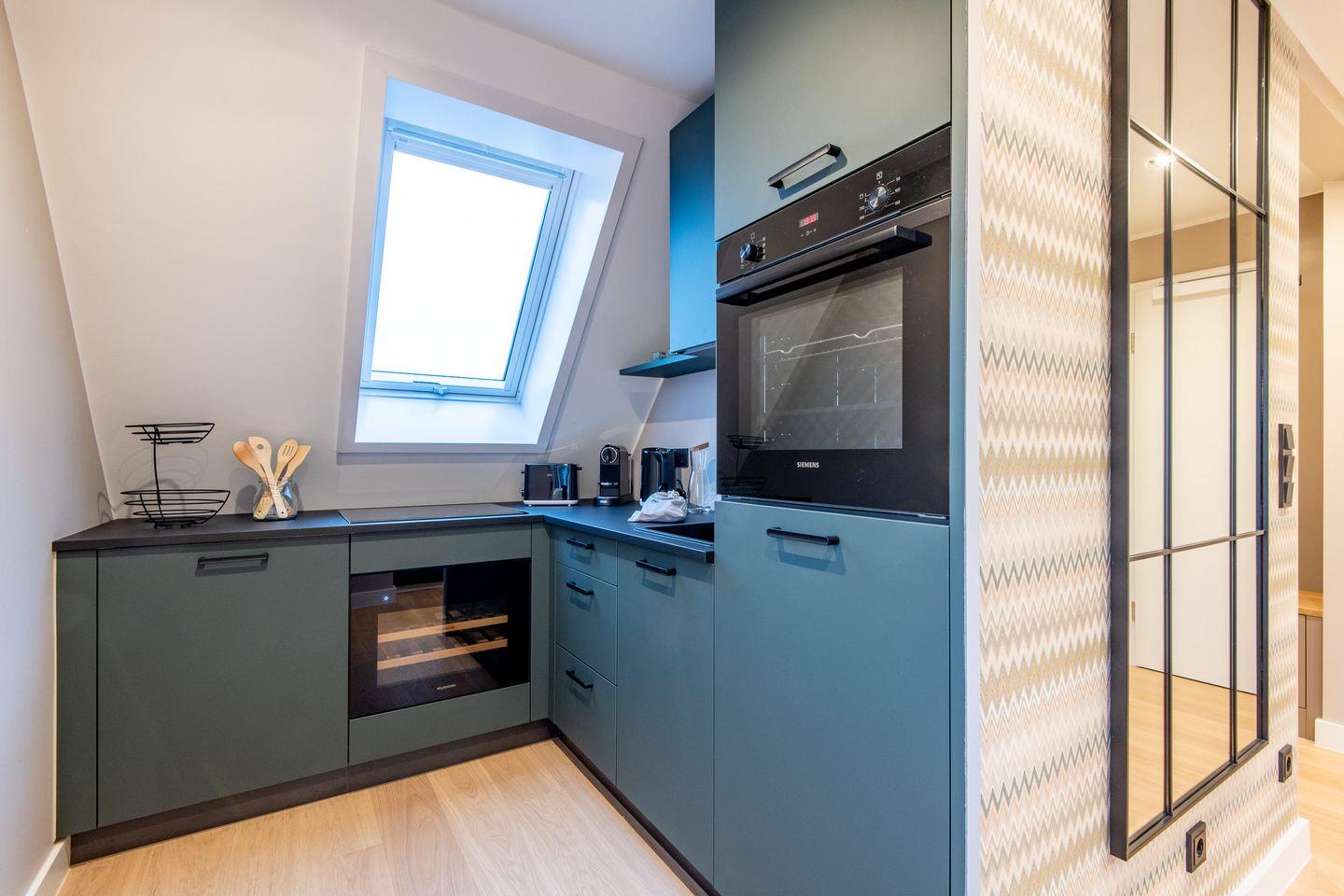 Die offene Küche ist modern und hochwertig ausgestattet, sodass Sie Ihre Lieblingsgerichte mit Leichtigkeit zubereiten können. Hier fehlt es an nichts, um Ihren Aufenthalt rundum angenehm zu gestalten.
