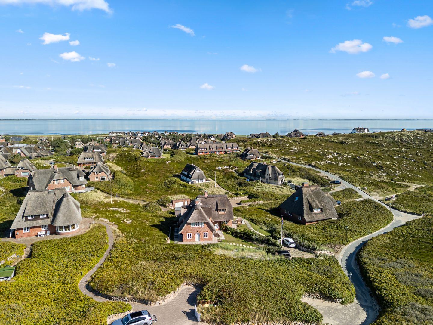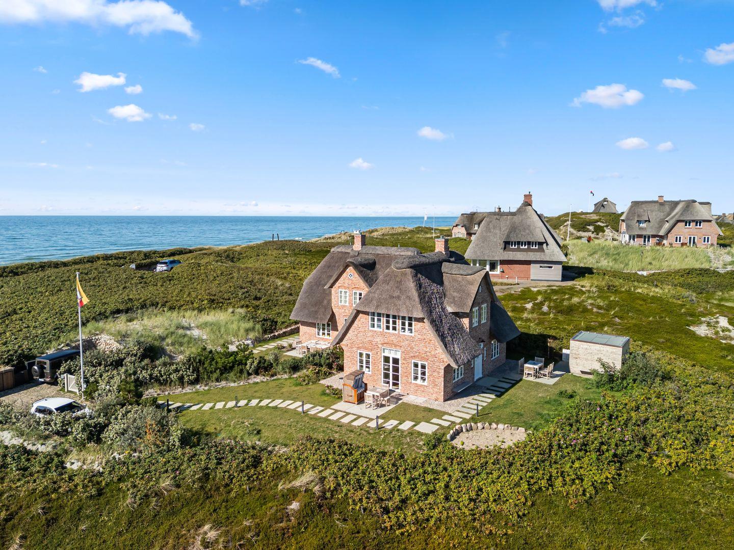 Ferienhaus unter Reet mit Meerblick auf 4 Ebenen (EG|UG|2.UG|OG) in Rantum mit mit 197 qm fu¨r bis zu 5 Personen.