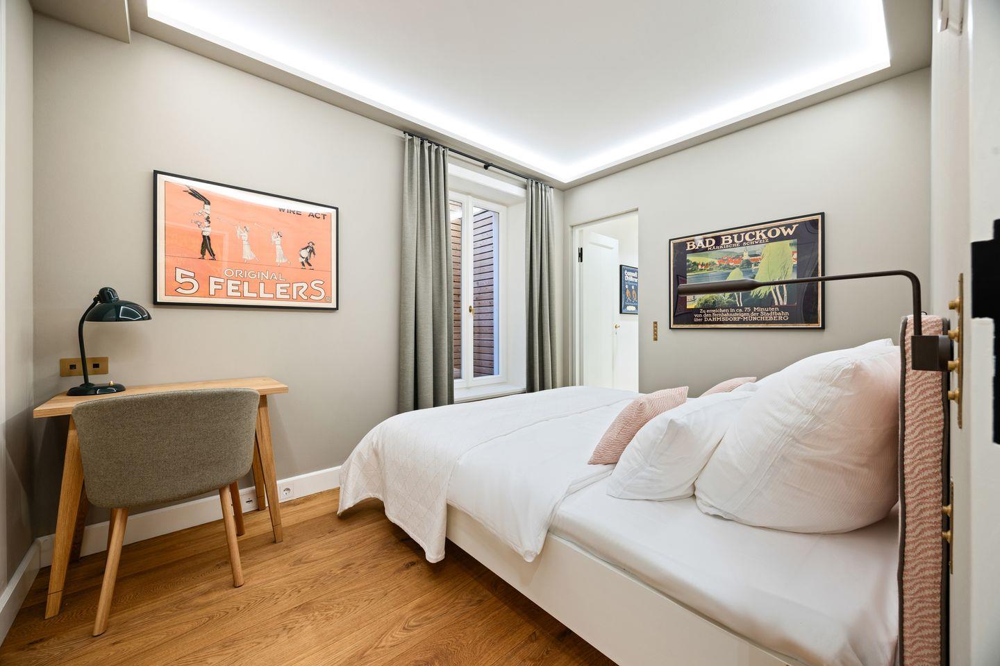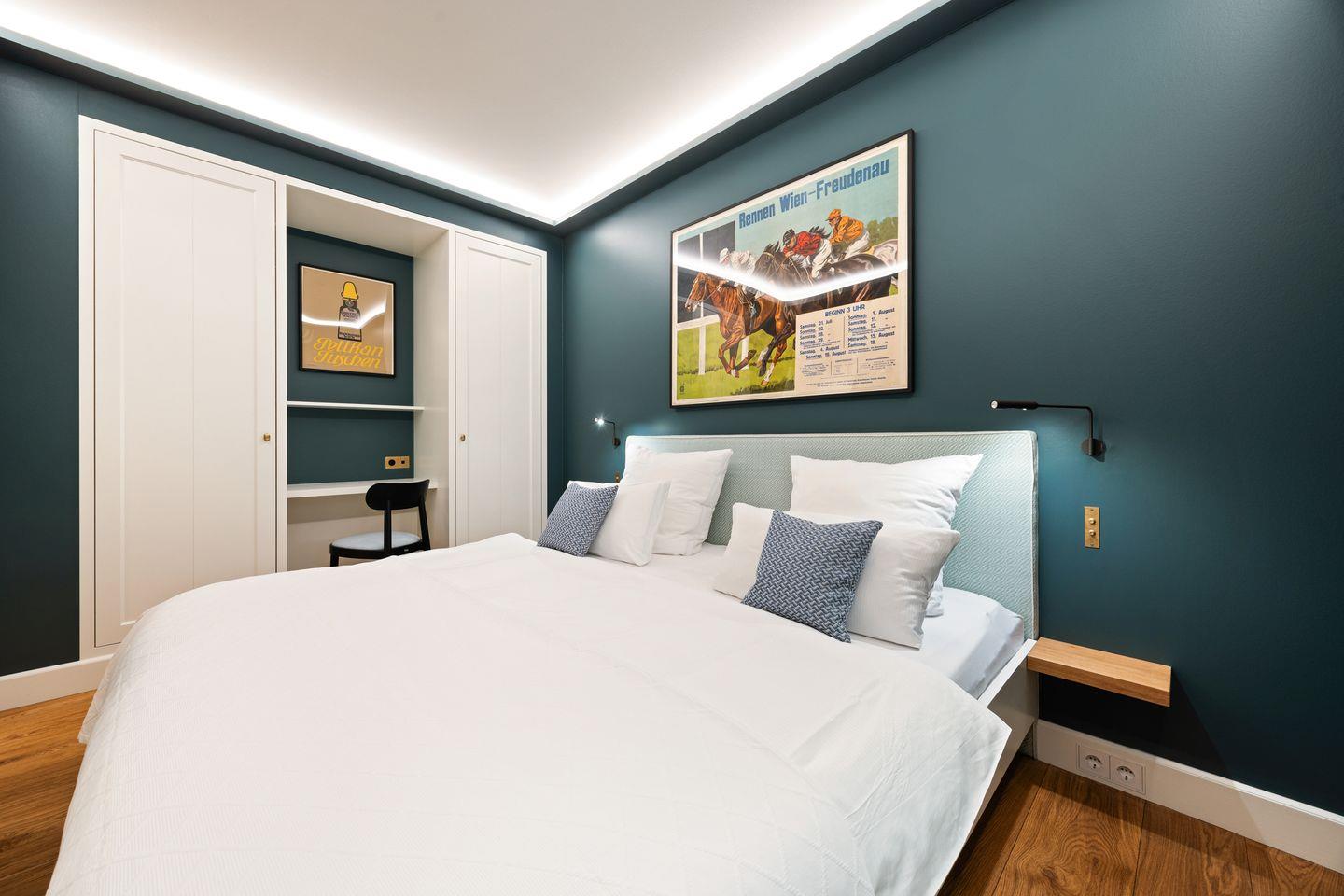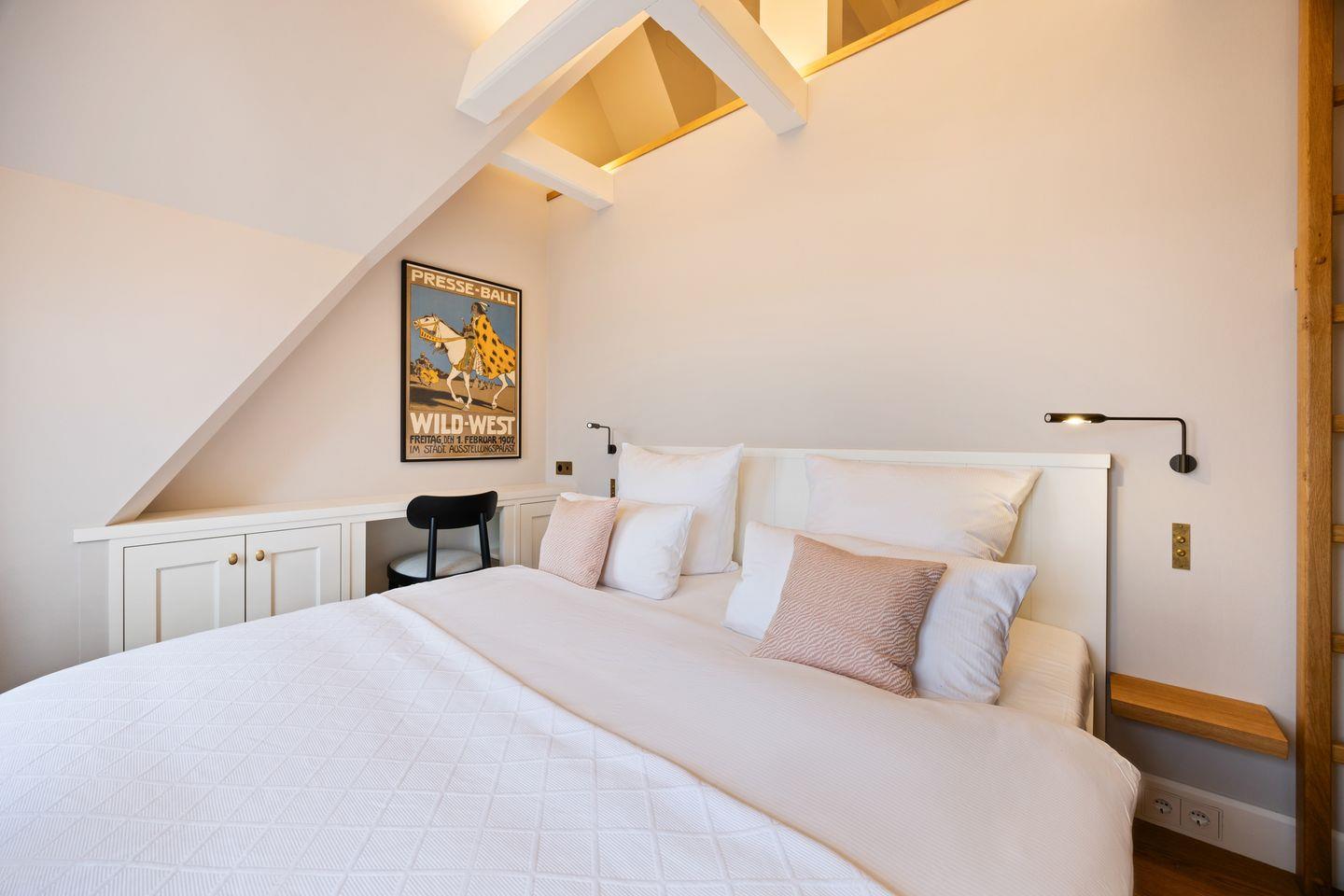 Die vier liebevoll eingerichteten Schlafzimmer bieten höchsten Schlafkomfort und ein einzigartiges Ambiente. Jedes Zimmer wurde mit viel Liebe zum Detail gestaltet, sodass Sie sich von der ersten Minute an wohlfühlen. Luxuriöse Polsterbetten sorgen für erholsame Nächte. Das durchdachte Farbkonzept schafft eine harmonische Atmosphäre.