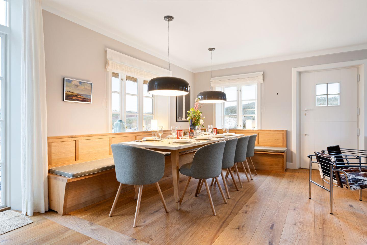 Dieses luxuriöse Ferienhaus in Rantum bietet auf bietet Ihnen auf 197 qm den perfekten Rückzugsort für bis zu 5 Personen (andere Kombinationen auf Anfrage). Die Kombination aus hochwertiger Ausstattung, stilvollem Ambiente und einzigartiger Lage nur 150 Meter vom Meer entfernt inmitten der Dünenlandschaft macht dieses Domizil zu einer echten Wohlfühloase.