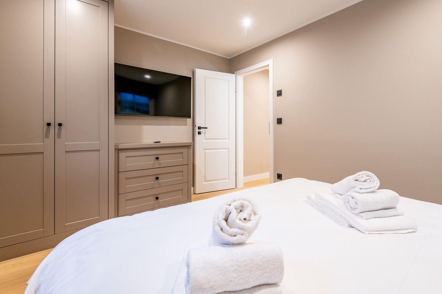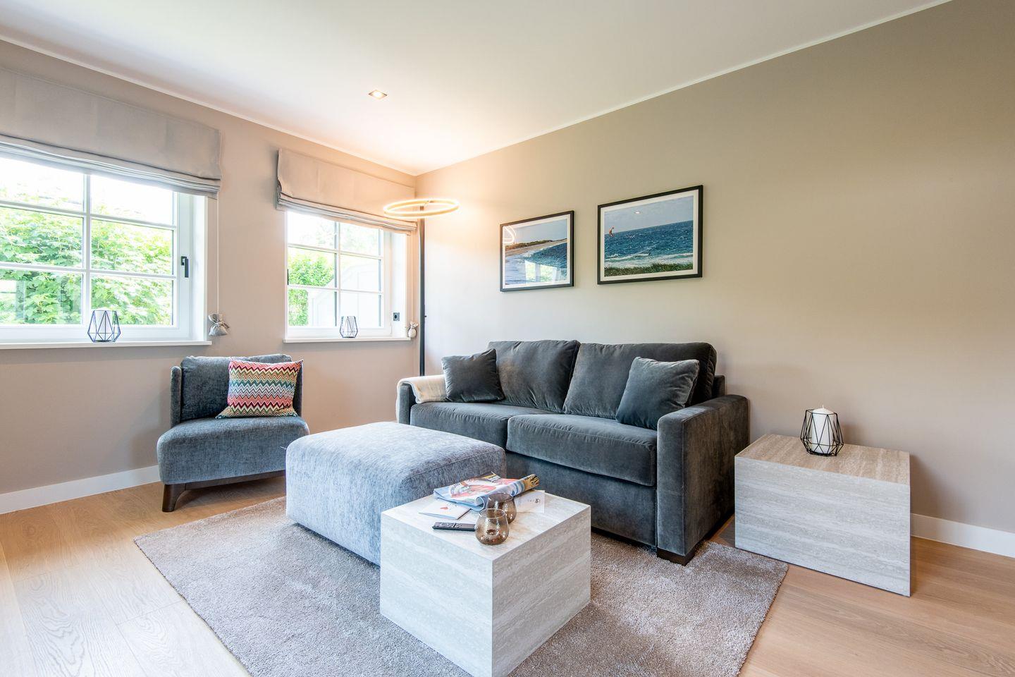 Zwei gemütliche Schlafzimmer sorgt für erholsame Nächte. Geschmackvoll eingerichtet bieten sie Ihnen einen idealen Rückzugsort zum Entspannen. Das Wohnzimmer mit Boxspring-Schlafsofa bietet zusätzlichen Schlafplatz für zwei Kinder.