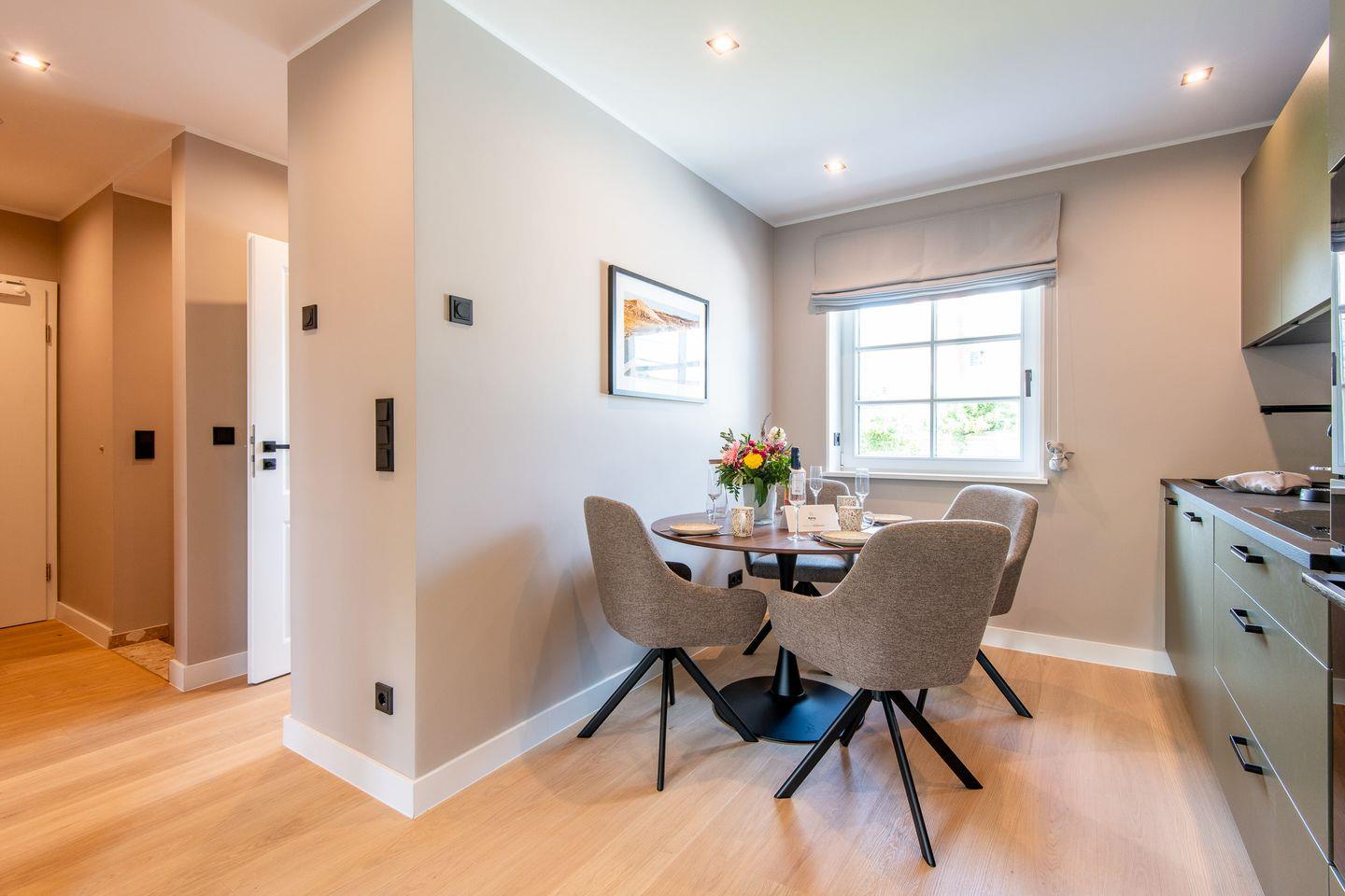 Diese moderne 3-Zimmer-Ferienwohnung erstreckt sich über zwei Ebenen und bietet mit großzügigen 78 m² Platz für bis zu 4 Personen. Die hochwertige Ausstattung, durchdachtes Design und zentrale Lage machen diese Wohnung zu einem idealen Rückzugsort für Ihren Sylt-Urlaub. Ihr Hund ist hier herzlich willkommen!