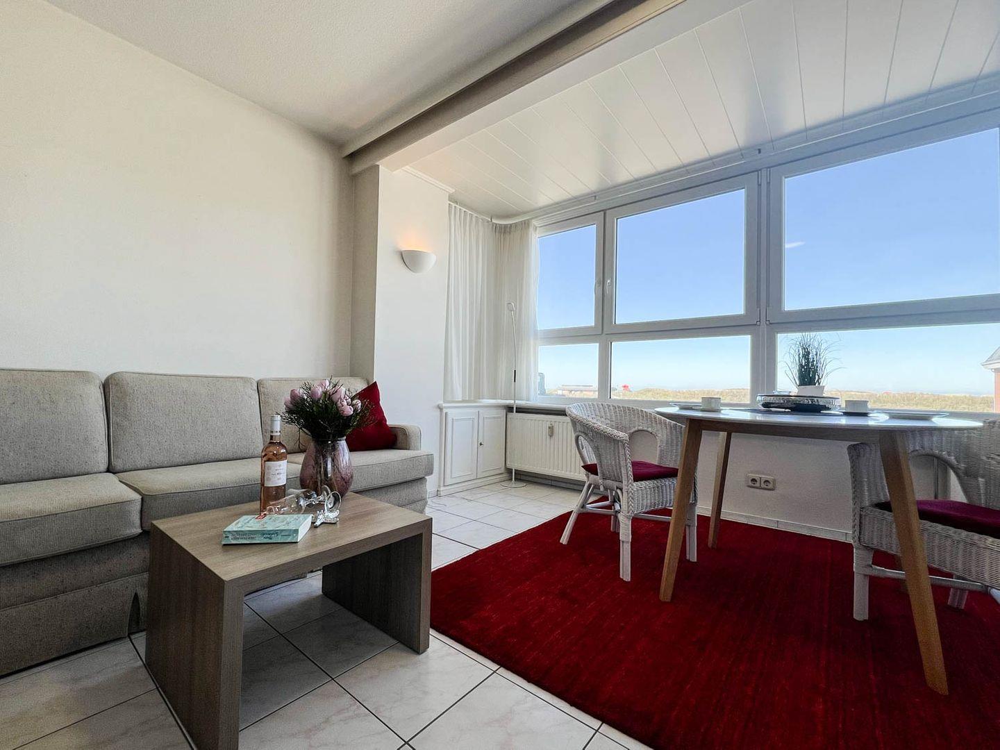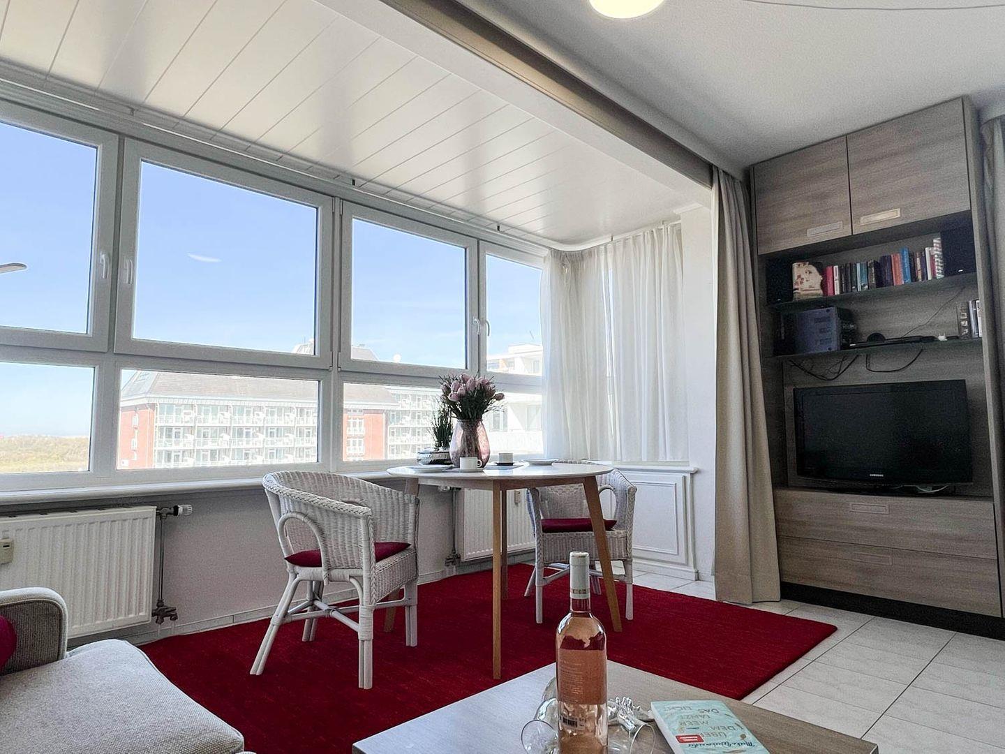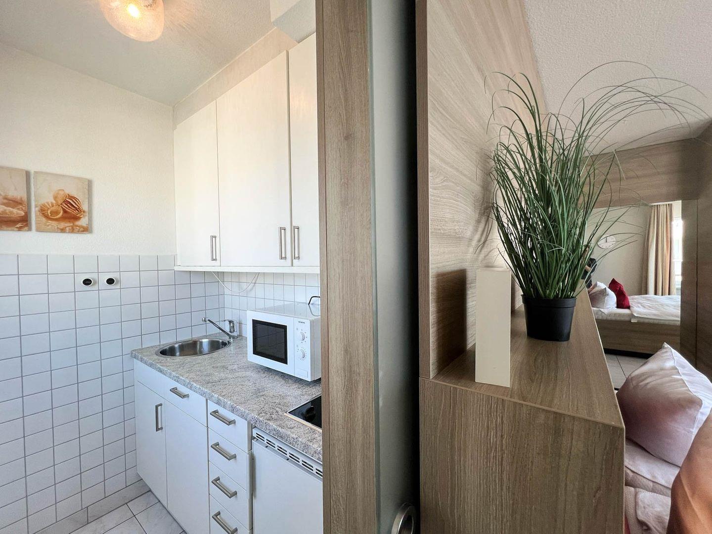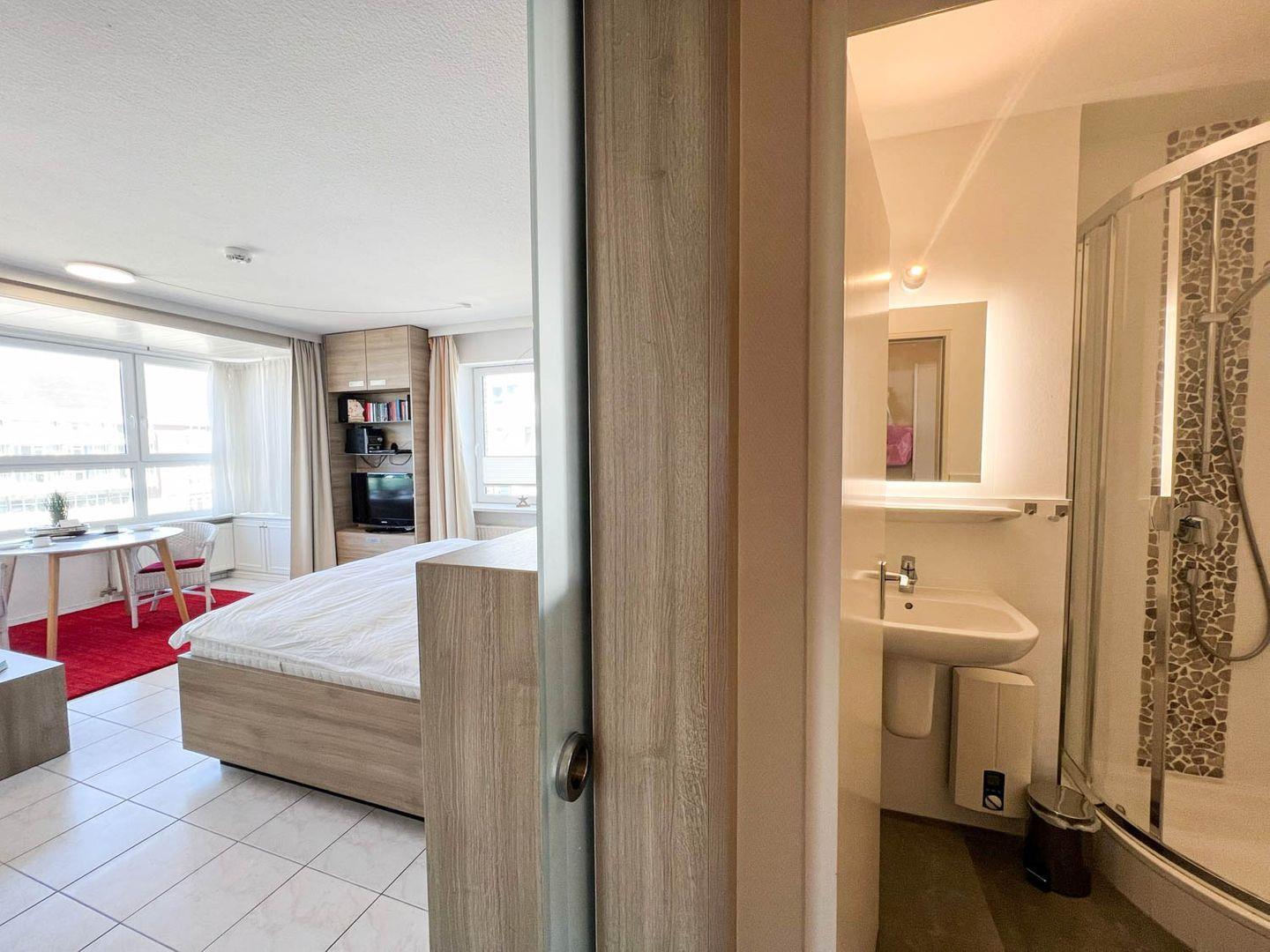 Helle großzügige 1-Zimmer-Ferienwohnung sehr strandnah im Zentrum von Westerland für bis zu 2 Personen. Die Ferienwohnung ca. 34qm befindet sich im 3. Stock ( moderner Aufzug vorhanden ) und verfügt über ein großen lichtdurchfluteten Wohn- und Schlafraum mit feststehenden Doppelbett 180x200cm (Einzelmatratzen ), gemütliche Couch, Esstischgruppe, großen Flachbild LED TV, DVD Player, Musikanlage mit Blick auf die Dünen. Die gut ausgestattete Küche hat ein 2 Platten Ceranfeld, Geschirrspüler, Mikrowelle, Kaffeemaschine, Wasserkocher und Toaster etc. Das moderne Duschbad besitzt eine Dusche mit extraflachem Einstieg, einen Waschtisch, Handtuchtrockner, Fön und WC. Die Entfernung zum Strand beträgt nur ca. 150m und zur Fussgängerzone sind es ca. 200m. Die Wohnung liegt direkt am Meerwasserschwimmbad „Sylter Welle“ und Syltness-Center. In der Wohnung steht Ihnen ein kostenloser Internetzugang WLan zur Verfügung.