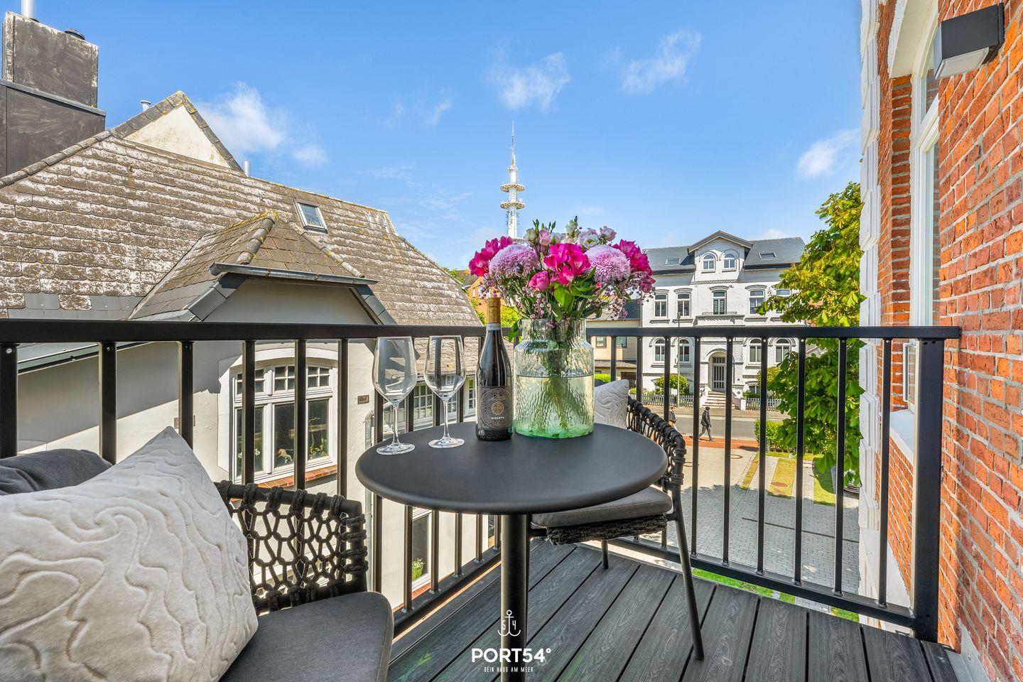Unser Lieblingsplatz ist der Balkon – genieße dort die frische Nordseeluft.