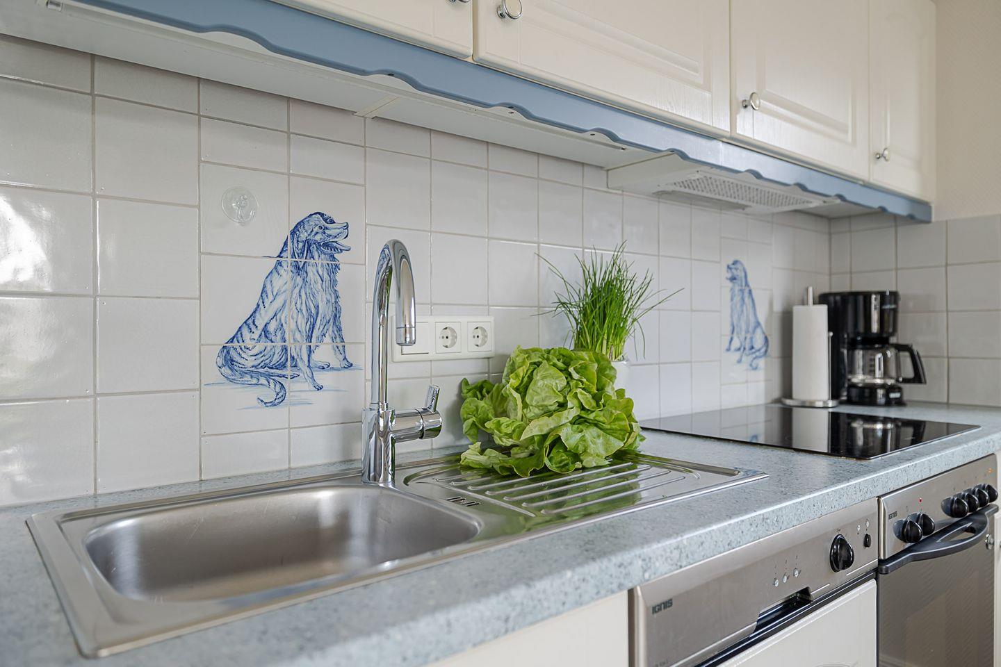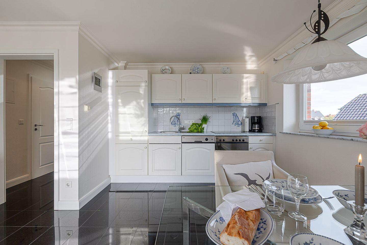 Die liebevoll eingerichtete Ferienwohnung Sand im Obergeschoss ist ideal für 2 Personen, die Wert auf Komfort und Gemütlichkeit legen. Sie besteht aus einem separaten Schlafzimmer, einem hellen Wohnzimmer mit großzügiger Küchenzeile sowie einem Badezimmer mit Dusche/WC. Die Küche ist voll ausgestattet und verfügt über Backofen und Spülmaschine – perfekt für alle, die im Urlaub auch gerne selbst kochen.