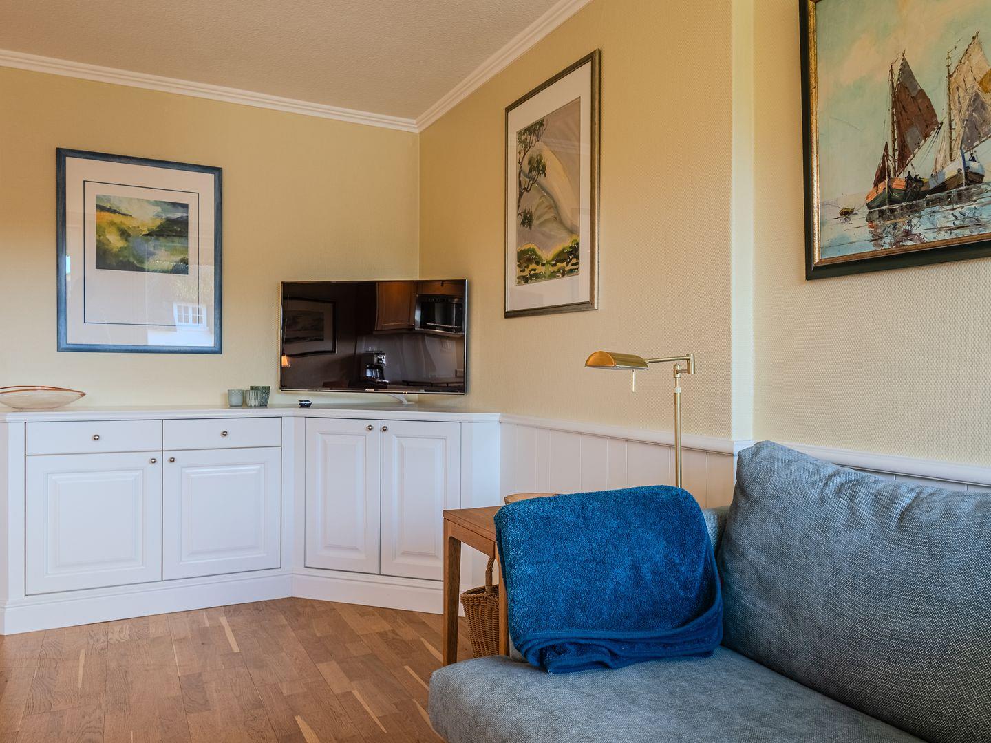 Im Appartement „Seestern“ genießt du eine ruhige Auszeit zwischen Dünen und Meer in Rantum auf Sylt. Die gemütliche Wohnung bietet einen Wohnbereich mit Smart-TV, eine voll ausgestattete Küche, ein separates Schlafzimmer mit Doppelbett und ein modernes Bad. WLAN und kostenloser Parkplatz sind inklusive. Highlight ist dein eigener Strandkorb – perfekt für entspannte Strandtage und echte Erholung.