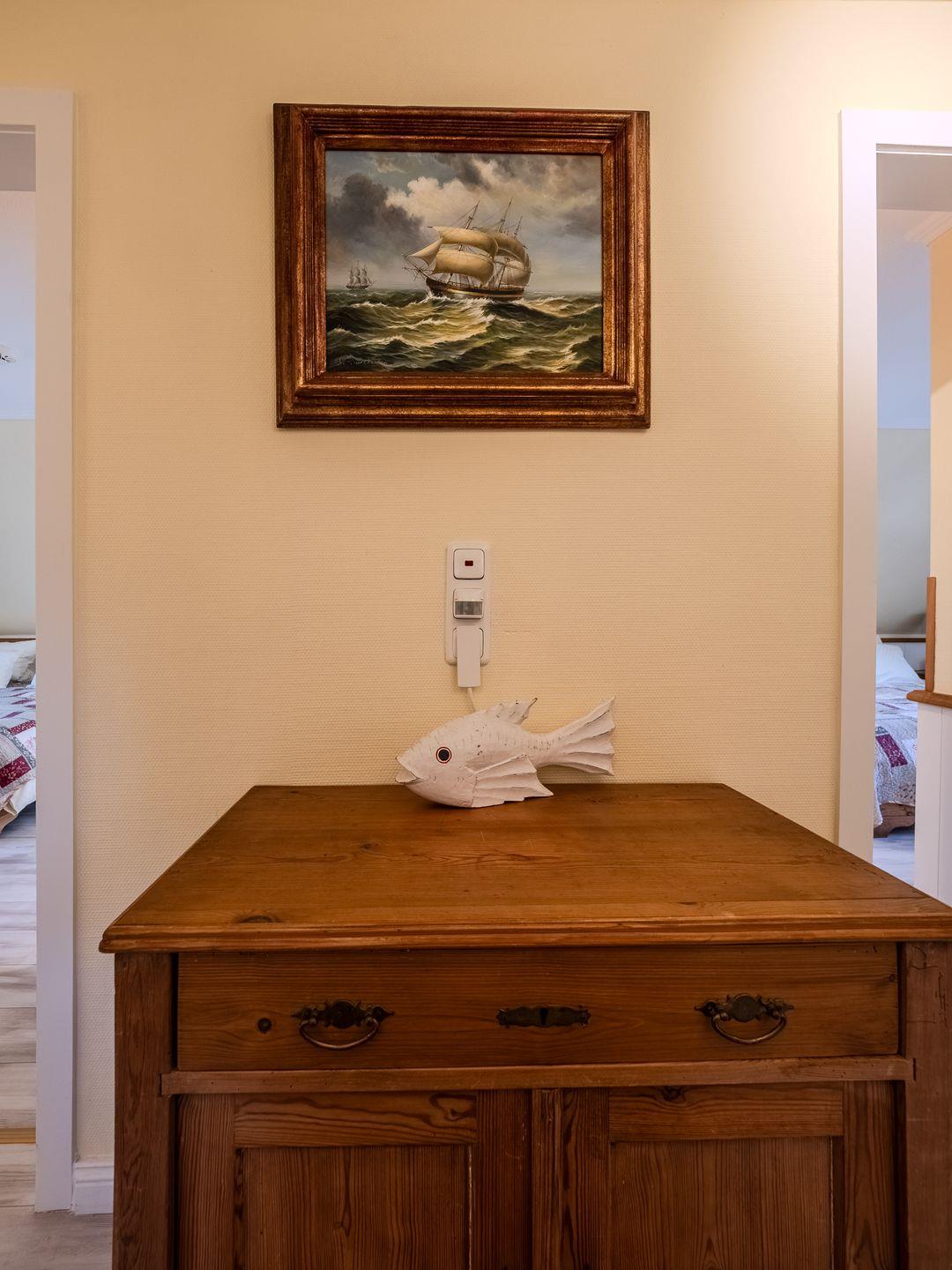 Im Garten stehen dir Gartenmöbel und ein Strandkorb zur Verfügung, die Terrasse auf der Warft können alle 4 Zimmer aus dem Obergeschoss nutzen – perfekt, um die frische Nordseeluft zu genießen oder einfach die Seele baumeln zu lassen.