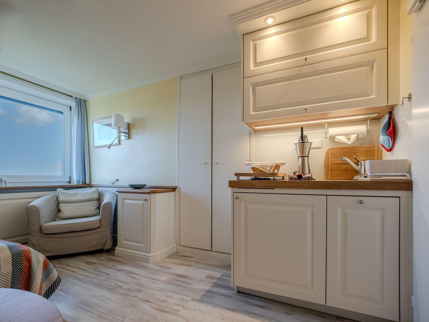 Gemütliches Doppelzimmer „Emma“ auf Sylt mit Doppelbett (140x200 cm) , Bad & Küchenzeile. Genieße den traumhaften Dünen-Blick, Garten, Strandkorb und Gemeinschaftsterrasse. WLAN, Gemeinschaftswohnraum, Bücher & Spiele inklusive. Vierbeiner willkommen, Babybett/Hochstuhl auf Anfrage. Perfekt für Spaziergänge am Deich, Strandtage und entspannte Auszeiten zu zweit.