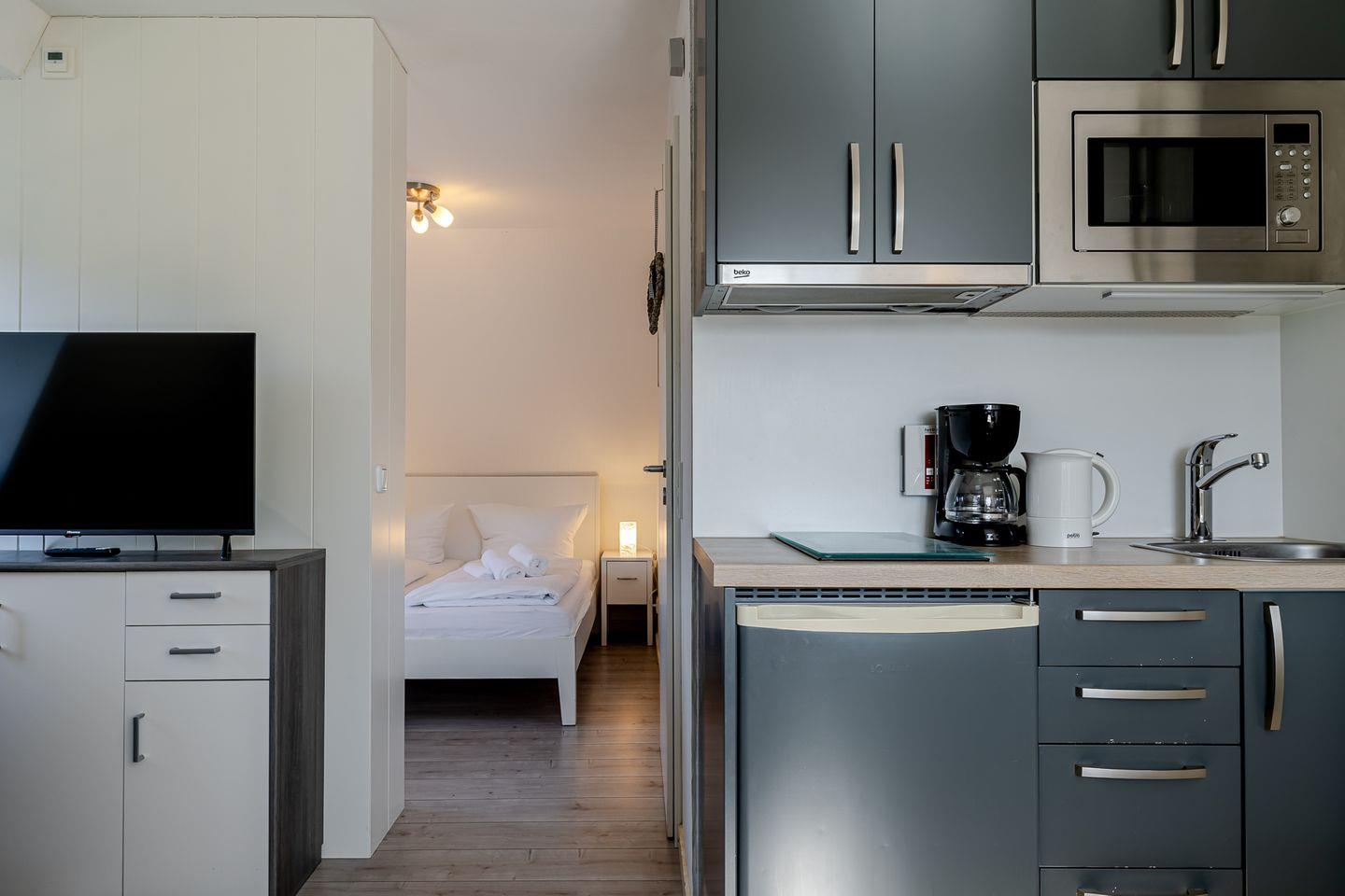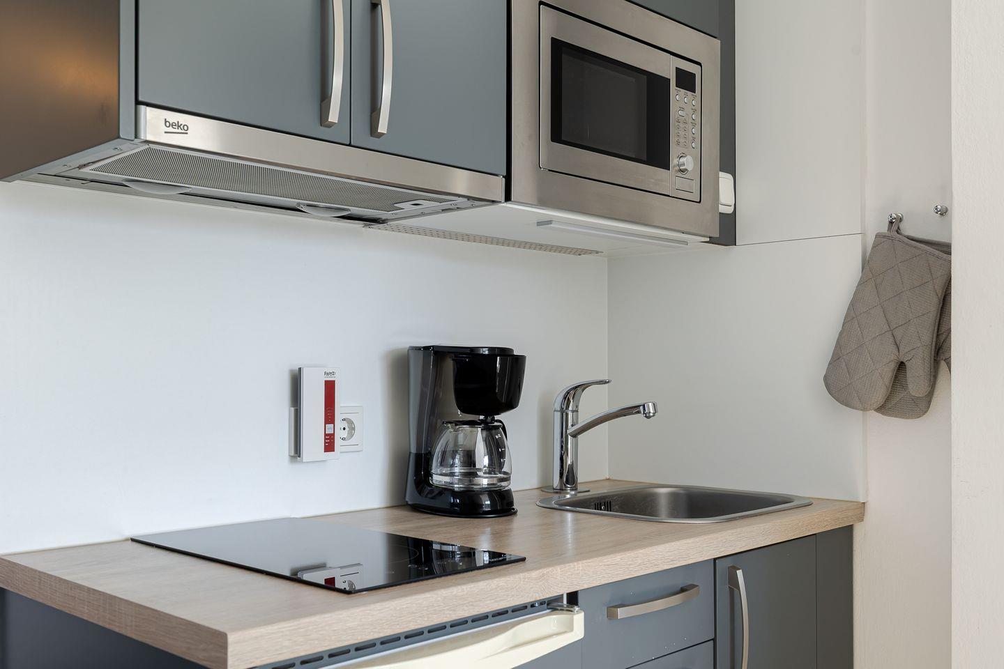 Die offene Küche ist vollständig ausgestattet und bietet alles, was man für unkomplizierte Tage benötigt – kompakt, praktisch und gut integriert.