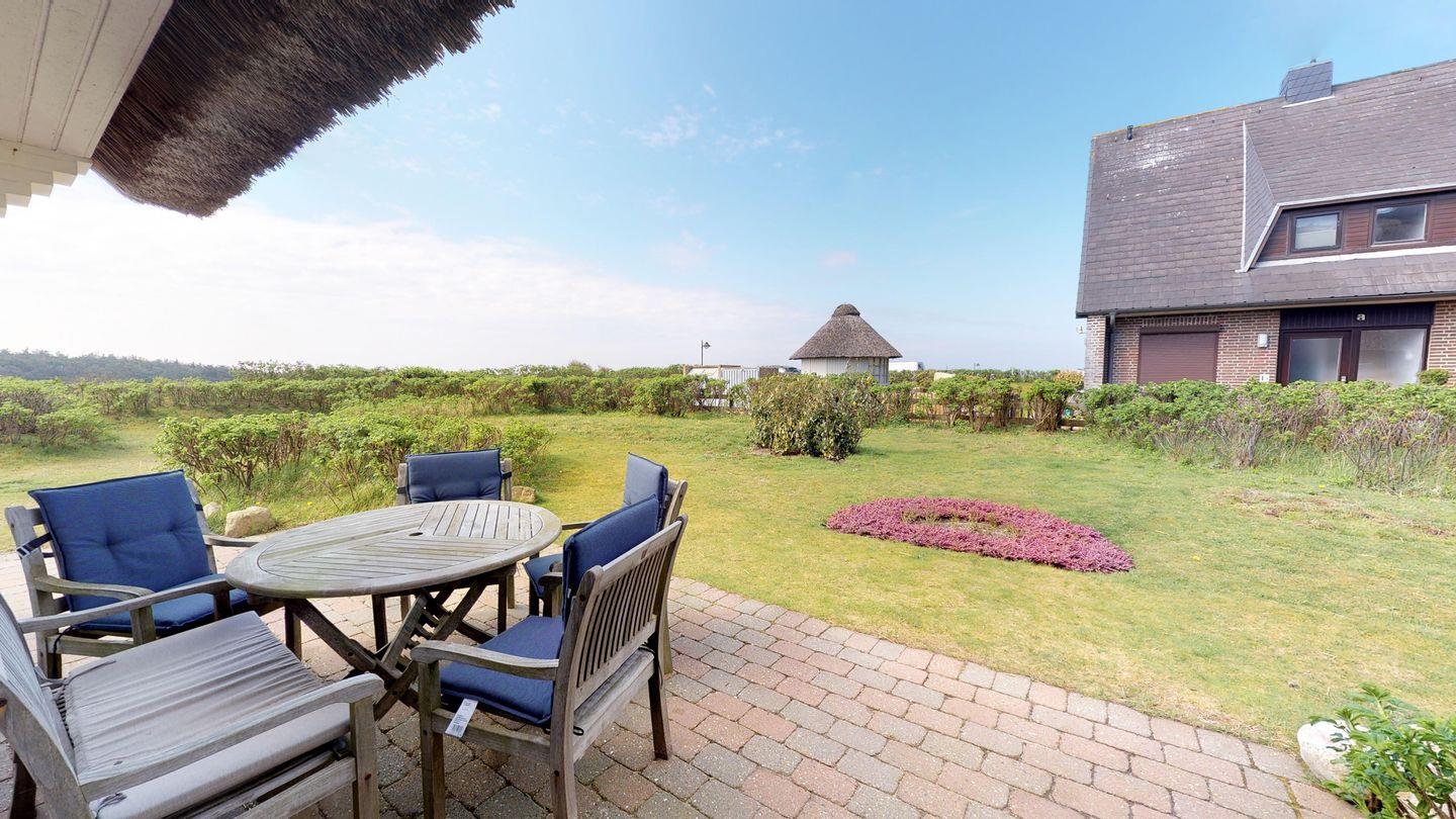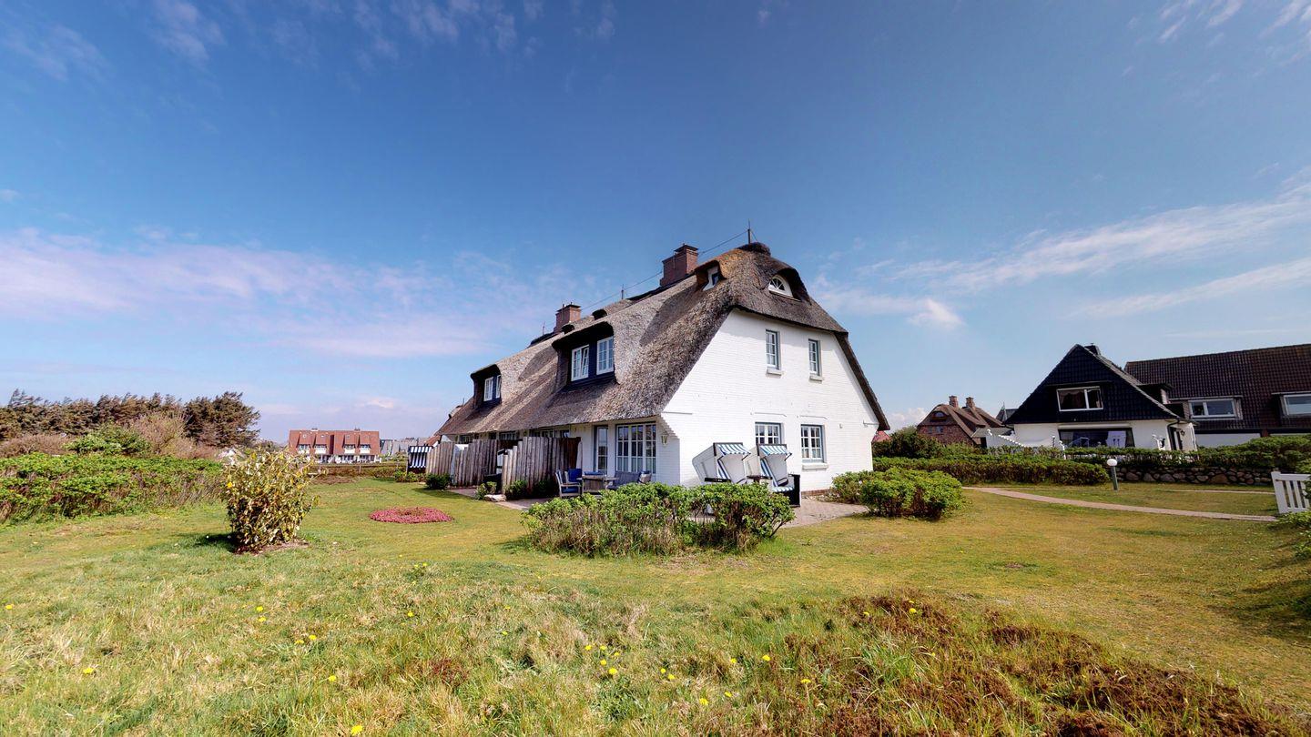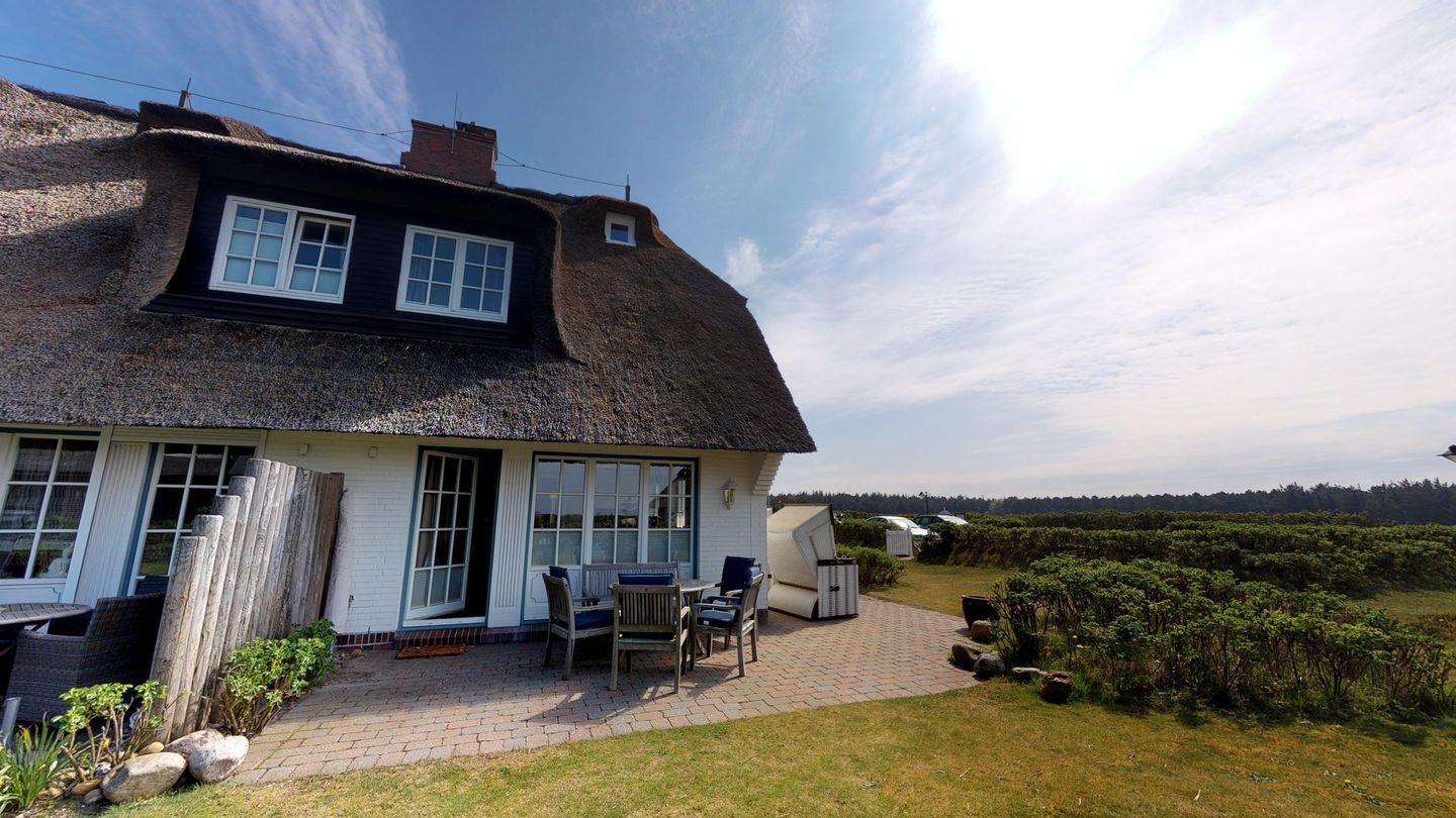 Willkommen im Reetdach-Hausteil 1 des Landhauses Arnika, Ihrem malerischen Refugium für den perfekten Sylturlaub. Hier erleben Sie eine traumhafte Aussicht auf das Meer, die Dünen und die Heidelandschaft – ein wahres Bilderbuchpanorama. Das Hausteil beeindruckt mit einer großzügigen Südwest-Eckterrasse, die mit hochwertigen Gartenmöbeln ausgestattet ist.