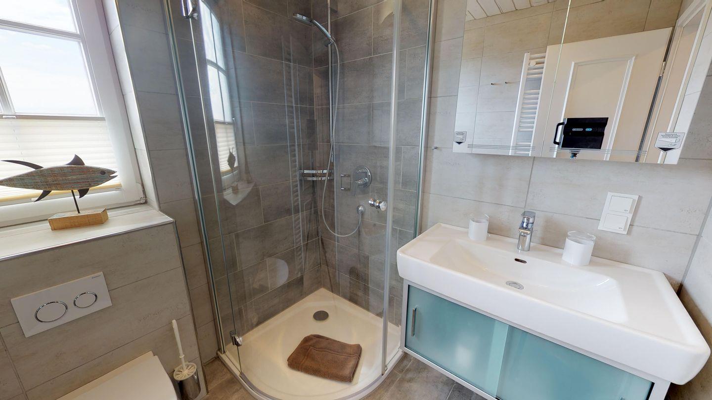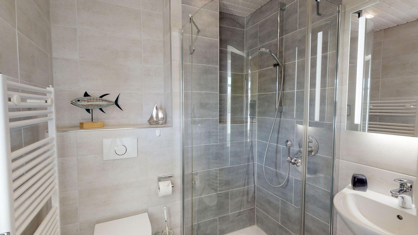 Dieses komfortable Ferienhaus bietet Platz für bis zu 6 Personen und erfüllt alle Ansprüche an einen unabhängigen Urlaub. Im Erdgeschoss erwarten Sie ein geräumiger Wohnraum mit Küchenzeile, ein Duschbad/WC und der Zugang zur herrlichen Terrasse. Das Obergeschoss beherbergt den Masterbedroom sowie einen Einzelschlafraum und ein weiteres Dusch/Bad WC. Im Dachgeschoss finden Sie einen weiteren Schlafraum mit zwei Einzelbetten. Die Gesamtwohnfläche beträgt ca. 105 qm.