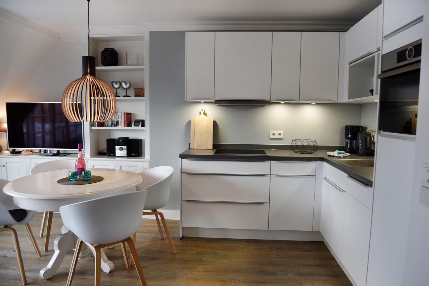 Die hochwertige Einrichtung sorgt dafür, dass Ihr Urlaub vom ersten Tag an ein Genuss wird. Die elegante Landhausküche, komplett ausgestattet mit Backofen und Geschirrspüler, lädt dazu ein, kulinarische Köstlichkeiten zu zaubern.
