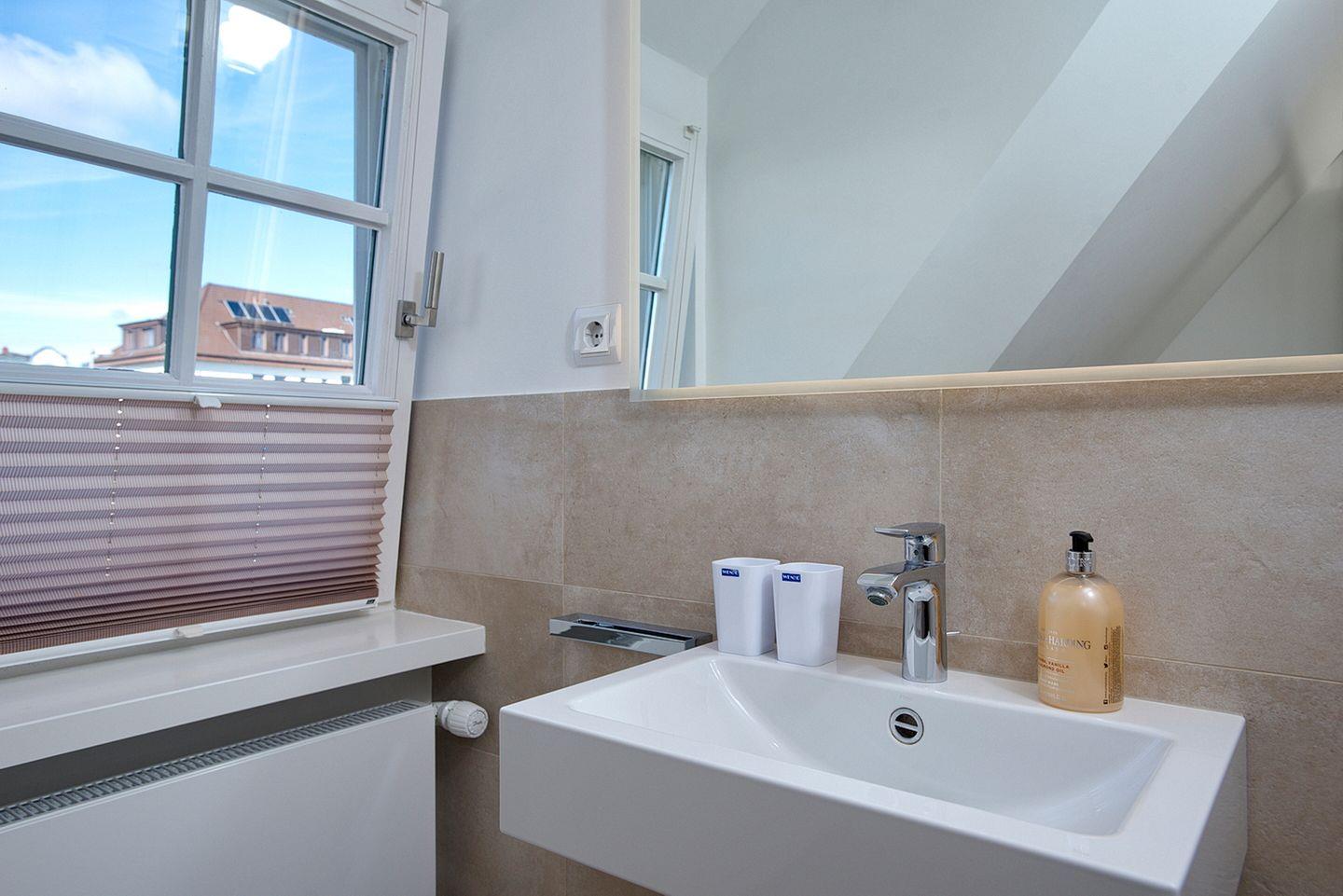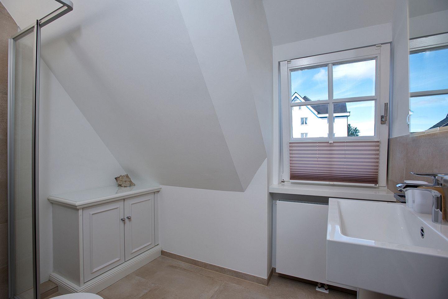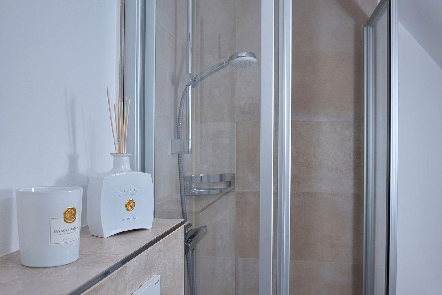 Auf rund 55 qm bietet die Wohnung im 1. Obergeschoss einen großzügigen und lichtdurchfluteten Wohn-/Essbereich mit einer bestens ausgestatteten Küche. Genießen Sie entspannte Stunden auf dem Südbalkon und lassen Sie die Seele baumeln. Das angrenzende Duschbad rundet das Angebot im ersten Stock ab.