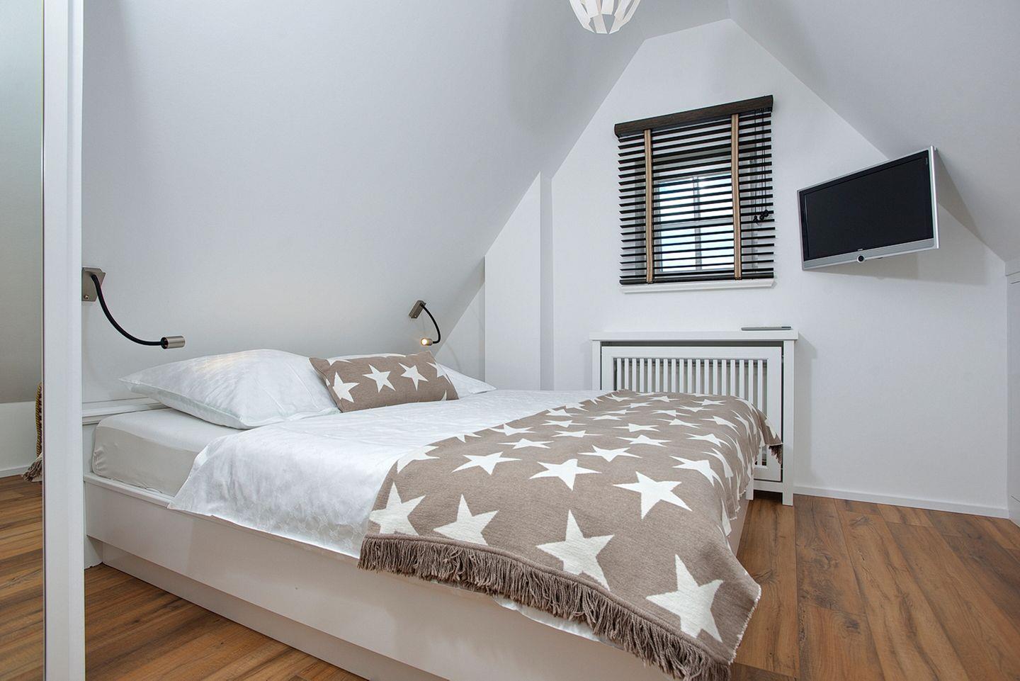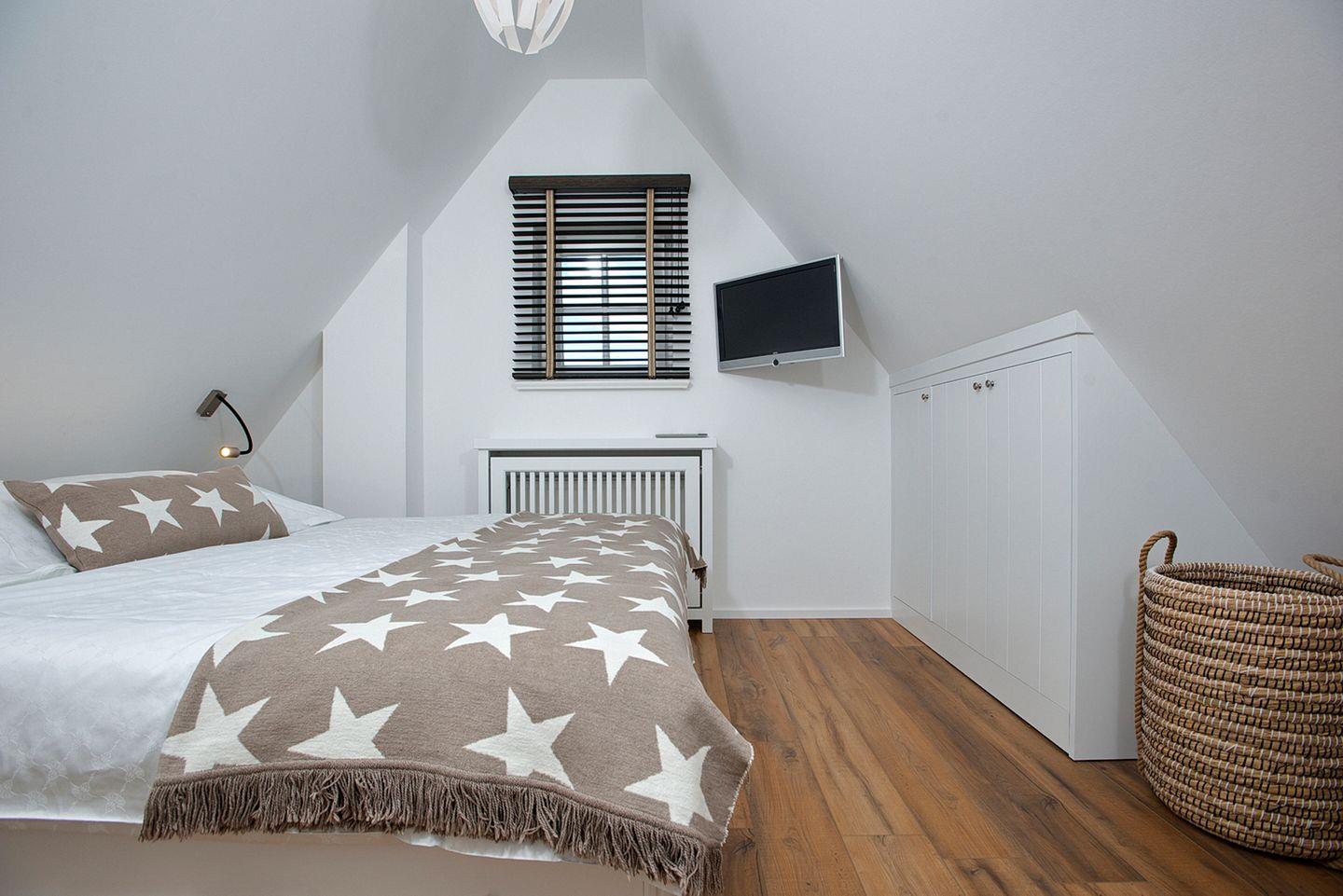 Im Dachgeschoss erwartet Sie ein gemütlicher Schlafraum mit einem komfortablen Doppelbett, umgeben von einer harmonischen Atmosphäre. Hier können Sie sich wunderbar zurückziehen und die Ruhe genießen.