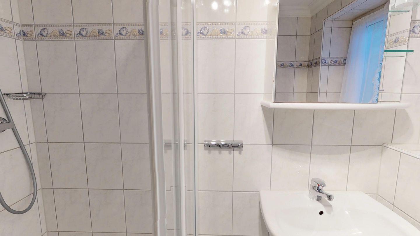 Die Schlafbereiche befinden sich im Untergeschoss, wo Sie einen großzügigen Doppelschlafraum sowie einen weiteren Schlafraum mit einem komfortablen 1,40m Bett finden. Ein modernes Duschbad rundet das Angebot ab.