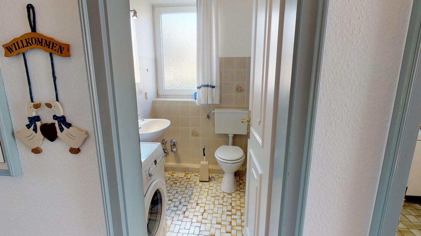 Im Erdgeschoss erwartet Sie ein geräumiger Wohnraum mit großen Fenstern, die für eine helle und freundliche Atmosphäre sorgen. Zusätzlich finden Sie hier ein Gäste-WC mit Waschmaschine sowie eine separate Küche, die keine Wünsche offen lässt.