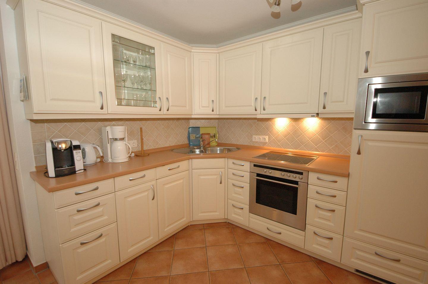 Treten Sie ein und fühlen Sie sich wohl in unserem großzügigen Wohn-/Essbereich, der mit einer voll ausgestatteten Einbauküche ausgestattet ist. Genießen Sie hier Ihre Mahlzeiten oder entspannen Sie sich auf der gemütlichen Terrasse mit Blick auf den gepflegten Garten und bequemen Gartenmöbeln.