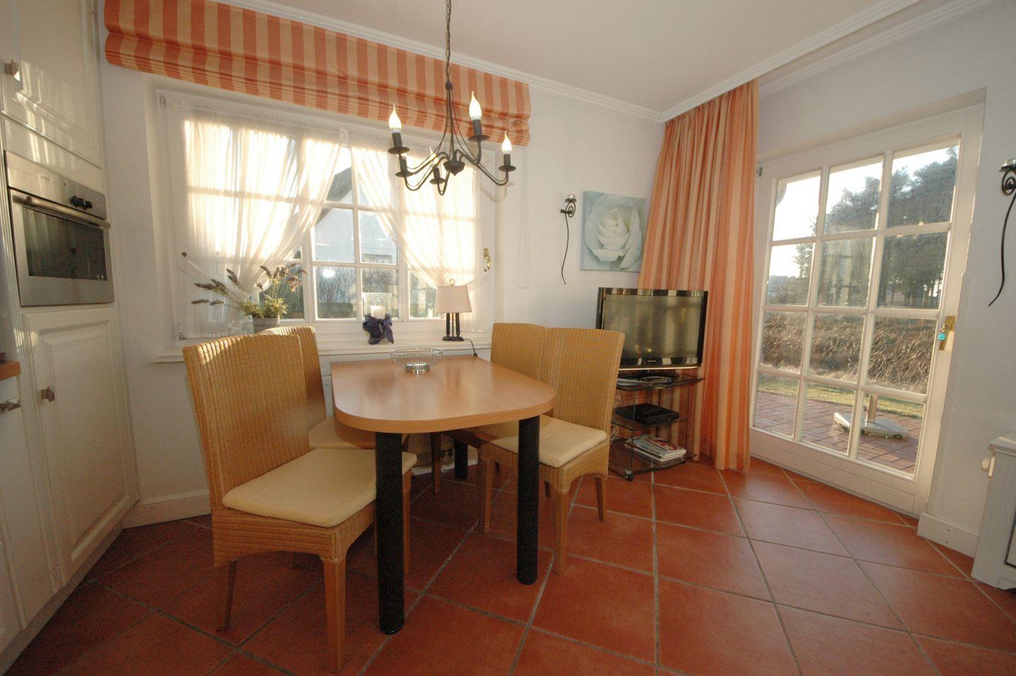 Dieses einladende Apartment erstreckt sich auf einer Ebene im Erdgeschoss und verwöhnt mit einer großzügigen Südwestterrasse, die mit einem gemütlichen Strandkorb und stilvollen Gartenmöbeln ausgestattet ist. Die Wohnung, mit etwa 45 qm Fläche, umfasst einen behaglichen Wohnraum mit einer gut ausgestatteten Küchenzeile und einer charmanten Essecke. Der separate Schlafraum bietet ein komfortables Doppelbett und ist mit einem modernen Dusch-/Badezimmer ausgestattet.