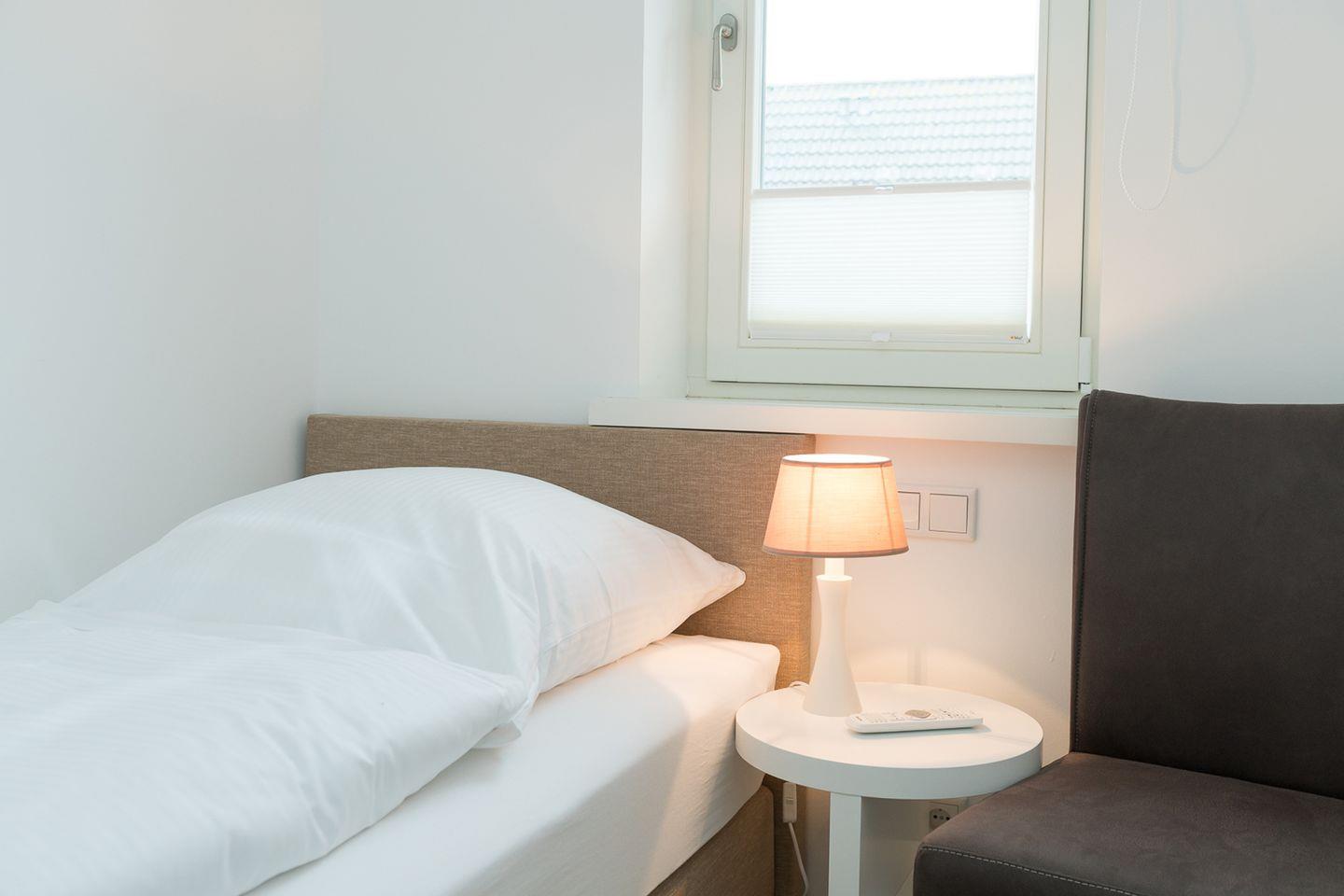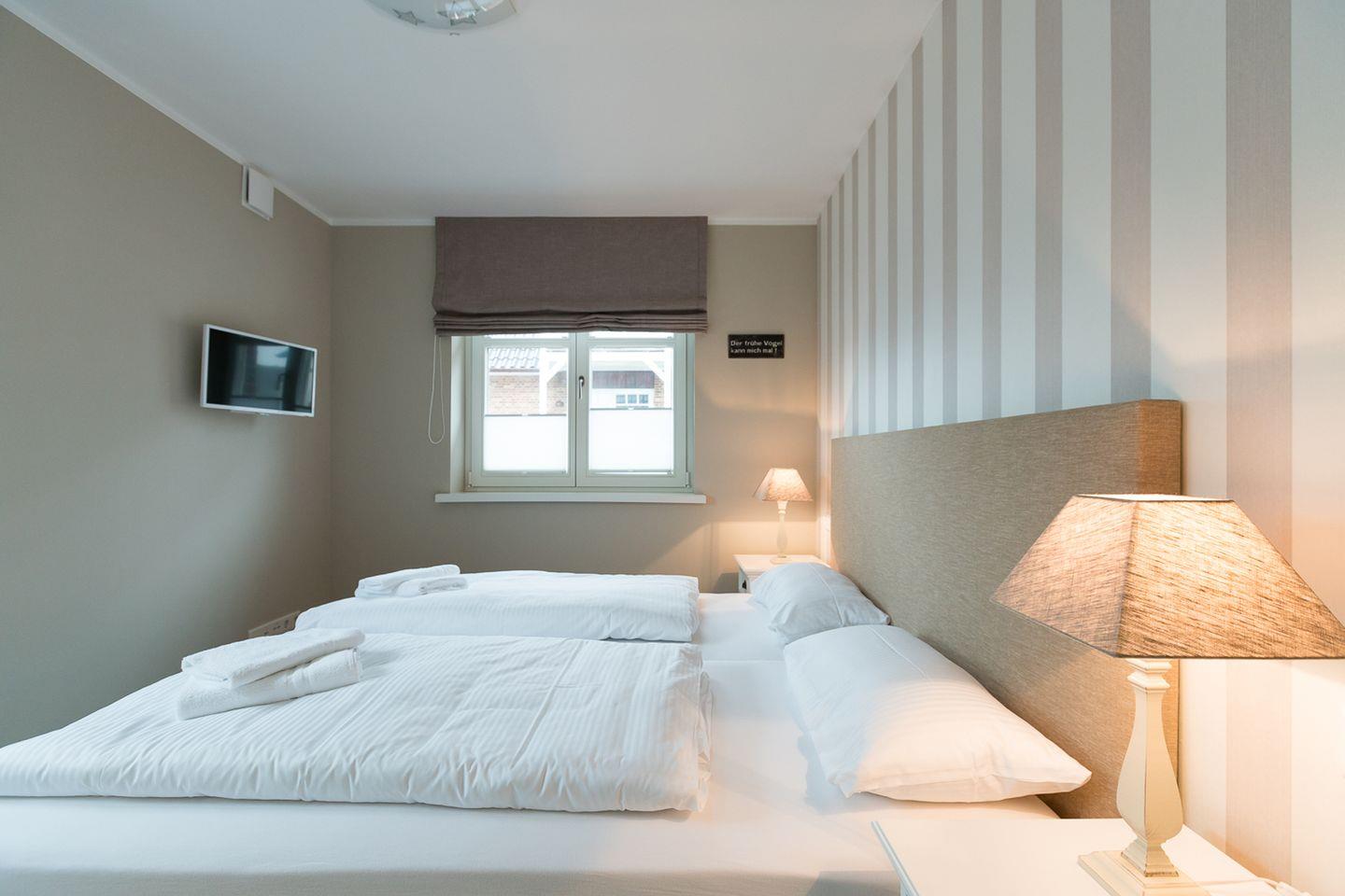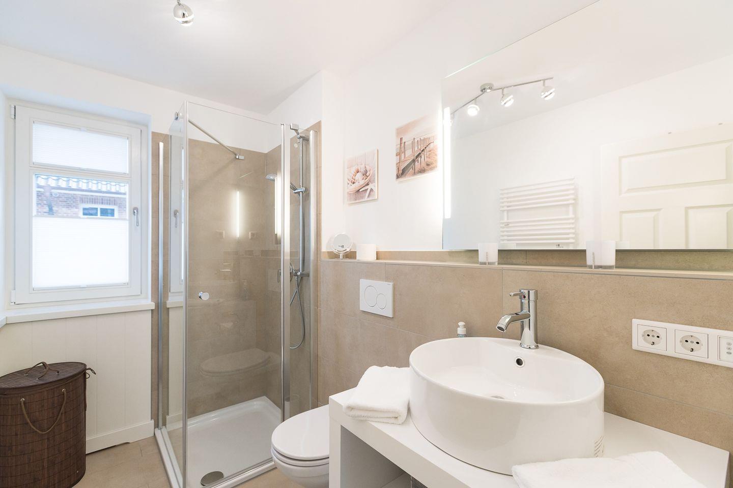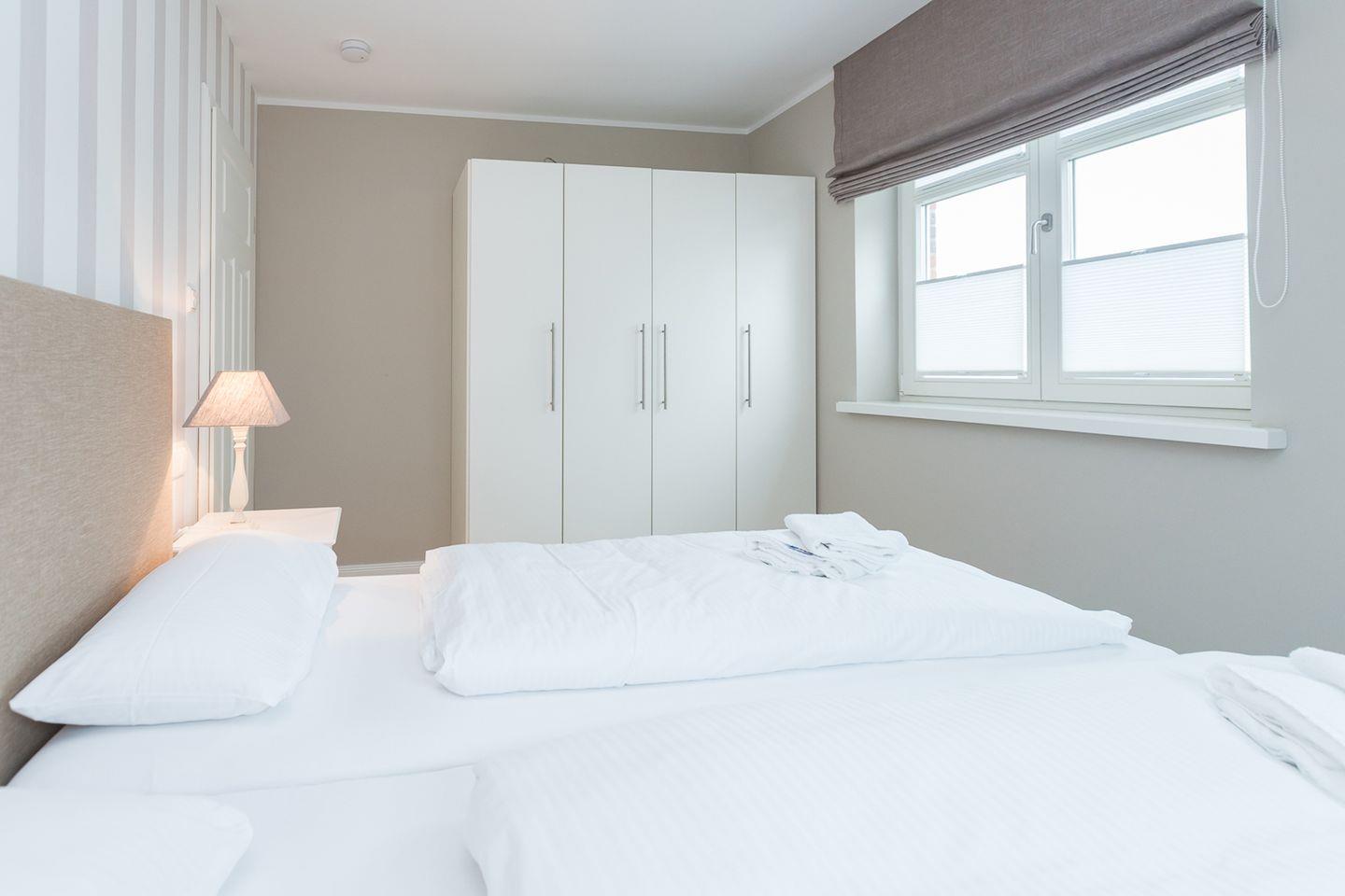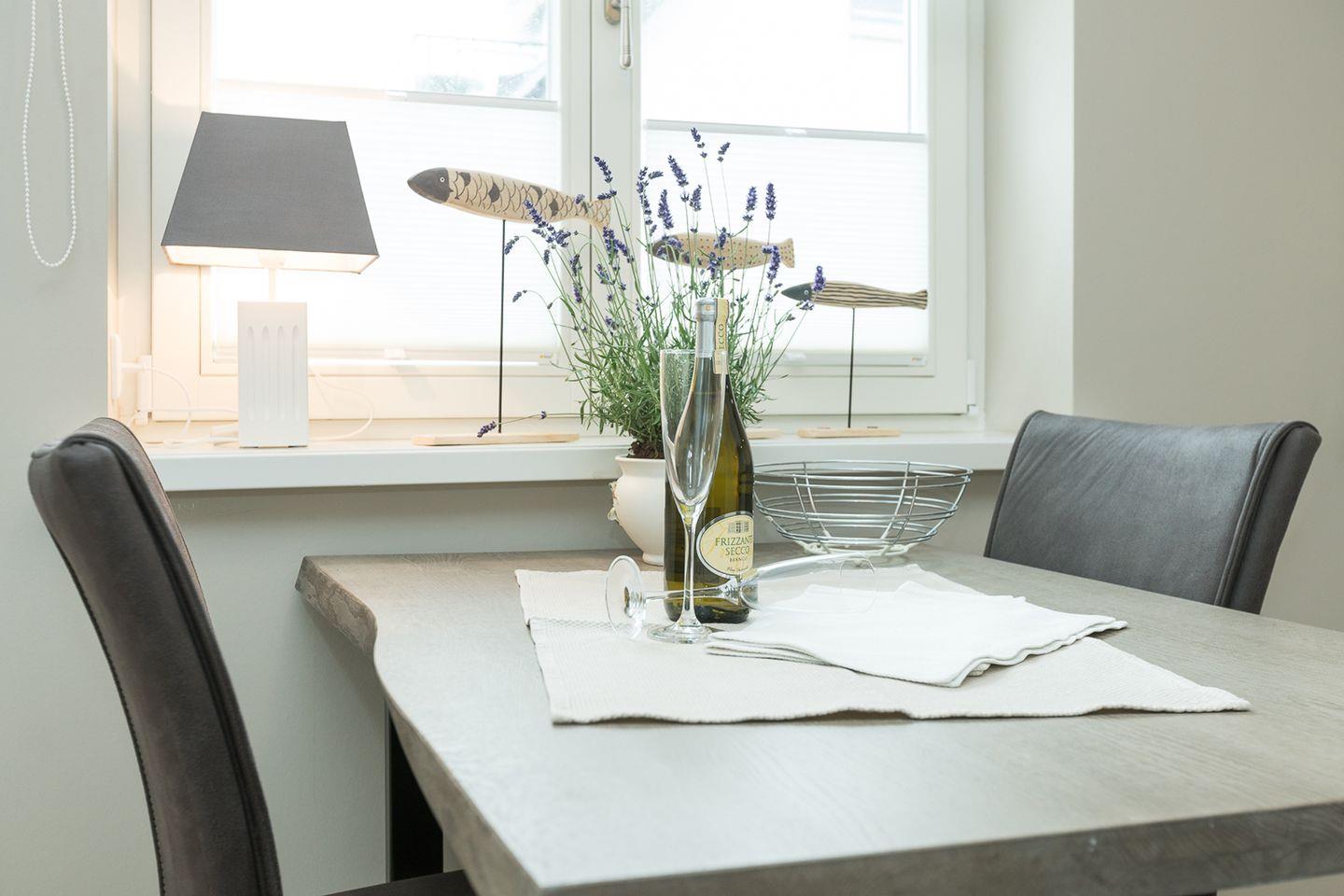 Die außergewöhnlich gestaltete Obergeschoss-Endwohnung bietet auf etwa 45 qm Platz für 3 Personen. Sie verfügt über einen Doppelschlafraum, einen Einzelschlafraum und ein stilvolles Duschbad/WC, alles auf einer Ebene. Auf dem Südbalkon stehen Ihnen hochwertige Gartenmöbel zur Verfügung. Die elegante Küche fügt sich nahtlos in den Gesamtstil ein, während die Einrichtung des Wohnraums in warmen Erdtönen gehalten ist. Die Bäder sind modern im neuesten Design ausgestattet.
