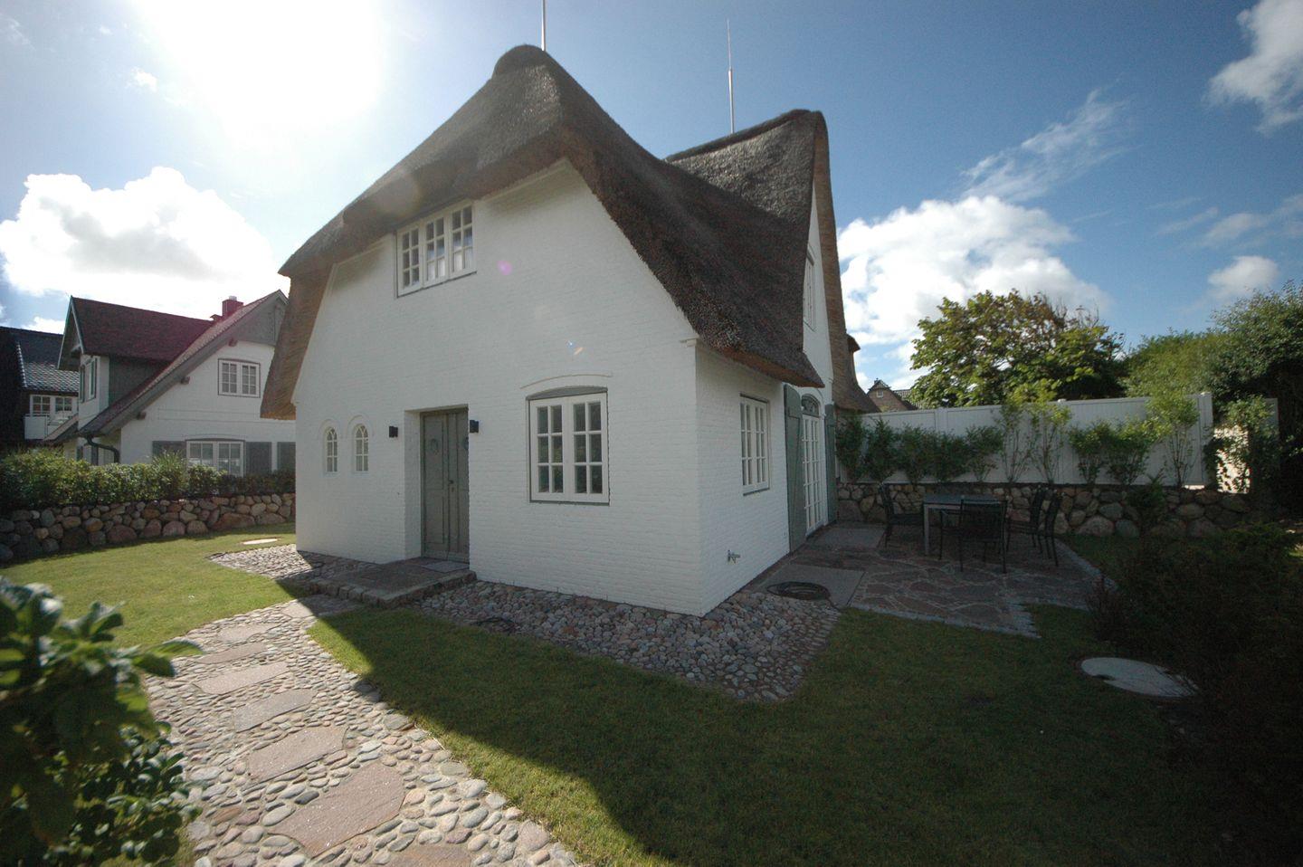 Willkommen in diesem luxuriösen Reetdach-Hausteil mit großzügigen 113 qm Wohnfläche, das Platz für bis zu 8 Personen bietet. Es erwarten Sie ein geräumiger Wohn- und Essbereich mit offener Küche sowie ein Gäste-WC. Eine sonnige Süd-Westterrasse mit stilvollen Gartenmöbeln und ein gemütlicher Strandkorb auf der Südostseite stehen Ihnen ebenfalls zur Verfügung.