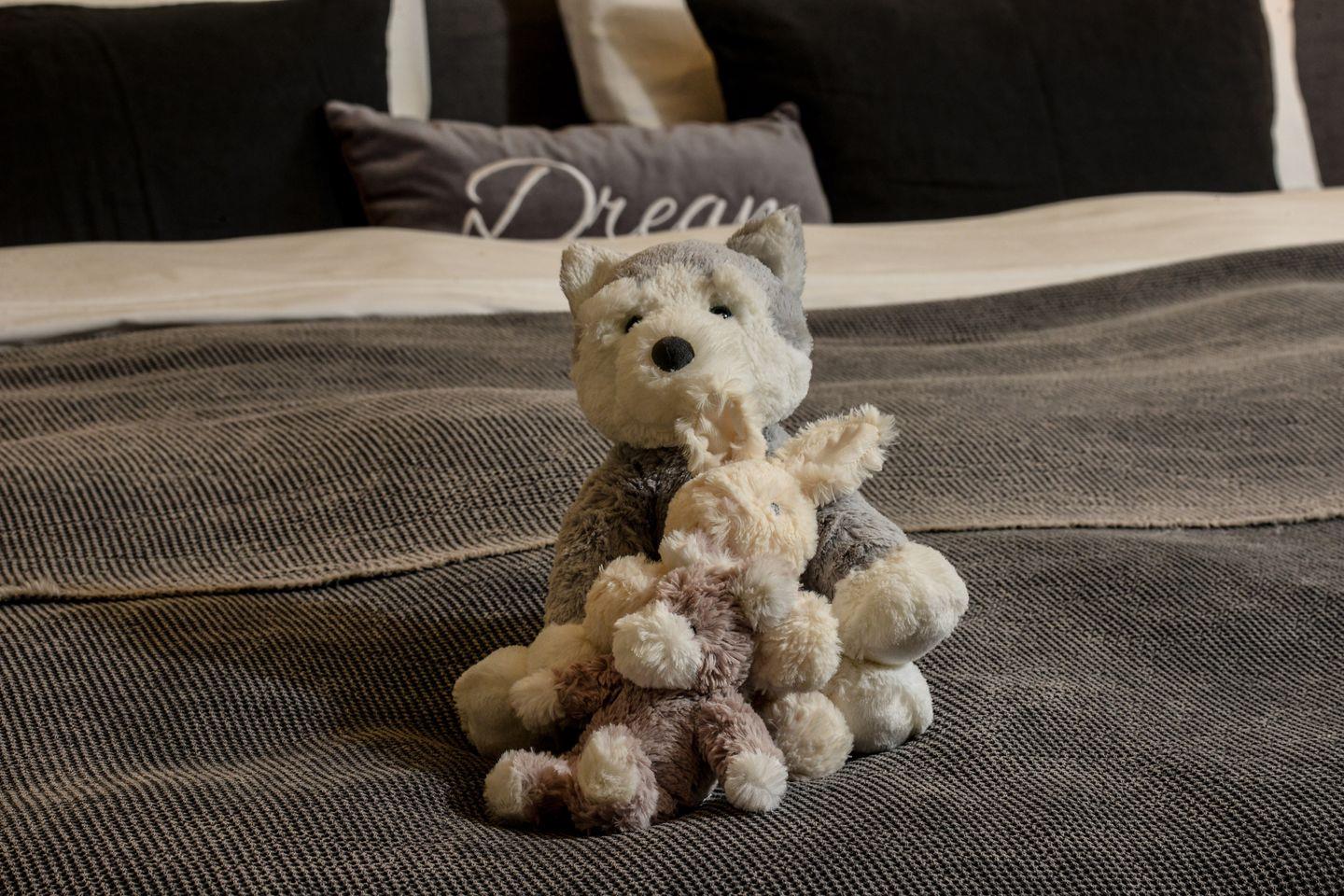 Im Dachgeschoss erwarten Sie zwei separate Masterbedrooms mit begehbaren Kleiderschränken und jeweils eigenem Bad, wobei eines sogar eine beleuchtete Badewanne bereithält. Alle Zimmer zeichnen sich durch hochwertige Tischlereinbauten mit durchdachter Beleuchtung aus. Im Untergeschoss befinden sich zwei weitere Schlafzimmer, eines davon mit einer großzügigen und gemütlichen Schlafcouch, sowie ein weiteres Duschbad und eine geräumige Sauna.