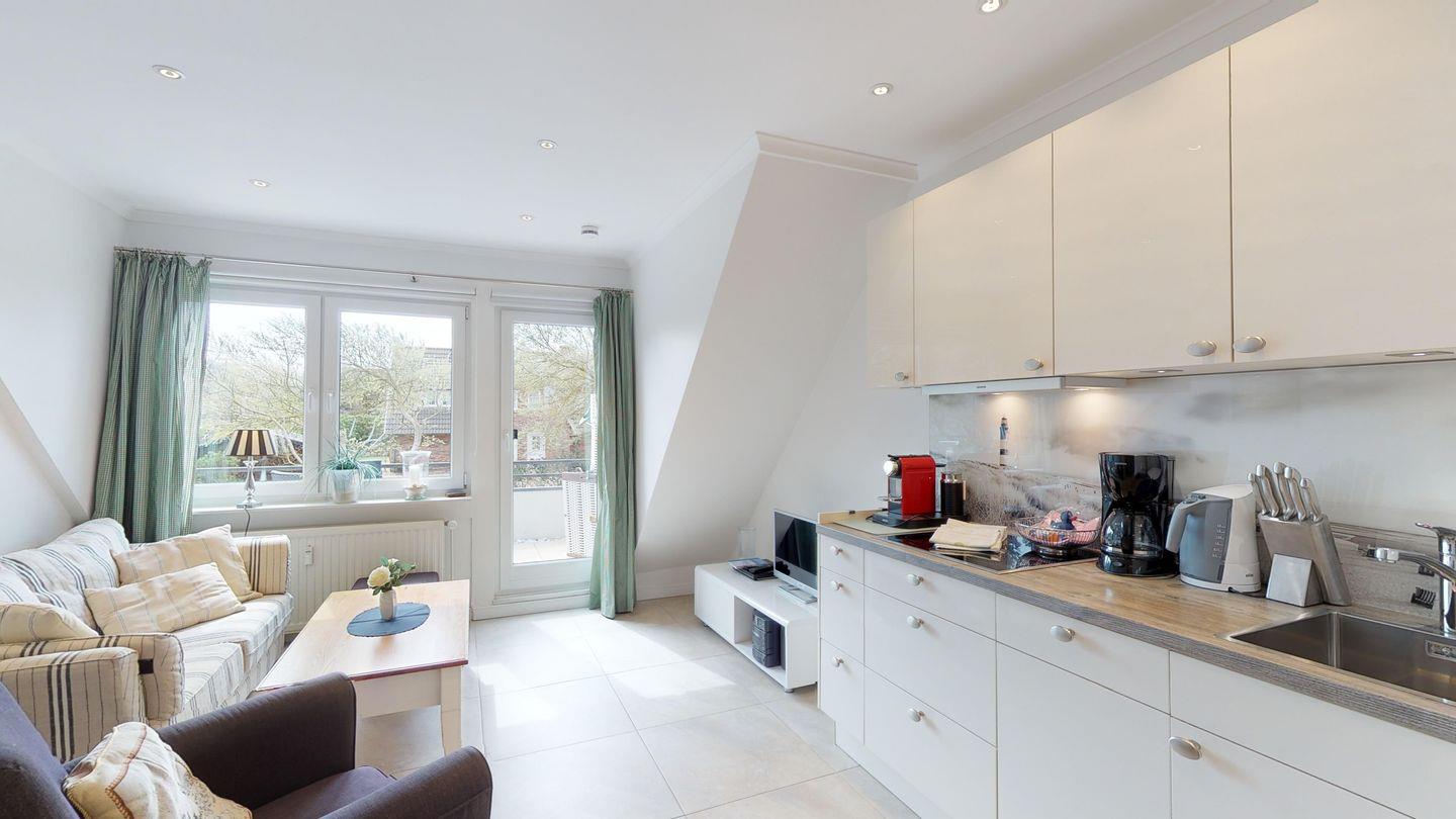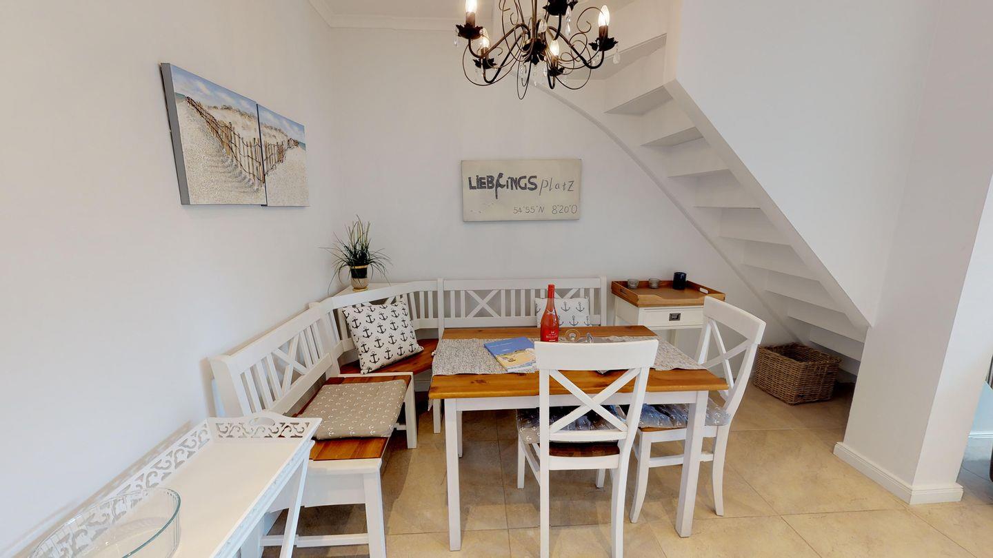 Willkommen in dieser wunderschönen Wohnung im Obergeschoss und Dachgeschoss, die mit 70 Quadratmetern Platz für 4 Personen bietet. Der lichtdurchflutete Wohn- und Essbereich ist ein sonniger Rückzugsort, der an die moderne Küchenzeile anschließt und Zugang zu einem großzügigen Südbalkon bietet, ideal für entspannte Momente im Freien.