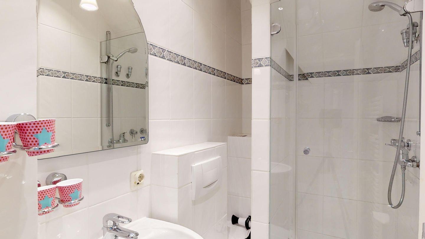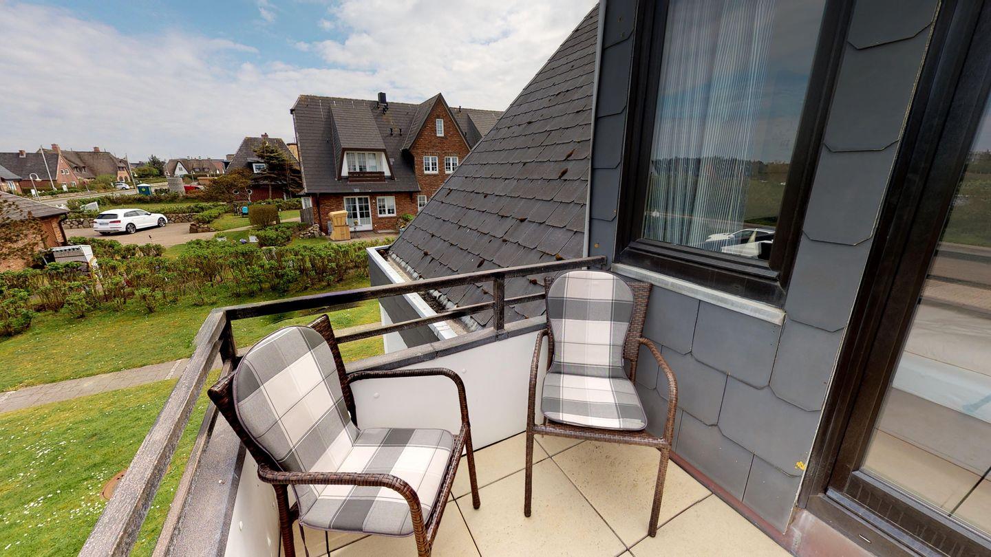 Auf derselben Ebene befindet sich ein gemütlicher Schlafraum mit einem komfortablen Doppelbett und einem Balkon nach Norden, der Ihnen einen herrlichen Ausblick bietet. Hier finden Sie auch das moderne Duschbad, das für Ihre Erfrischung sorgt. Im Dachgeschoss erwartet Sie ein weiterer Schlafraum mit zwei Einzelbetten, perfekt für Kinder oder zusätzliche Gäste.