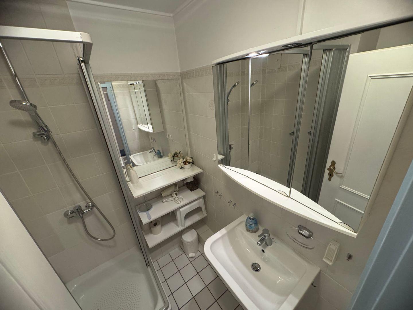 Das Schlafzimmer verfügt über einen komfortablen Schlafbereich und ist ebenfalls mit Laminat ausgestattet. Hier werden Sie erholsame Nächte verbringen und gut ausgeruht in den Tag starten. Das Badezimmer ist modern und mit einer Dusche ausgestattet.