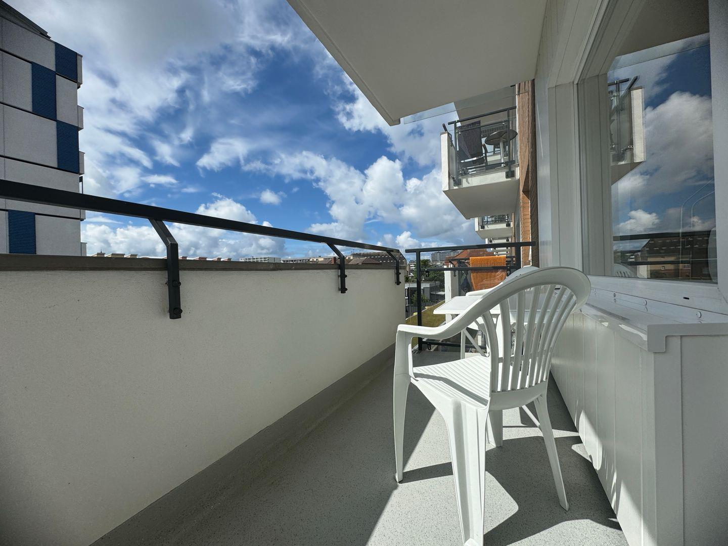 Ein weiteres Highlight ist der eigene Balkon, der Ihnen einen traumhaften Blick über die Umgebung bietet und zum Verweilen im Freien einlädt. Ob für ein Frühstück in der Sonne oder entspannte Abende bei einem Glas Wein – der Balkon wird schnell zu Ihrem Lieblingsplatz.