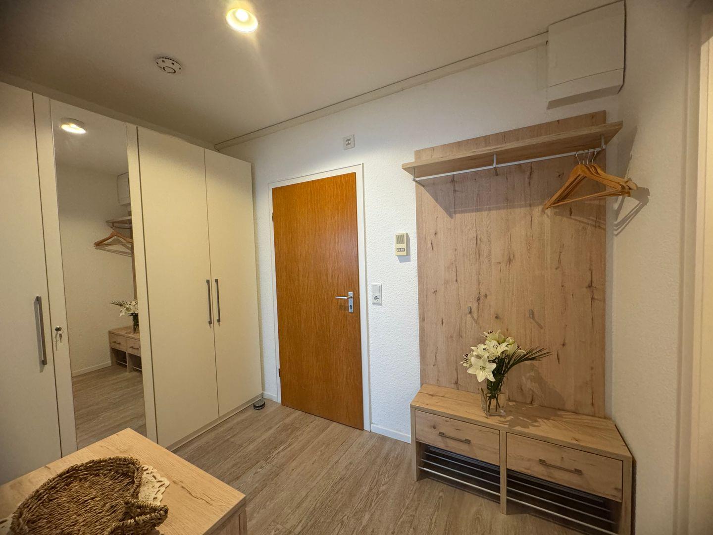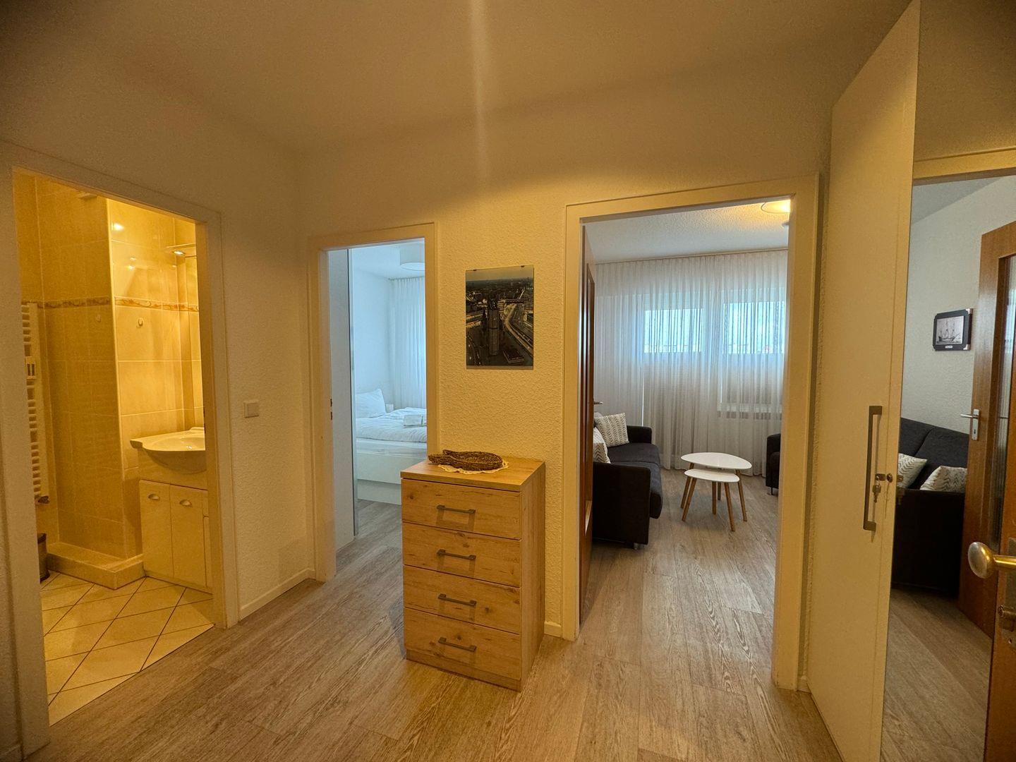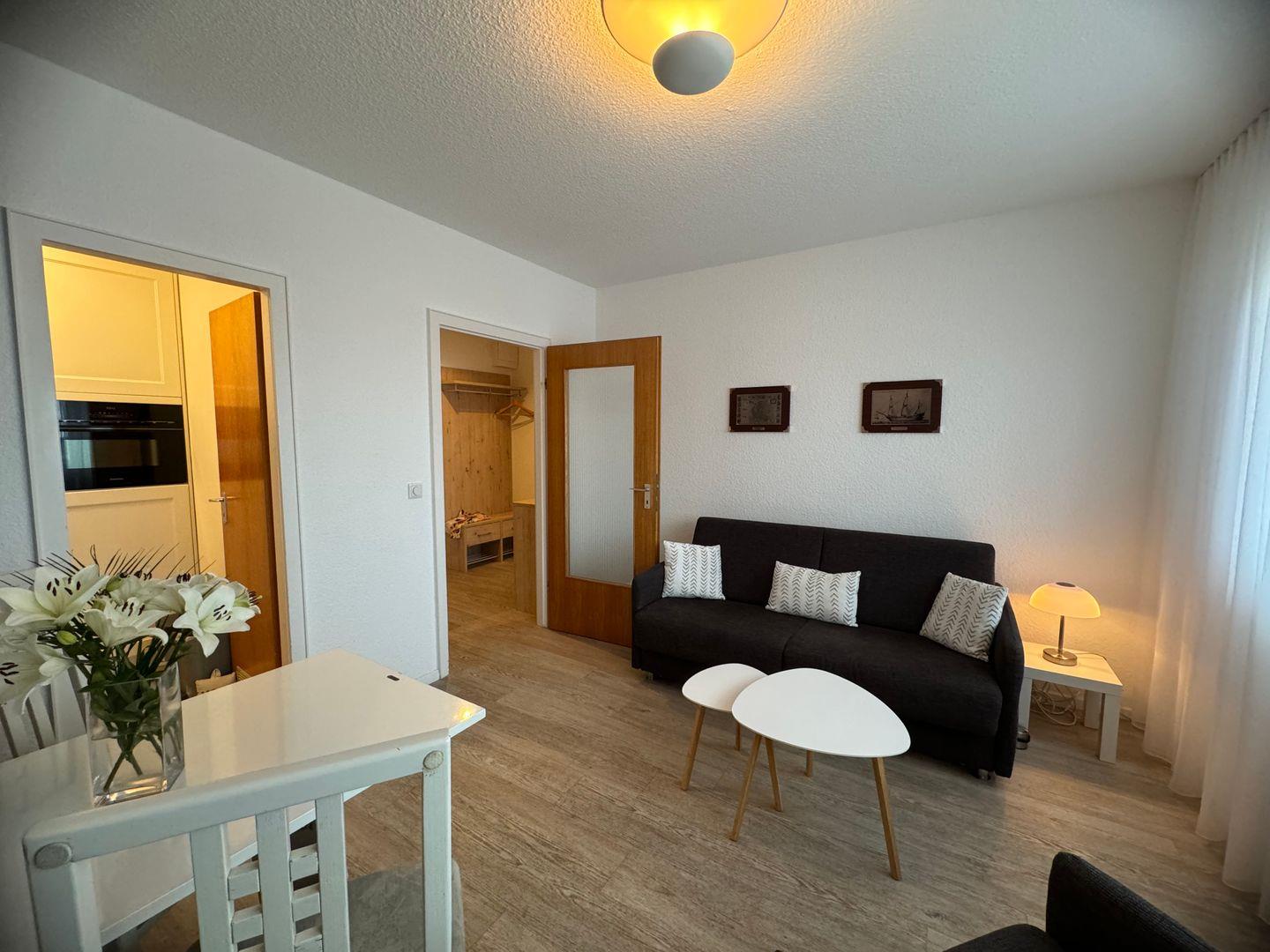 Die Wohnung befindet sich im dritten Stock und ist bequem mit einem Aufzug erreichbar. Sie ist hell und freundlich gestaltet und verfügt über ein gemütliches Schlafzimmer.