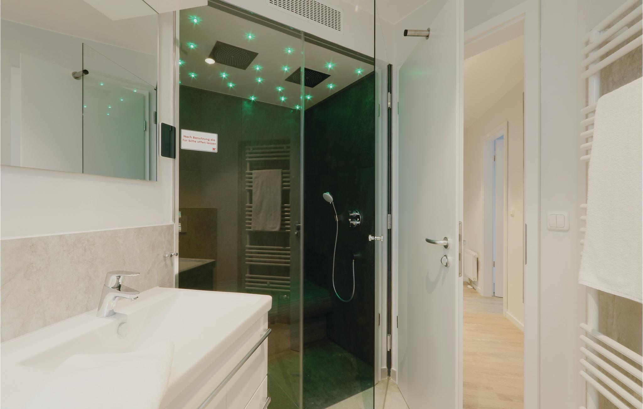 Noget særligt at badeværelset, der er jeres helt personlige lille wellnessområde med gulvvarme og dampbadet med integreret regnskovsbruser. Her kan I slappe af og lade tankerne glide på langfart, glemme alt om hverdagens problemer og lade de flade batterier op igen. Ikke nok med det, når badet er slut, kan I sætte jer foran de flakkende flammer i bioetanol-kaminen, som giver et hyggeligt lys. Ninette Mathiessen, en lokal travemündekunstner, har tilføjet lejlighederne det kunstneriske præg.