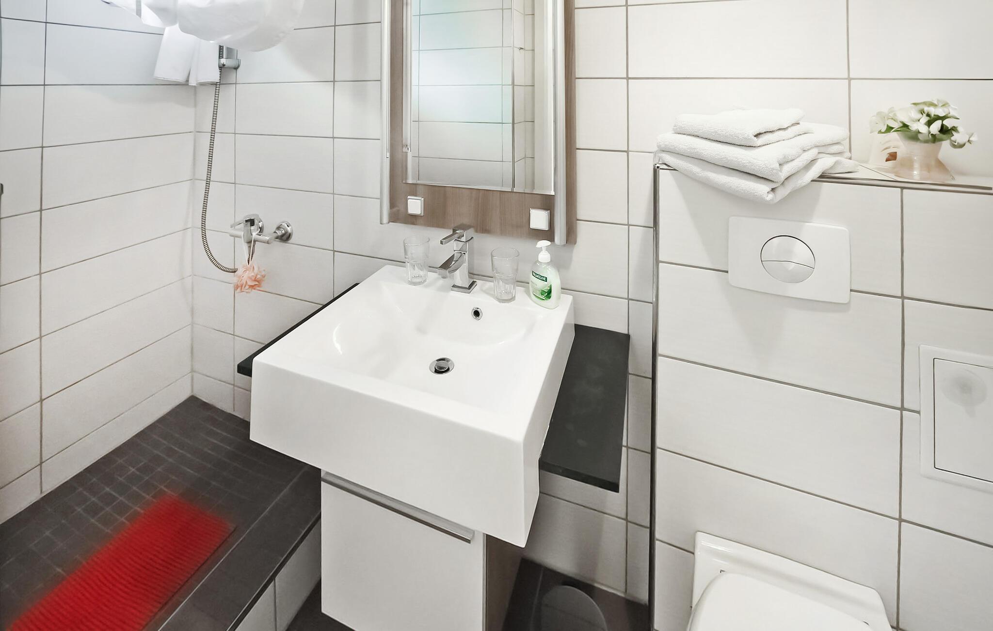 Badeværelse (nr. 1) - WC. Varmt og koldt vand. Bruser