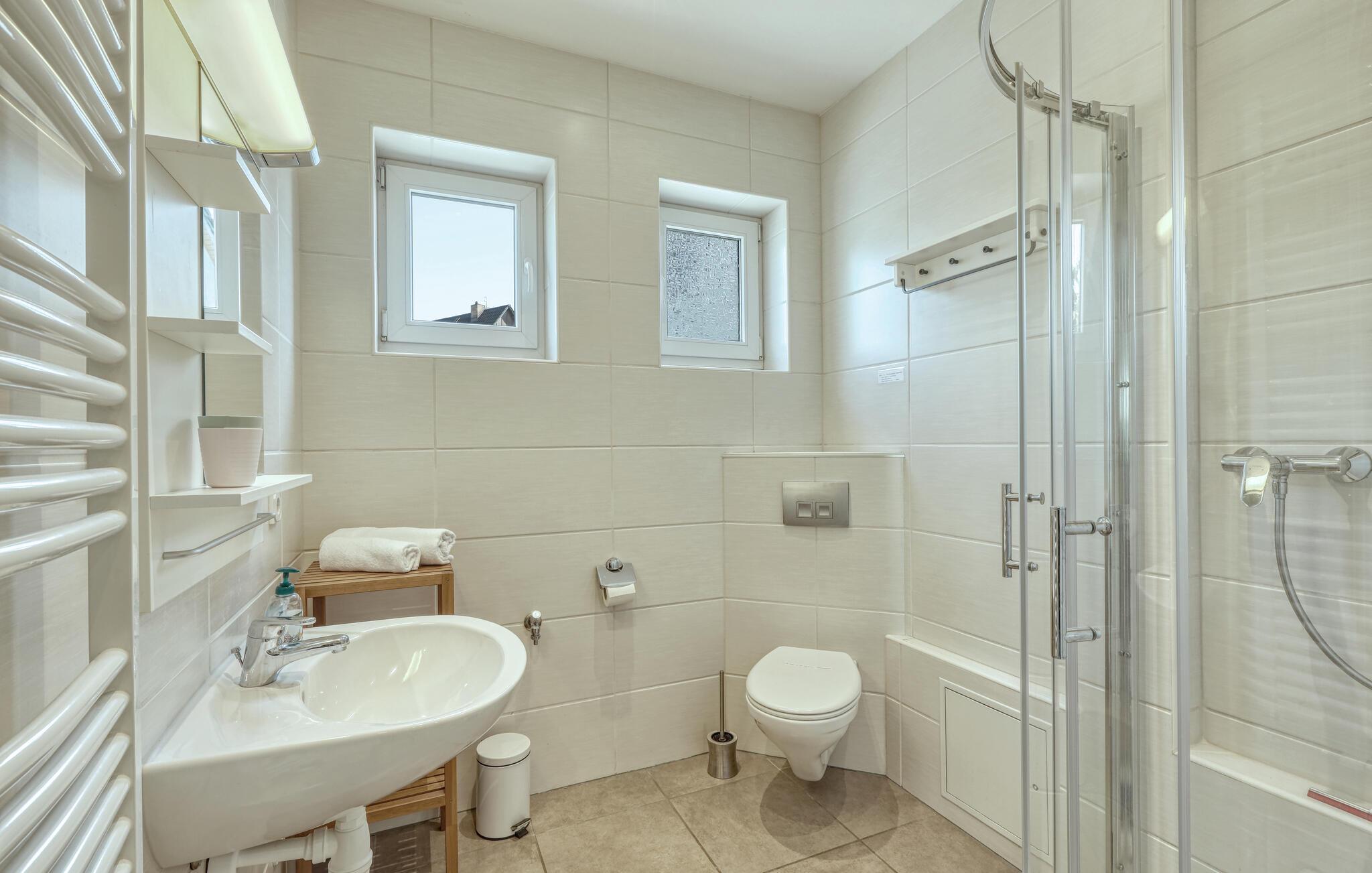 Badeværelse (nr. 1) - WC. Varmt og koldt vand. Bruser