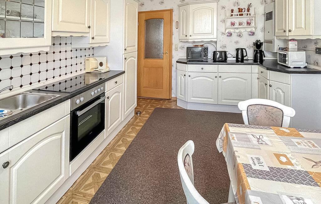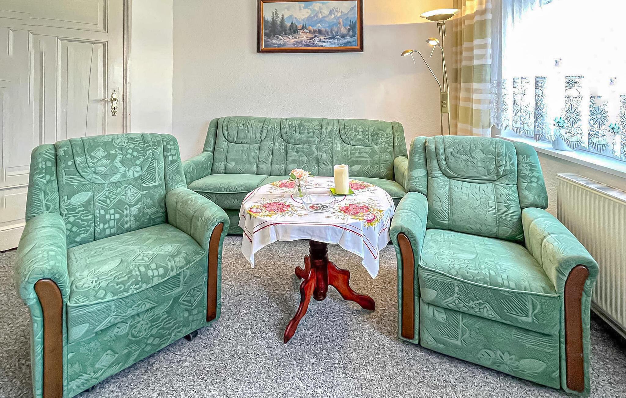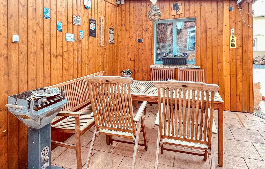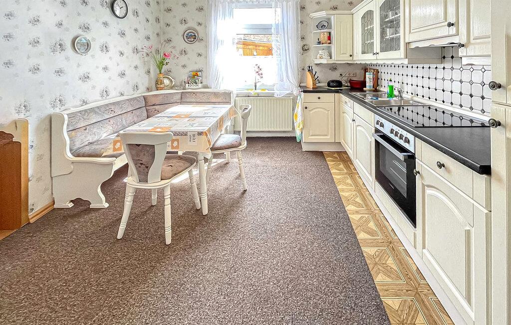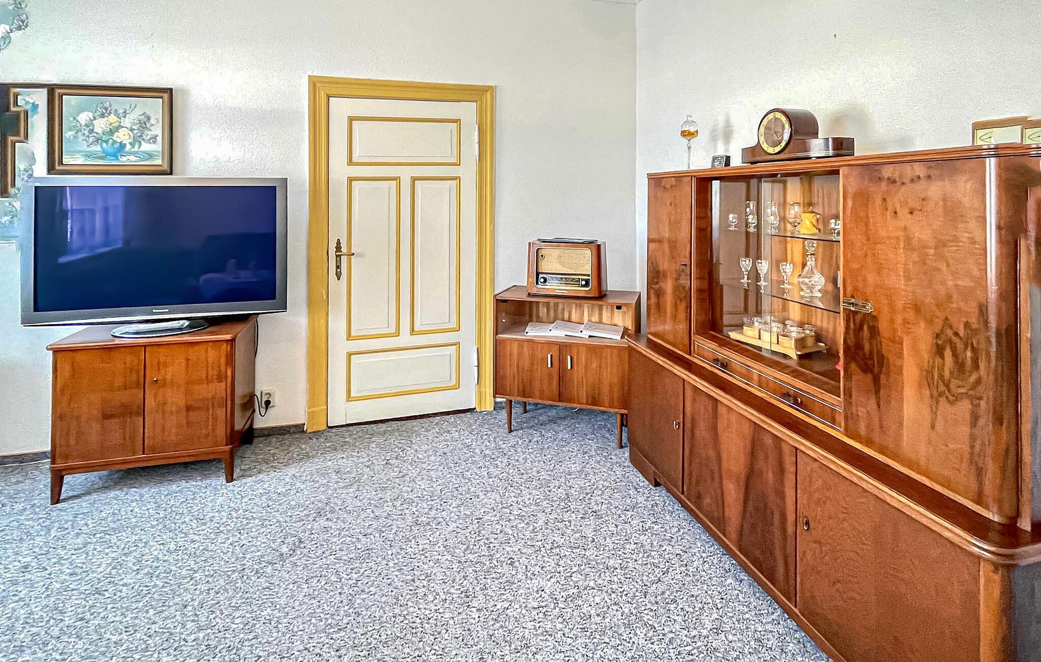 Ferielejligheden ligger i stueetagen i et privat hus lige ved siden af Ueckermünder Zoo. Ejeren bor på øverste etage. Den restaurerede gamle bydel med havnen ligger cirka 1 km væk, den udendørs swimmingpool på Szczecin-lagunen er cirka 4,5 km væk. Faciliteter med stue (polstret opholdsområde med sovefunktion, satellit-tv, radio), to soveværelser (dobbeltseng eller 2 polstrede liggestole, gæsteseng, der kan tilføjes), stort køkken med komplet tekøkken (elkomfur med ovn, opvaskemaskine, køleskab , spiseplads , diverse køkkenmaskiner), badeværelse med kar og toilet, centralvarme. Der er også gratis WiFi, et overdækket udendørs opholdsområde, en kulgrill, en parkeringsplads på ejendommen, en barneseng og høj stol, hvis det kræves, og et cykelrum. Den samlede pris inkluderer slutrengøring, sengelinned, håndklæder, vand og energiforbrug. Betales på stedet: turistskat. En lille hund op til en højde på 40 cm er tilladt. Badebyen Ueckermünde, den østligste tyske havneby ved Stettiner-lagunen, har omkring 12.000 indbyggere. I de senere år har det udviklet sig til en stærkt anbefalet ferieadresse. Der er blandt andet en gammel by, der er værd at se med cafeer, restauranter og indkøbsmuligheder, en lystbådehavn på Uecker med bådudlejning og passagerbådsture til Polen og øen Usedom, en smuk zoologisk have og en velholdt strand med en spa-park og promenade ved Szczecin-lagunen med restauranter, udlejning af strandstole og minigolf. Takket være det veludviklede netværk af cykel- og vandrestier kan de smukke, skovklædte omgivelser nemt udforskes selv uden bil. Lystfiskere vil finde de bedste forhold, især ved Uecker-floden.