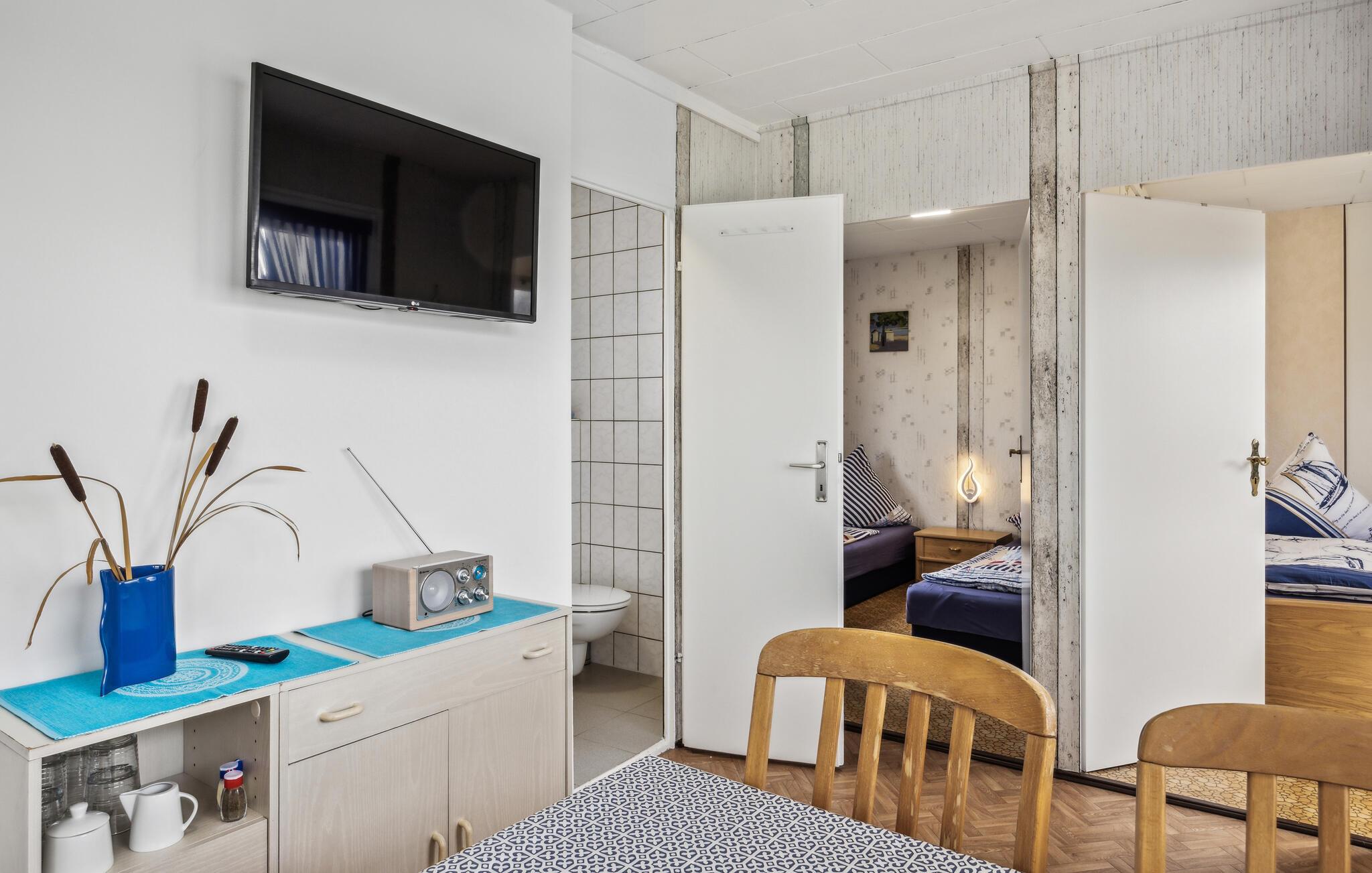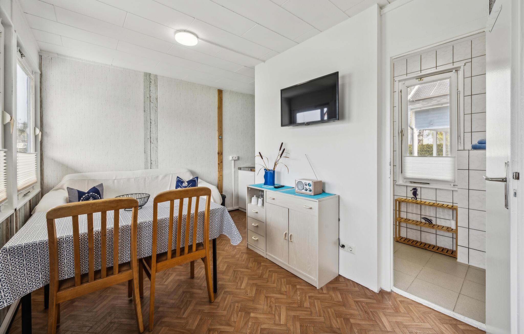 Fred, ro og smukke naturoplevelser er, hvad der venter jer i dette kompakte feriehus i Ueckermünde. Huset er smart indrettet, kvadratmeterne er veludnyttede, så I trods den beskedne størrelse får alt det, I behøver for at kunne slappe af før og efter dagens udflugter. Lad en begivenhedsrig dag gå på hæld i sofaen med en god film på tv'et og lidt lækre snacks, mens I lægger planer for de kommende dage.