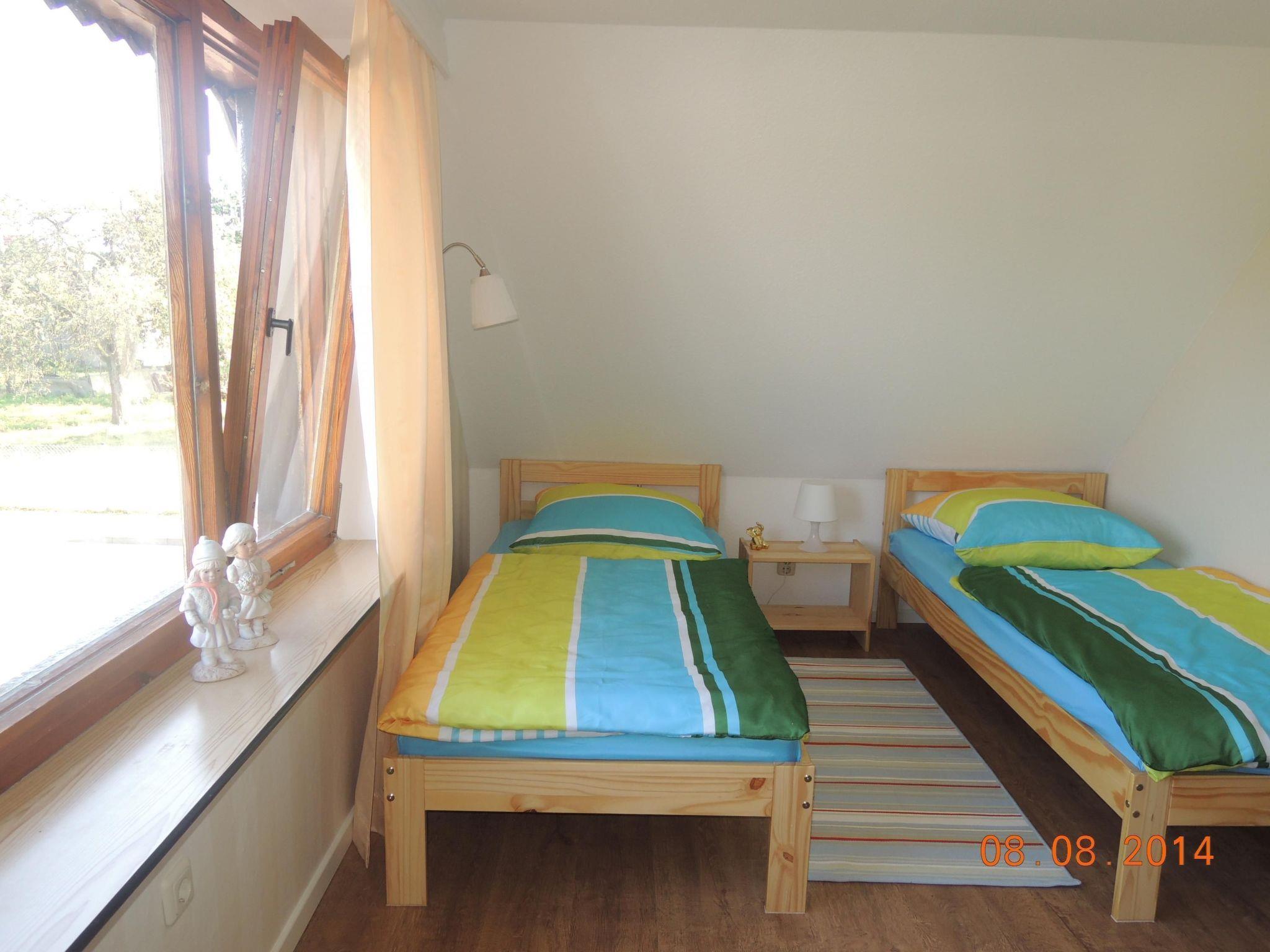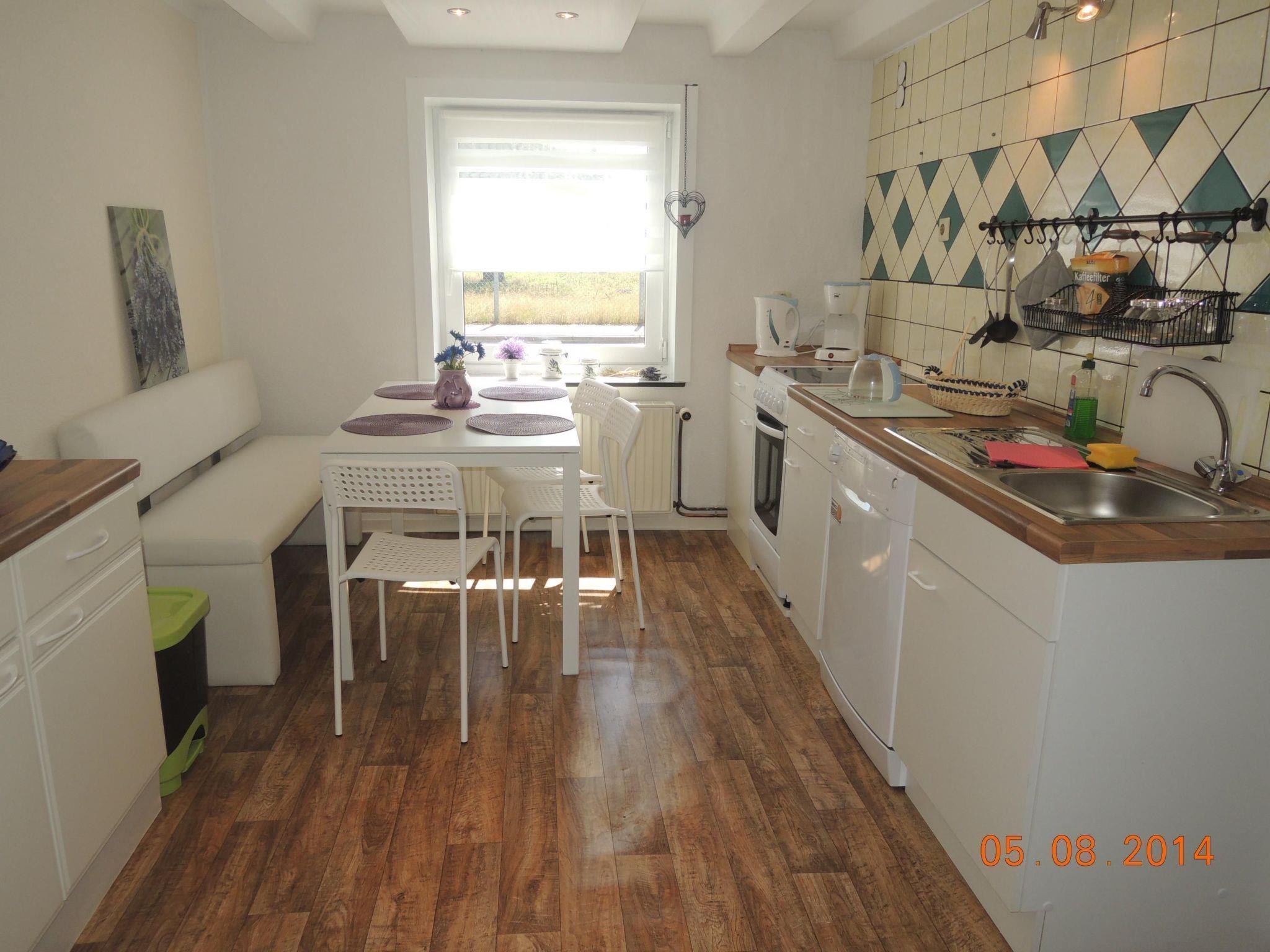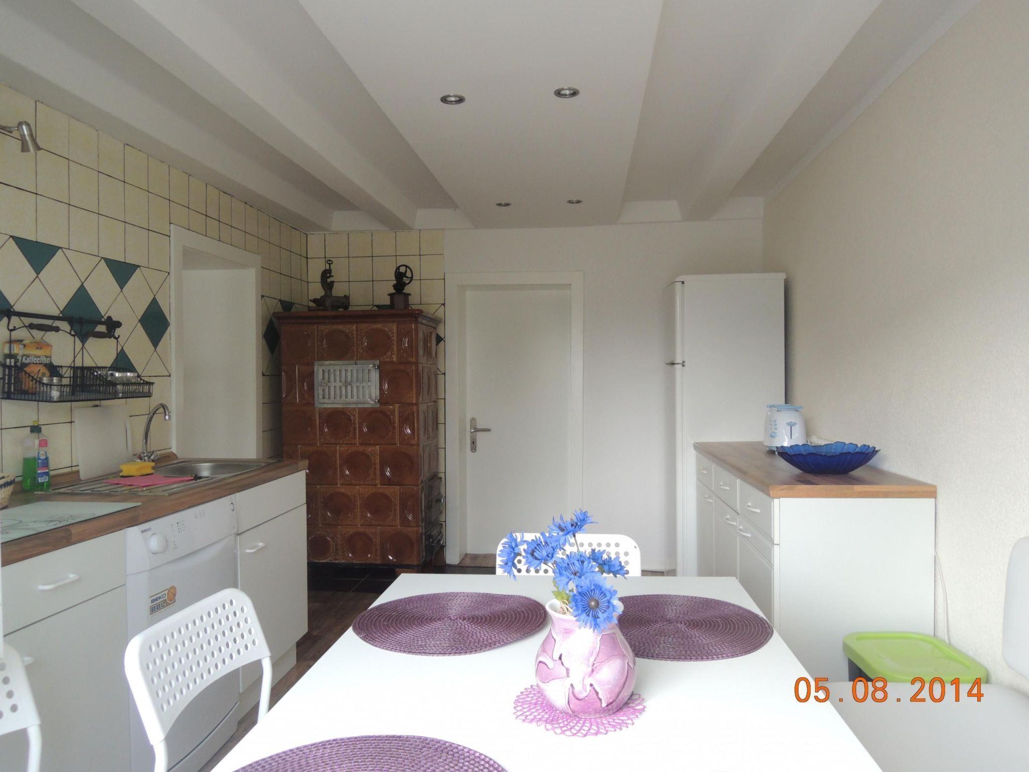 This house is a newly renovated, charmingly decorated holiday house with 120m² of living space, providing ample space for up to six people. The house has three bedrooms. The first is furnished with a double bed (180 x 200cm), the second has two single beds (90 x 200cm). These two bedrooms are on the upper floor. The third bedroom is on the ground floor and has a double bed (180 x 200cm). You can also make yourselves comfortable in the cosy living room on the ground floor with sofas, a tiled fireplace stove and satellite TV. The kitchen is fully-equipped and provides all the basics, along with a dishwasher, microwave and toaster.