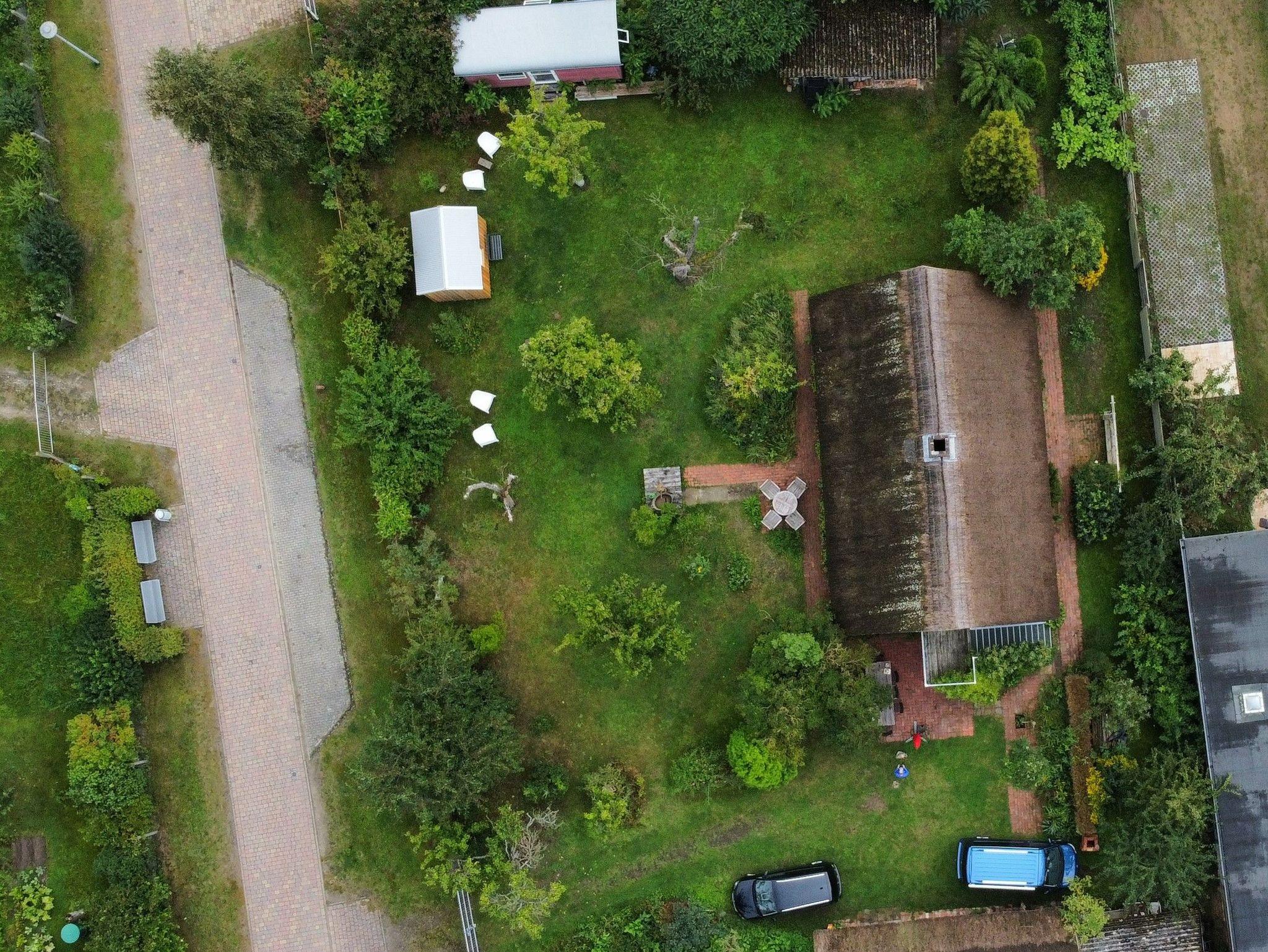 Historisches Reetdachhaus mit Bauwagen und großem Obstgarten, Denkmal ans Haff