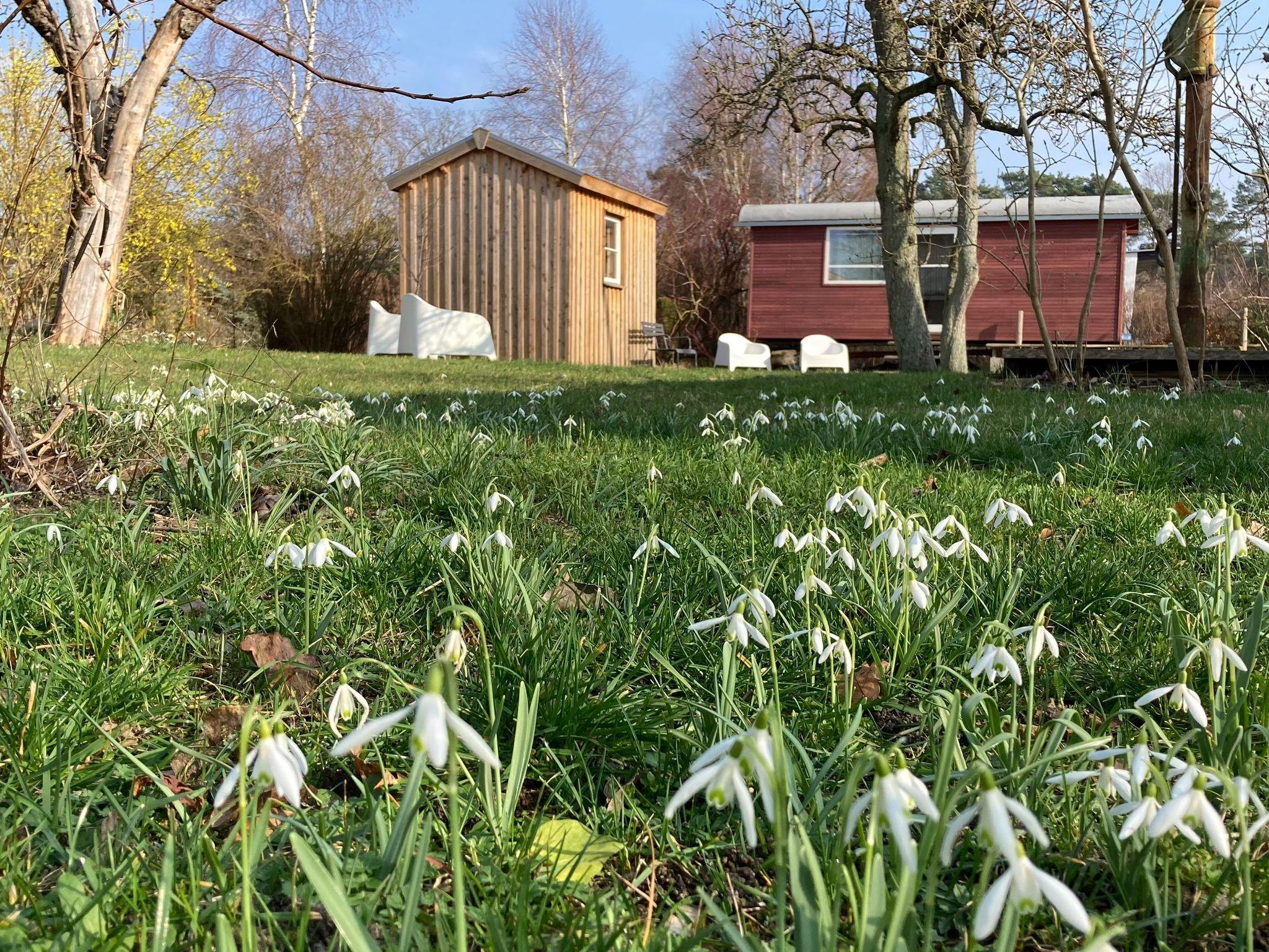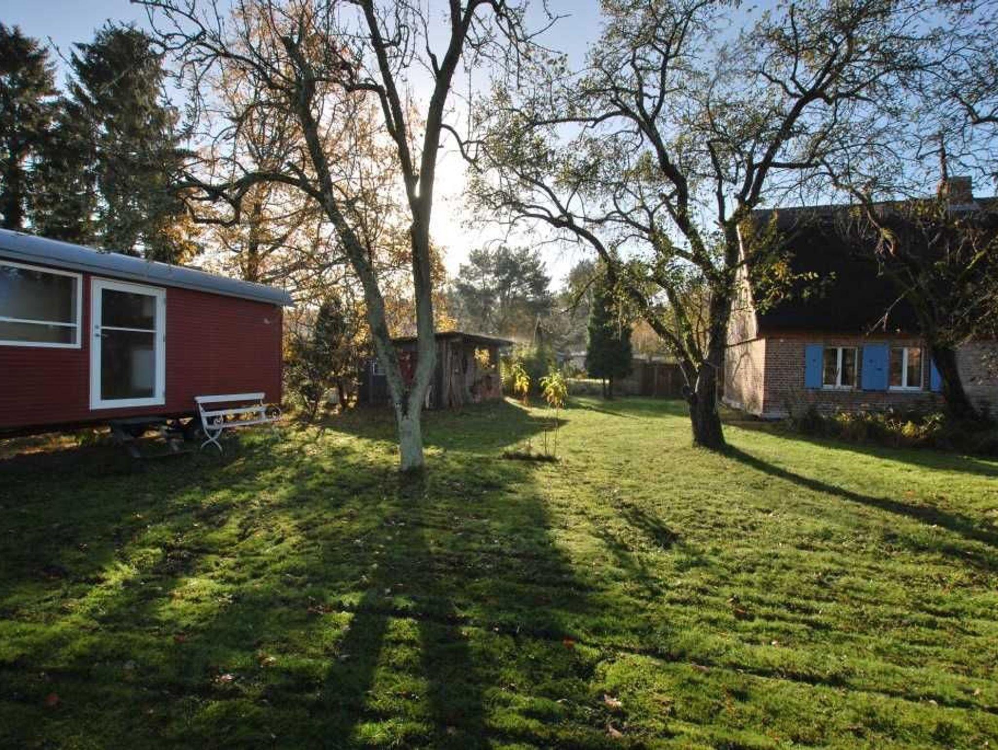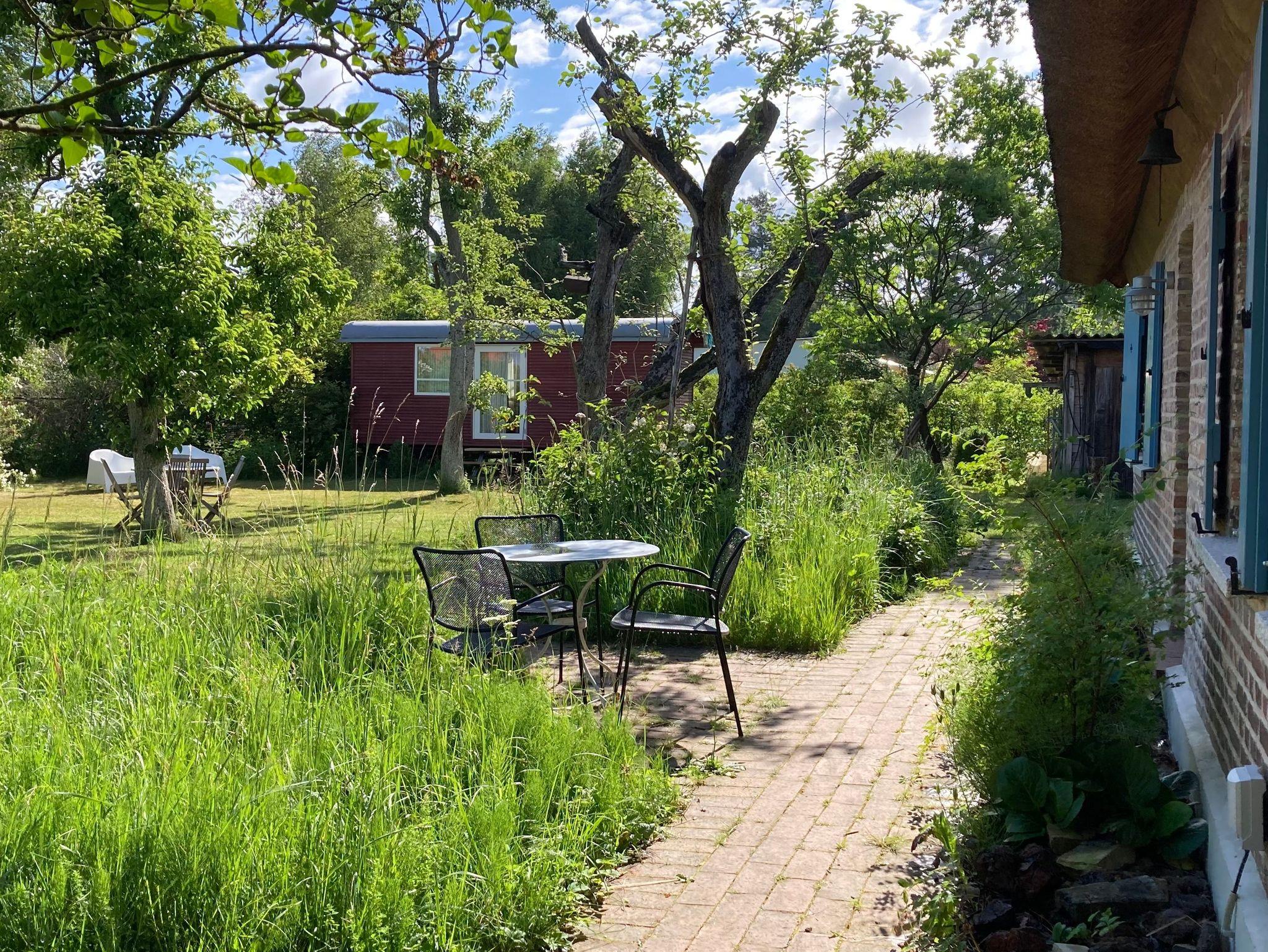 Ergänzend zum Ferienhaus können wir Ihnen noch einen schwedenroten Bauwagen als Übernachtungsmöglichkeit für 1-2 Personen anbieten. Der Wagen ist komplett saniert und steht im Garten unter alten Obstbäumen.