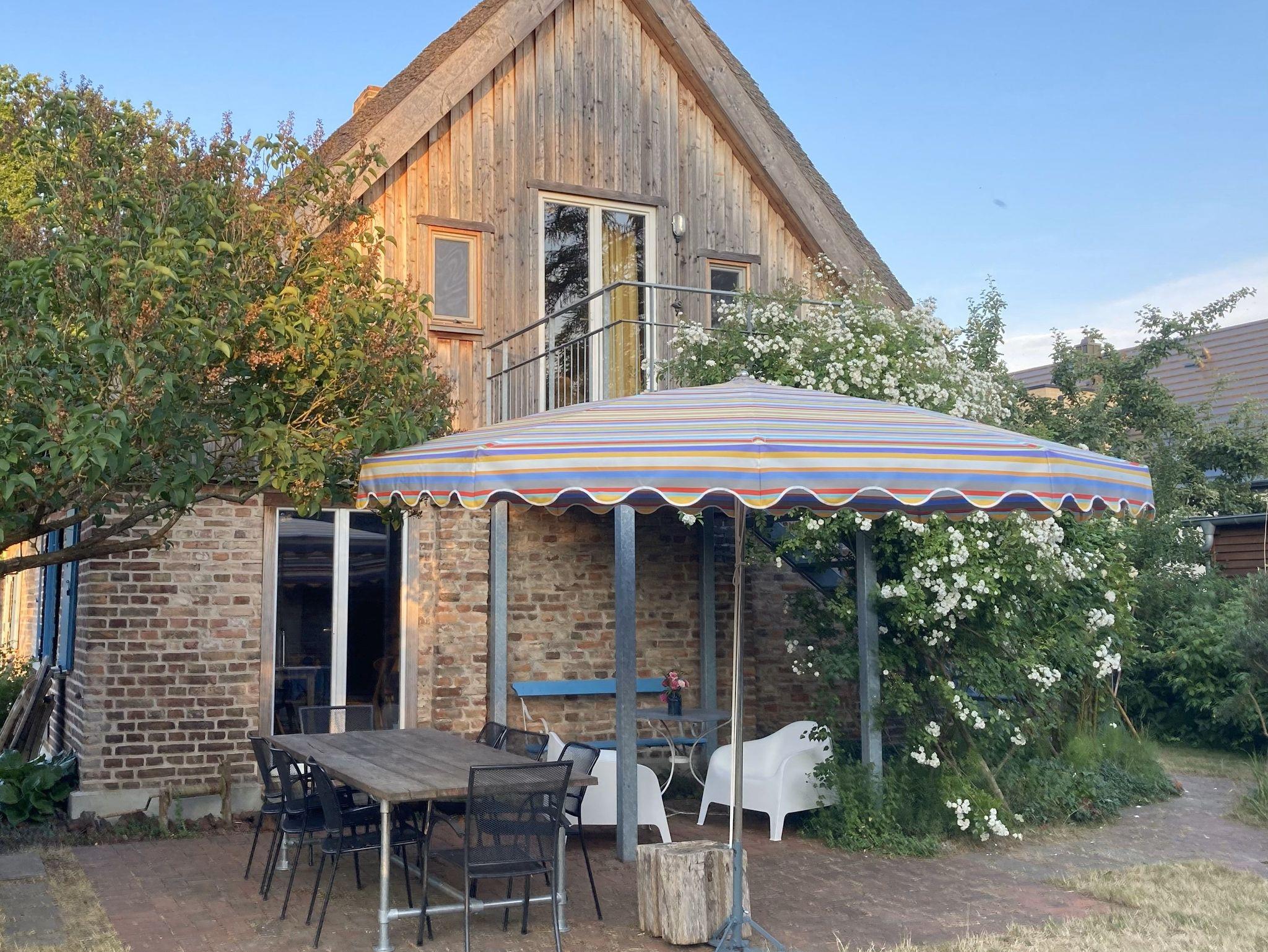 Reetgedecktes Bauernhaus mit großem Obstgarten und direkter Nähe (2 min.) zum Haffstrand. Hier können bis zu 6 Erwachsene und 2 Kinder bis 7 Jahre ihren traumhaften Urlaub verbringen.