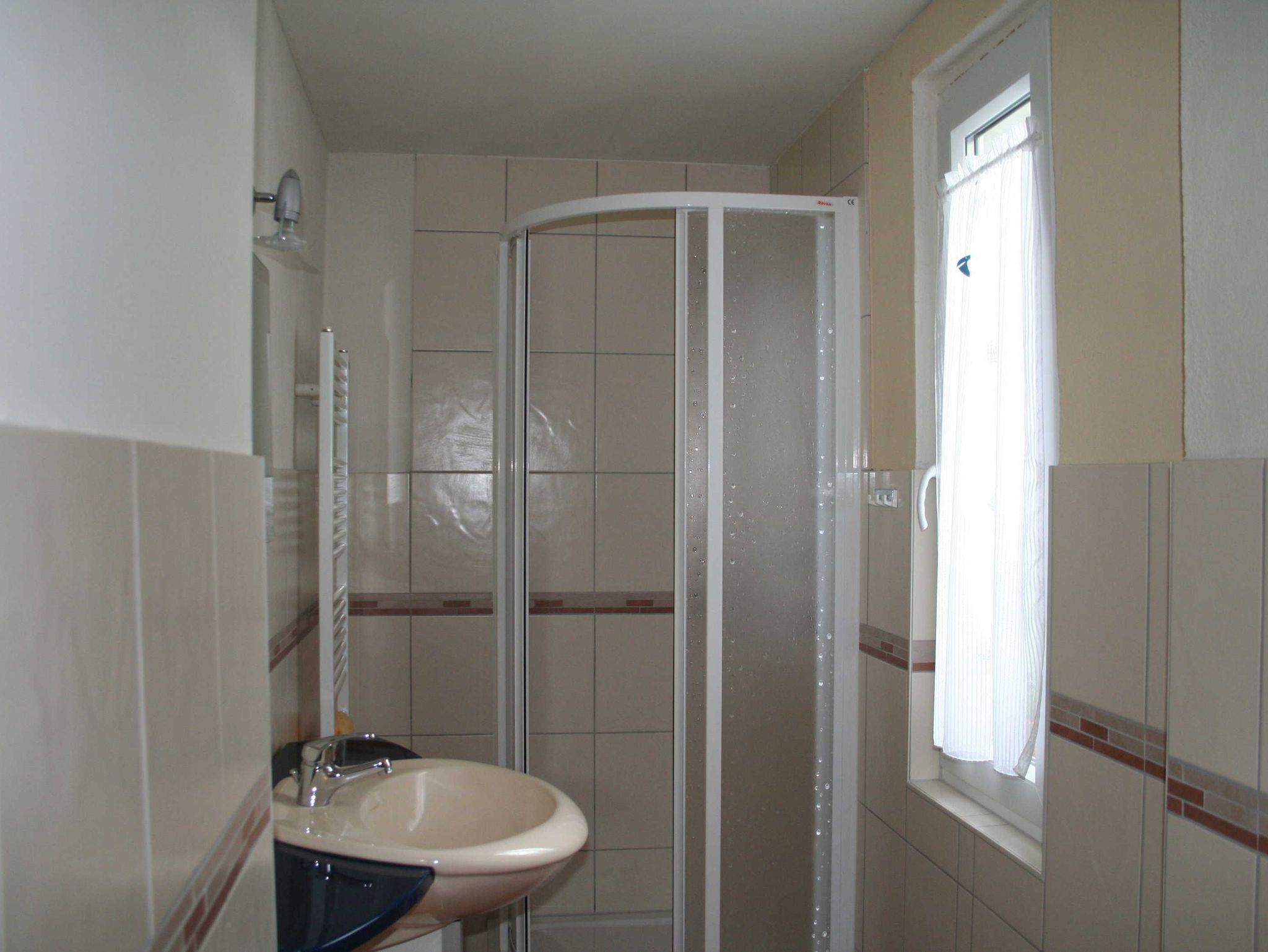 Das Ferienhaus bietet weiterhin ein Schlafzimmer mit Doppelbett sowie ein Badezimmer mit Dusche.