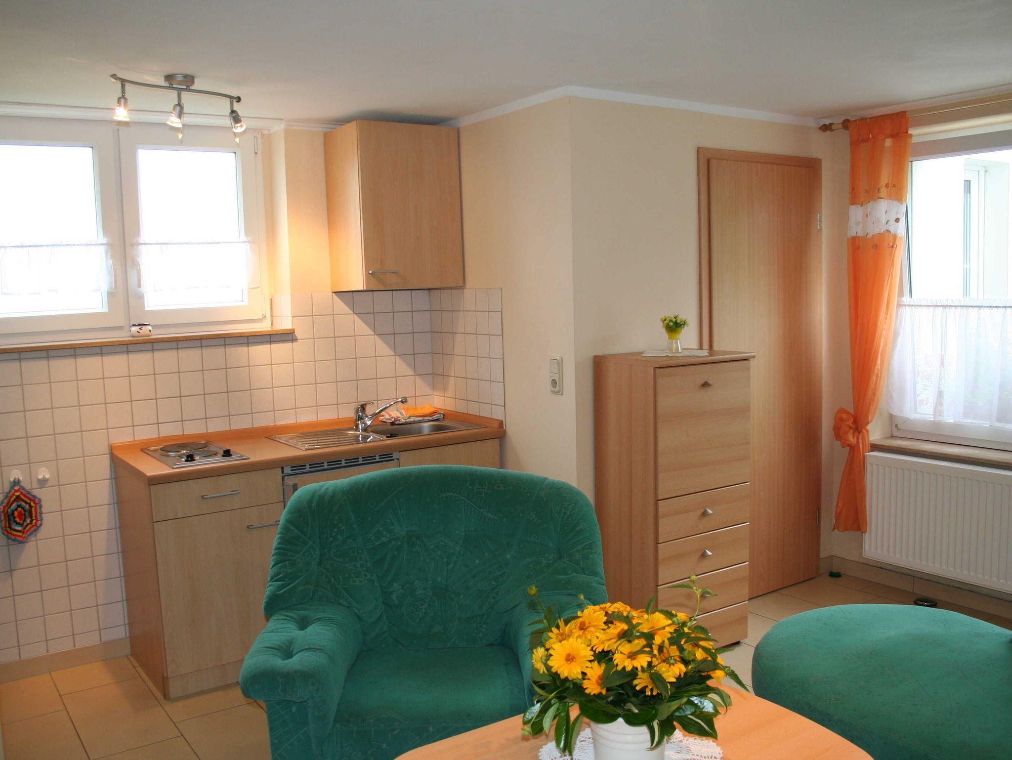 1 großer Wohnraum mit offener Küche , 1 Schlafzimmer, Bad mit Dusche, Terrasse