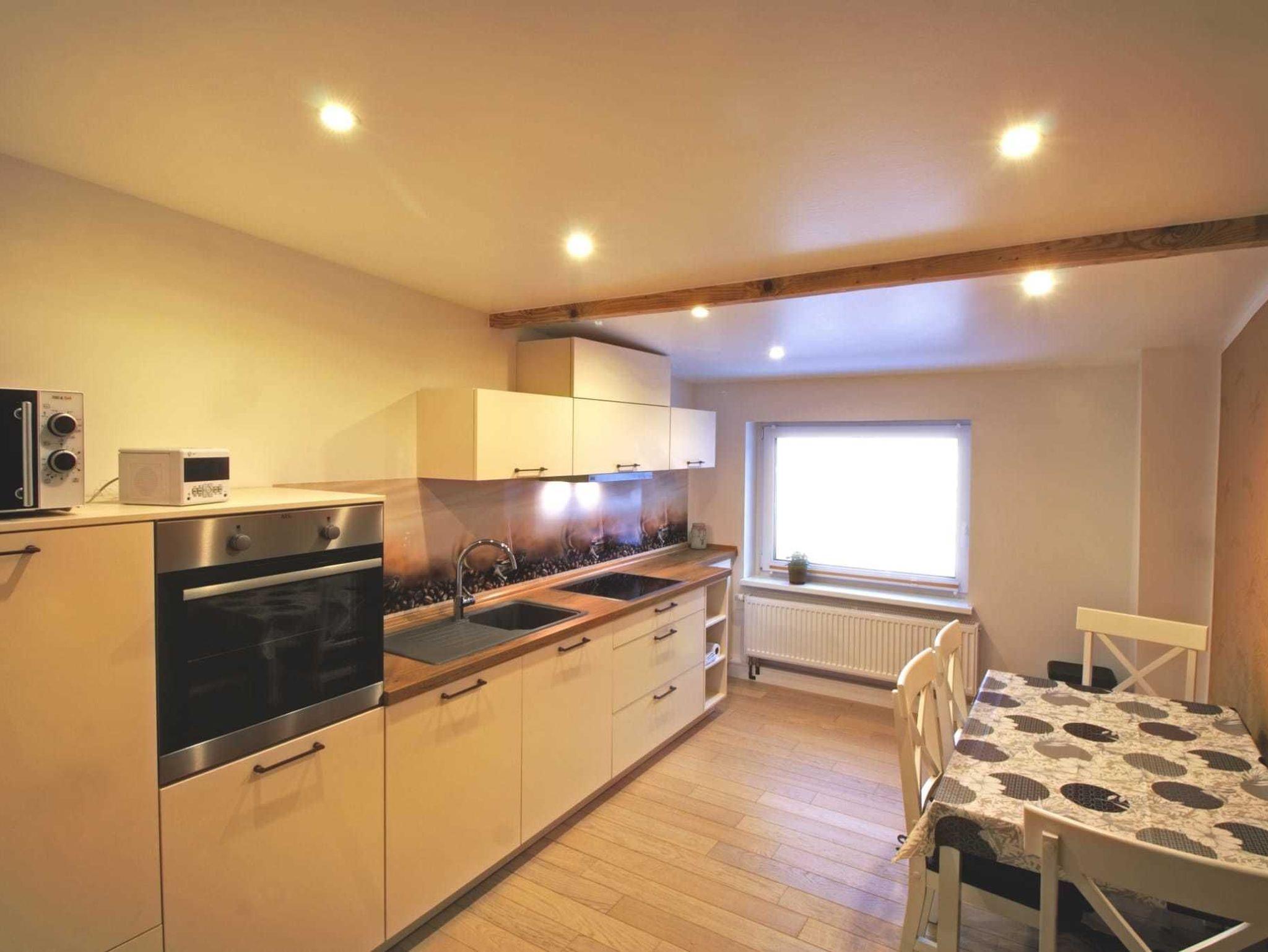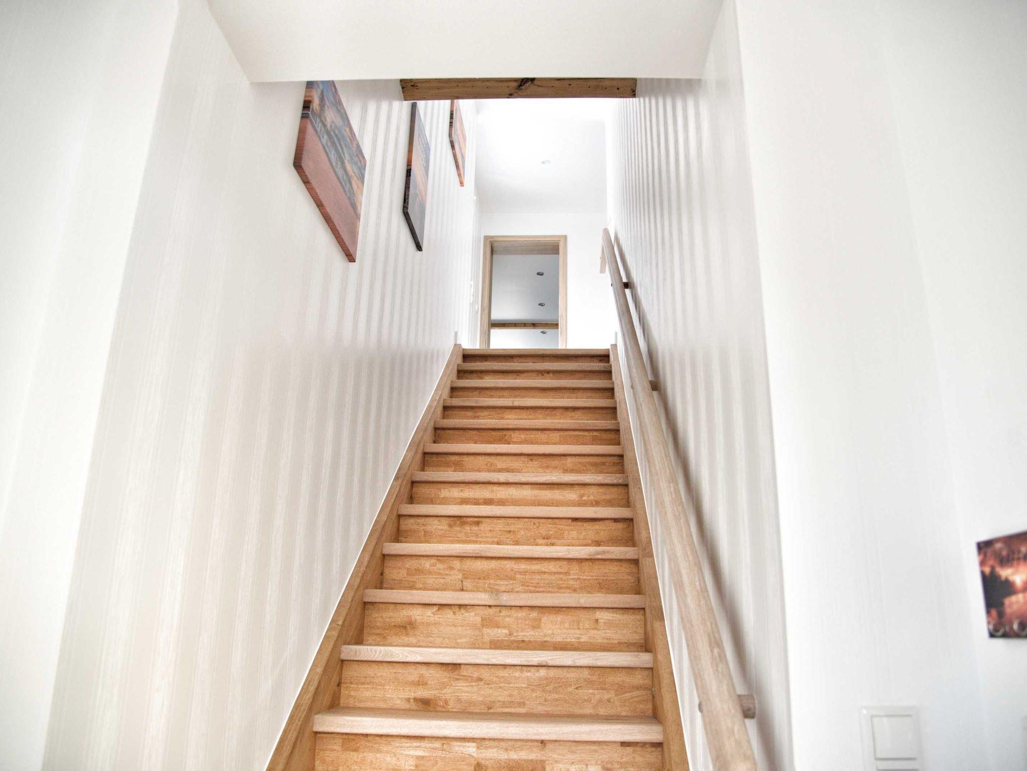 Die Ferienwohnung wurde 2021 komplett kernsaniert und ist modern eingerichtet. Sie bietet Platz für 4 Personen und besteht aus einem komfortablen Wohnzimmer (mit Smart-TV, Internetradio), einem gemütlichen Schlafzimmer (Doppelbett), dem Kinderzimmer (zwei Betten, Flachbildschirm), einer sehr geräumigen, voll ausgstatteten Küche (mit Sitzgelegenheiten), dem großen Bad (mit Kingsize-Dusche) und einem großen Flur (mit Garderobe, etc.). Auf Absprache ist auch Aufbettung möglich. Die Betten im Kinderzimmer und die Couch im Wohnzimmer lassen sich ausziehen. Wir möchten darauf hinweisen, dass die Wohnräume über eine Treppe zu erreichen sind.