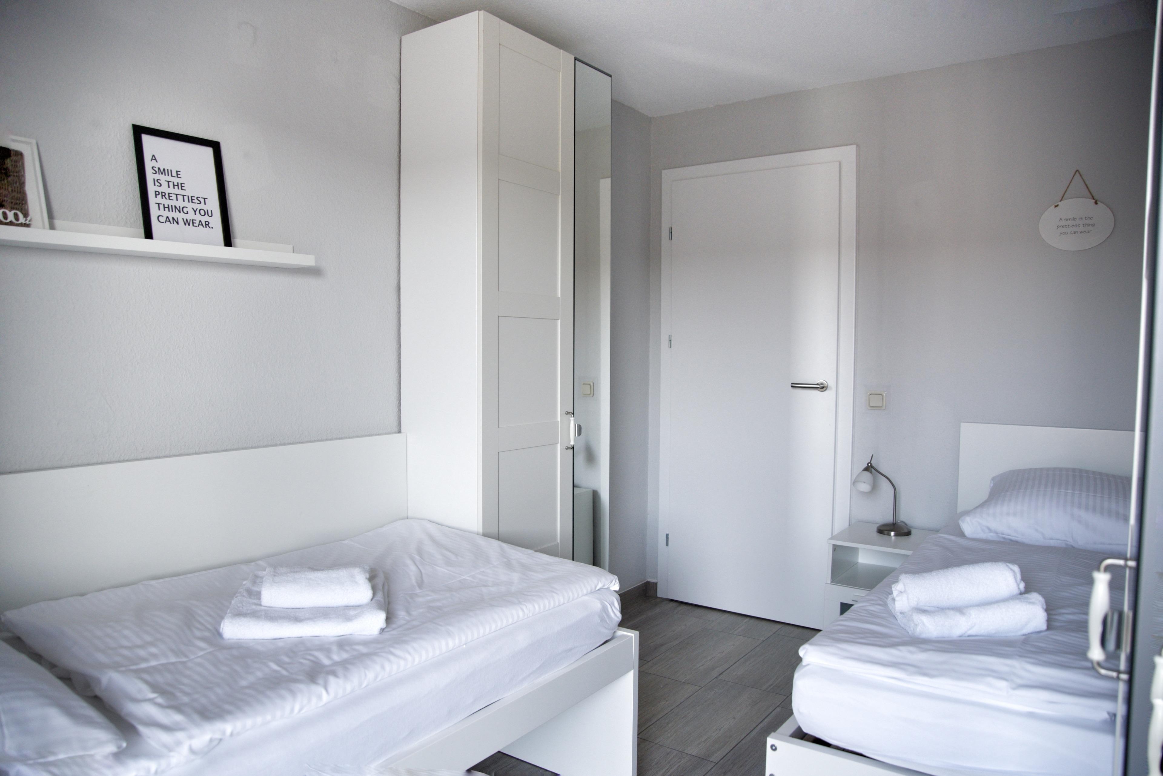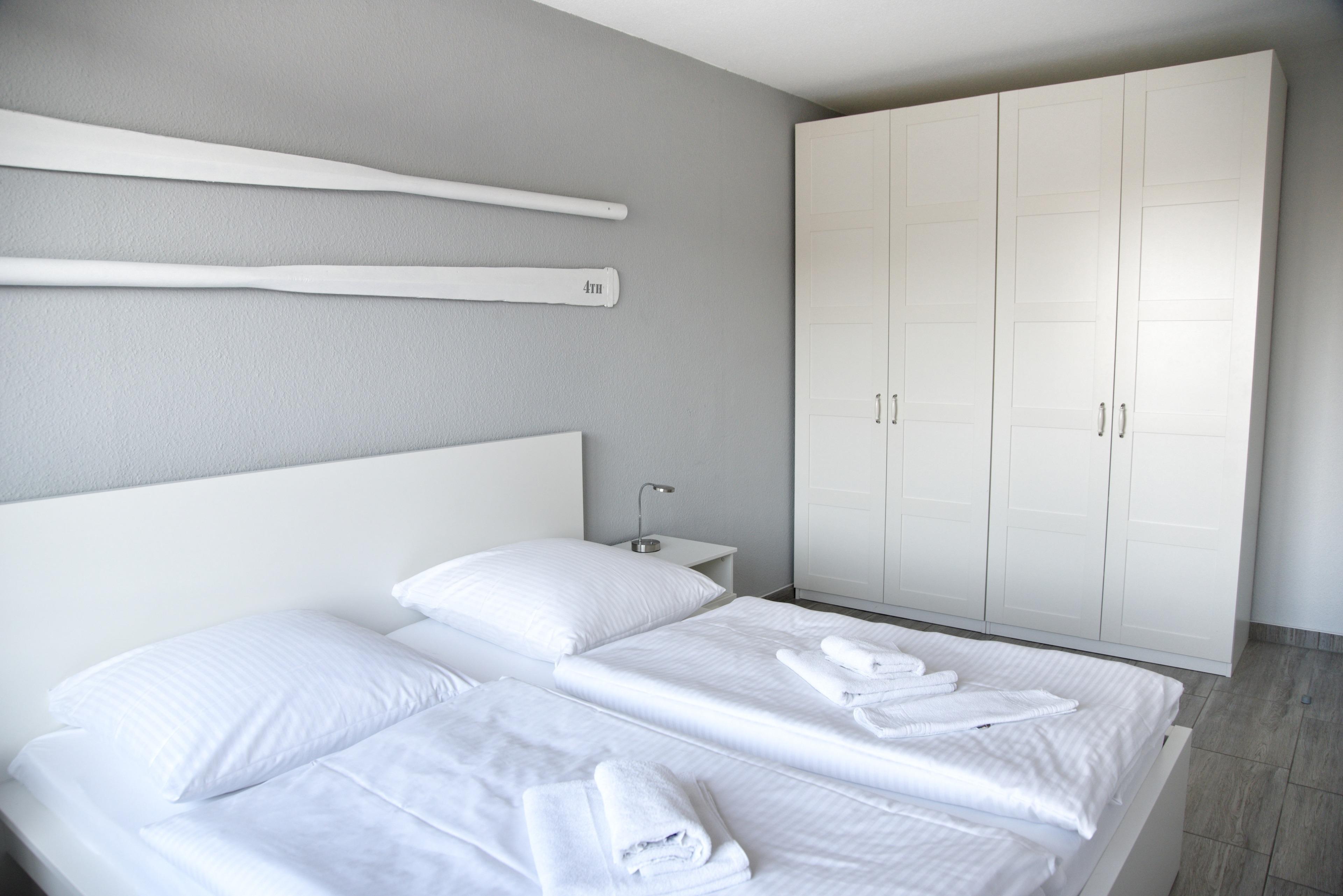 Das Wohnzimmer bietet Ihnen einen Esstisch mit sechs Stühlen, ein ausziehbares Schlafsofa mit einem Schlafplatz für zwei Personen und einen Sessel. Für die Übernachtungsgäste des Wohnzimmers steht Ihnen ein separater Kleiderschrank zur Verfügung. Multimedial steht Ihnen ein großer Flachbildfernseher zur Verfügung. Ihre Ferienwohnung hat einen Kabelanschluss. Auch einige Gesellschaftsspiele warten hier schon auf Sie. In Ihrem großen Schlafzimmer befindet sich ein Doppelbett mit höhenverstellbaren Lattenrosten. Nachtische, Leselampen und Garderoben möchten hier von Ihnen genutzt werden. Der große Schrank wird Ihnen gute Dienste leisten. Im kleinen Schlafzimmer sind zwei für Sie vorhanden. Die Lattenroste sind auch hier höhenverstellbar. Die beiden Kleiderschränke, die Garderoben und die Nachttische mit den dazugehörigen Leselampen werden Ihnen genügend Stauraum für Ihr Gepäck bieten. Ihre hochwertige Sterneküche ist für Sie voll ausgestattet. Bestandteile sind unter anderem ein Cerankochfeld, ein Backofen, eine Kaffeemaschine, eine Mikrowelle, viel Geschirr, ein Geschirrspüler, eine große Kühl- und Gefrierkombination und weiteres Equipment. Das Badezimmer hält eine Dusche mit Duschkabine, Ablageflächen und einen Fön für Sie bereit. Im Flur finden Sie eine Garderobe, einen großen Spiegel und Reinigungsgeräte vor. Das Appartement Nock liegt im ersten Obergeschoss des Hauses Regatta, im Eingang 4. In unmittelbarer Nähe dieses Appartements befinden sich weiter Ferienappartements unserer Gesellschaft. Eine gemeinsame Anmietung ist hier sehr gut möglich.