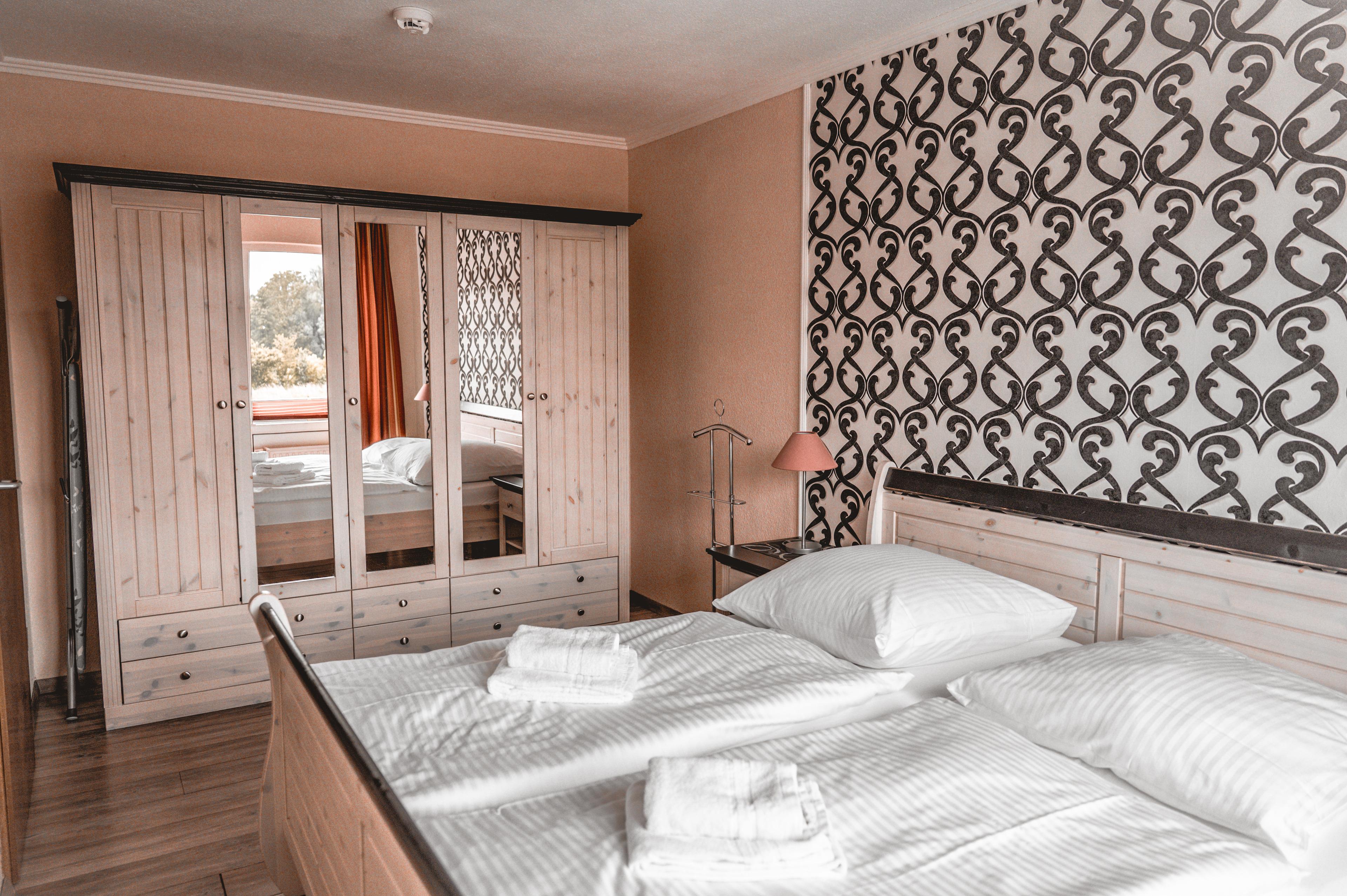 Das Wohnzimmer bietet Ihnen einen Esstisch mit sechs Stühlen, ein ausziehbares Schlafsofa mit einem Schlafplatz für zwei Personen und einen Hocker. Multimedial steht Ihnen ein großer Flachbildfernseher zur Verfügung. Ihre Ferienwohnung hat einen Kabelanschluss. Auch einige Gesellschaftsspiele warten hier schon auf Sie. In Ihrem großen Schlafzimmer befindet sich ein Doppelbett. Nachtische, Leselampen und Garderoben möchten hier von Ihnen genutzt werden. Der große Schrank wird Ihnen gute Dienste leisten. Im kleinen Schlafzimmer ist ein großes Doppelbett für Sie vorhanden. Der Kleiderschrank, die Garderoben und die Nachttische mit den dazugehörigen Leselampen werden Ihnen Stauraum für Ihr Gepäck bieten. Ihre Küche ist für Sie voll ausgestattet. Bestandteile sind unter anderem ein Cerankochfeld, ein Backofen, eine Kaffeemaschine, eine Mikrowelle, viel Geschirr, ein Geschirrspüler, eine Kühl- und Gefrierkombination und weiteres Equipment. Das neue Badezimmer hält eine Dusche mit Duschkabine, Ablageflächen und einen Fön für Sie bereit. Im Flur finden Sie eine Garderobe, einen großen Spiegel und Reinigungsgeräte vor. Das Appartement Oberlicht liegt im ersten Obergeschoss des Hauses Störtebeker, im Eingang 3. In unmittelbarer Nähe dieses Appartements befinden sich weiter Ferienappartements unserer Gesellschaft. Eine gemeinsame Anmietung ist hier sehr gut möglich.
