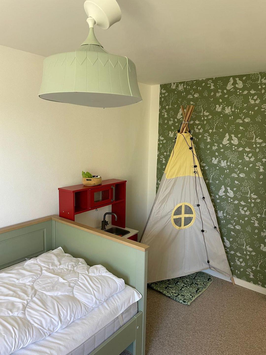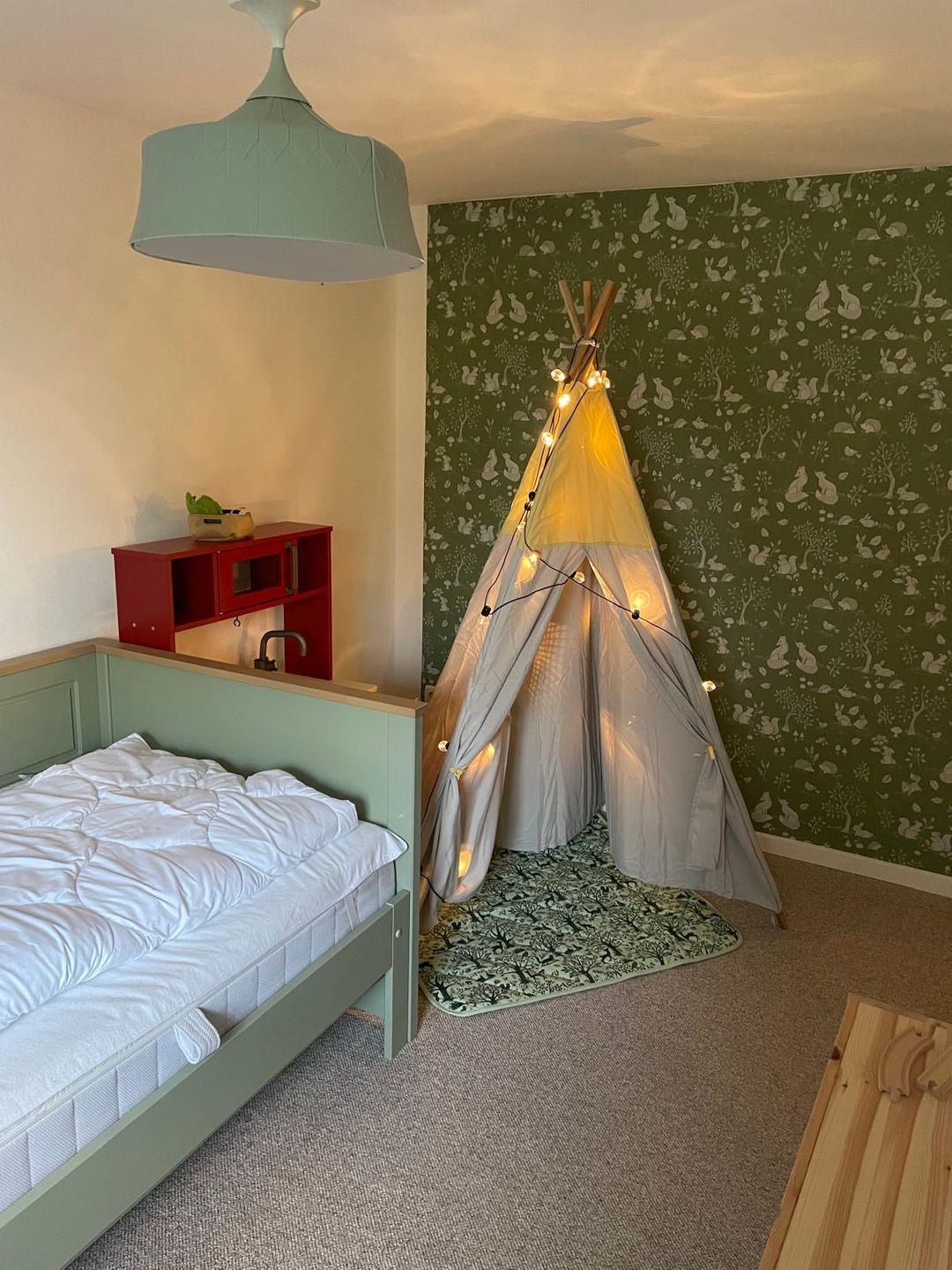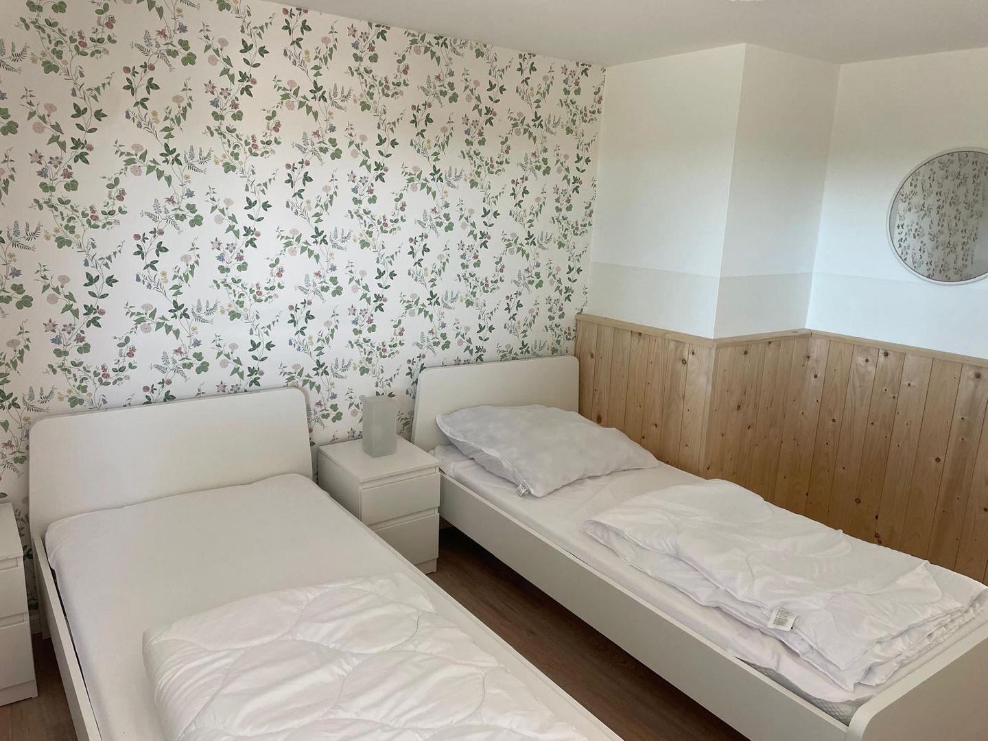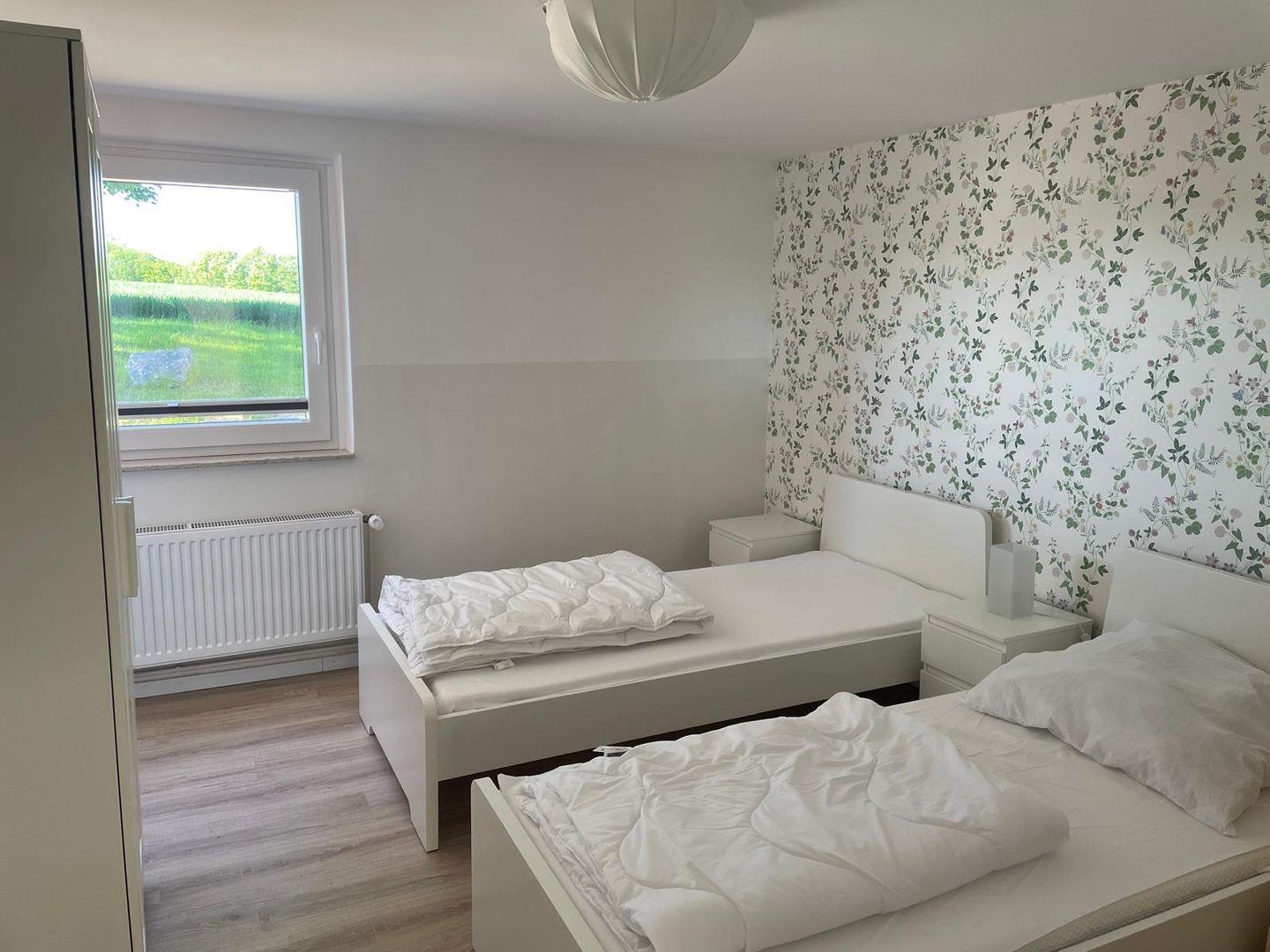 Die Ferienwohnung Klaus bietet auf 75 m² ein gemütliches Zuhause für bis zu fünf Personen. Das Apartment verfügt über drei Schlafzimmer: Ein Doppelzimmer mit einem 200x200 cm großen Bett, das in zwei getrennte Matratzen unterteilt ist, ein Zimmer mit zwei Einzelbetten und ein Einzelzimmer mit jeweils 90x200 cm Betten. Zwei der Schlafzimmer sind mit Verdunkelungsmöglichkeiten und Kleiderschränken ausgestattet, das dritte Schlafzimmer verfügt ebenfalls über eine Verdunkelung.
