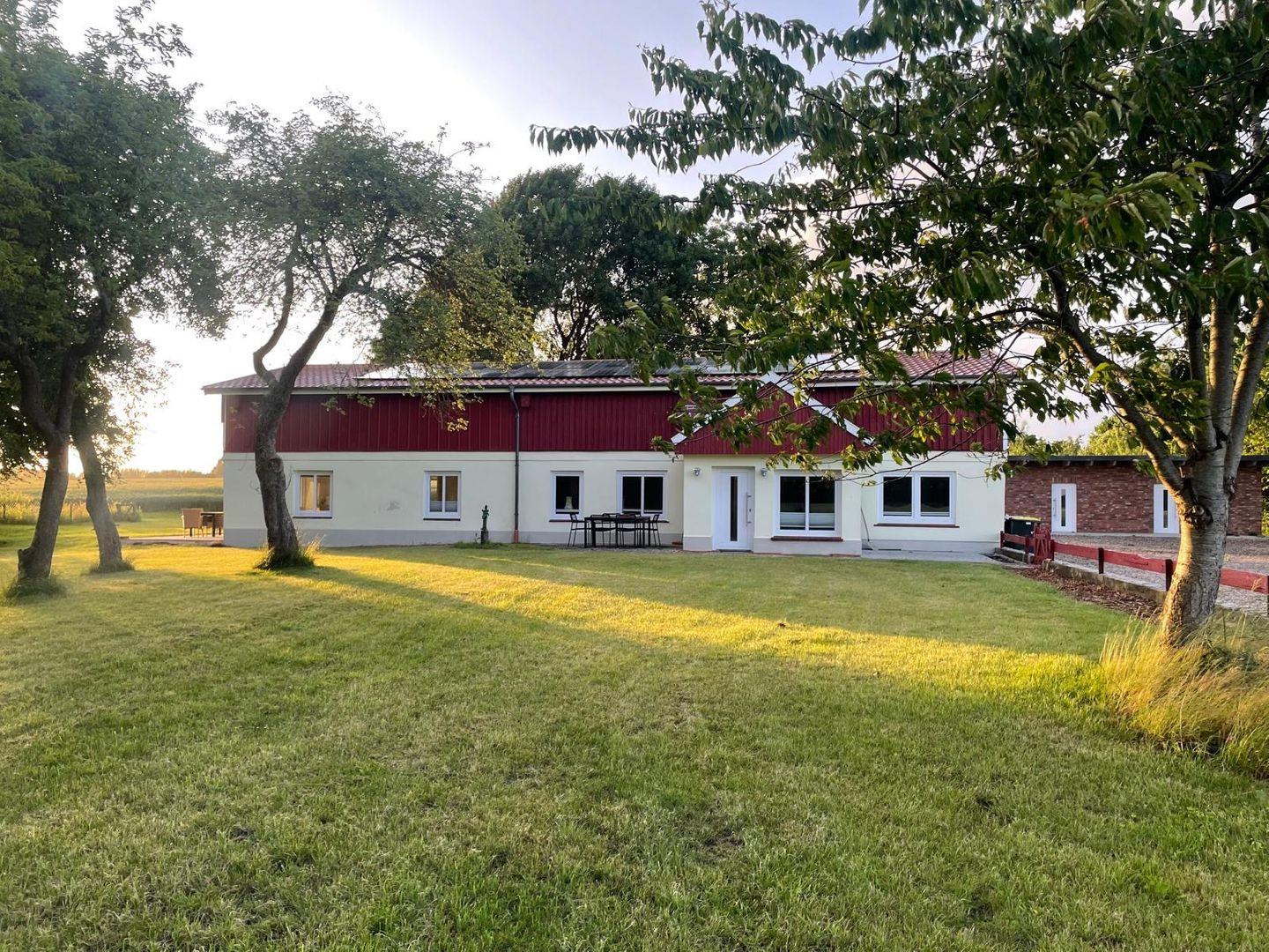 Der Außenbereich lädt zum Entspannen ein: Genießen Sie die Sonne auf der Terrasse mit Gartenmöbeln oder schlendern Sie durch den gepflegten Garten. Parkplätze sind direkt vor Ort vorhanden.