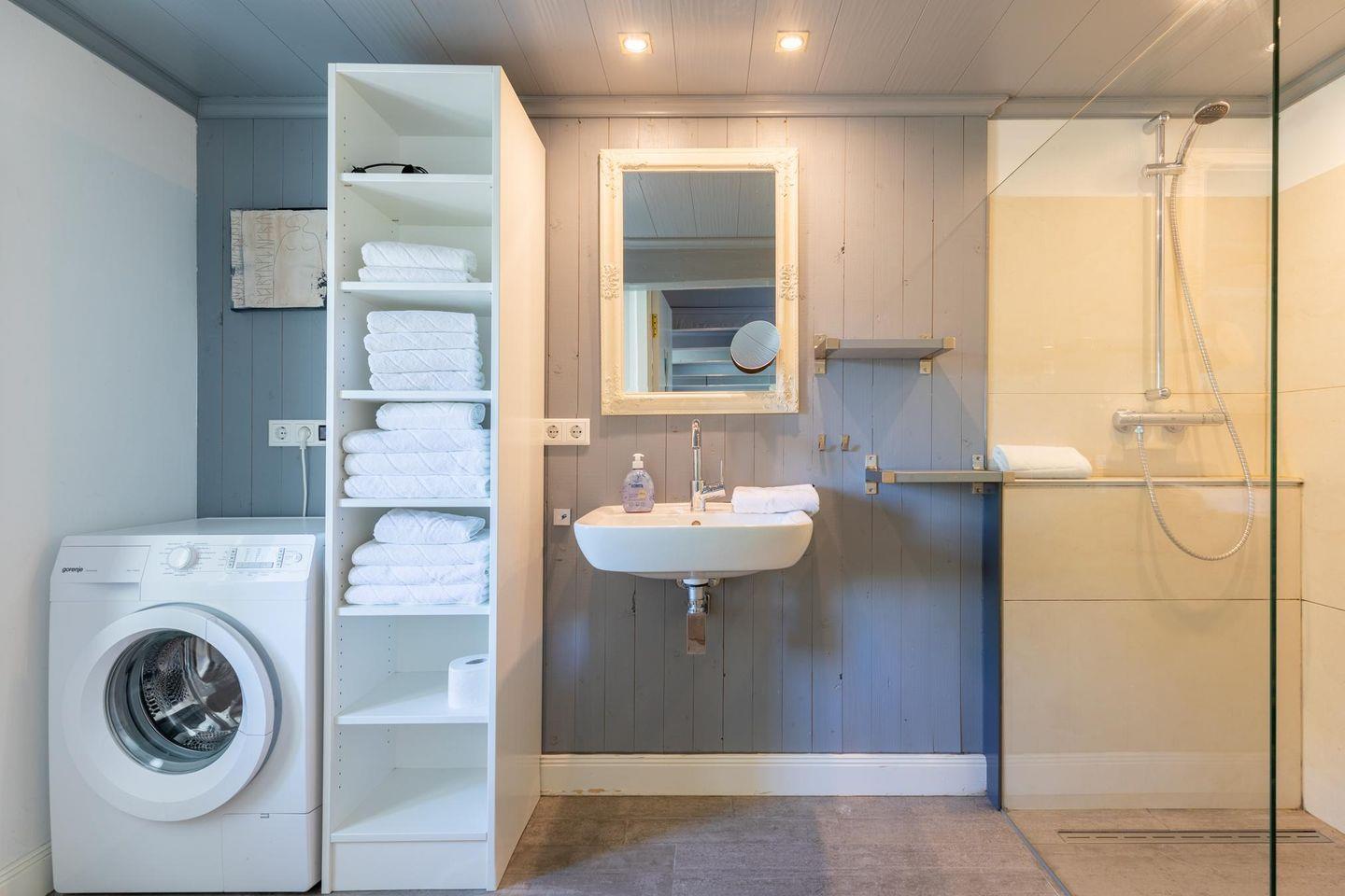 Im ebenerdigen Duschbad steht für Sie eine Waschmaschine bereit.